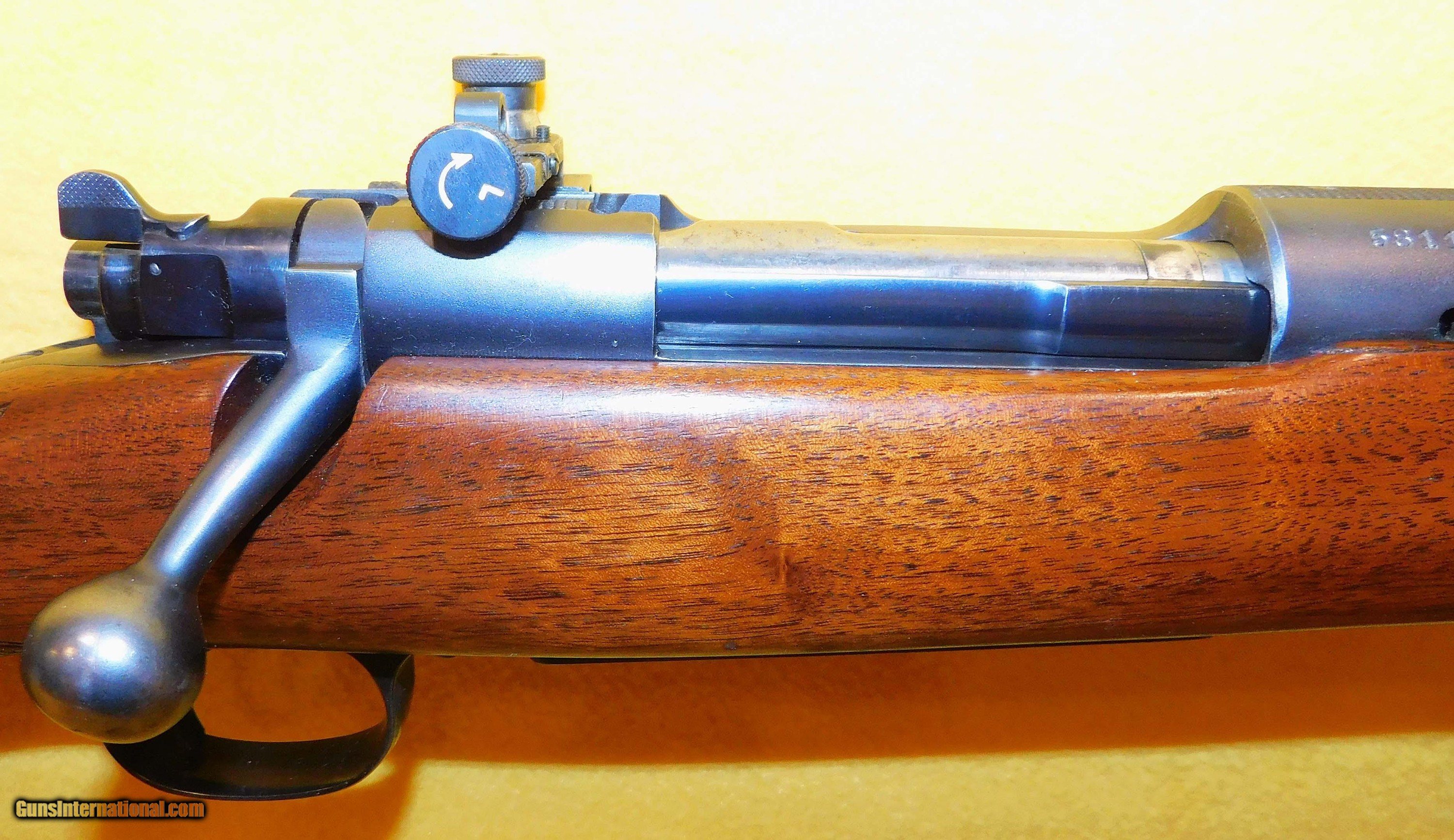 Description: WINCHESTER 70 (PRE WAR) IN .270 CAL., WITH 24" BARREL. COLOR BLUE. CONDITION 96%. SERIAL NUMBER 58118. WINCHESTER MODEL 70 (FIELD GRADE) (PRE WAR) CIRCA 1942 IN .270 CALIBER, WALNUT CHECKERED STOCK AND FOR ARM EXCELLENT, METAL CHECKERED BUTT PLATE EXCELLENT, FACTORY PEEP SIGHT WITH TARGET FRINT HOOD, 96%+ OVERALL CONDITION, OUR STOCK # D5894 SOLD |