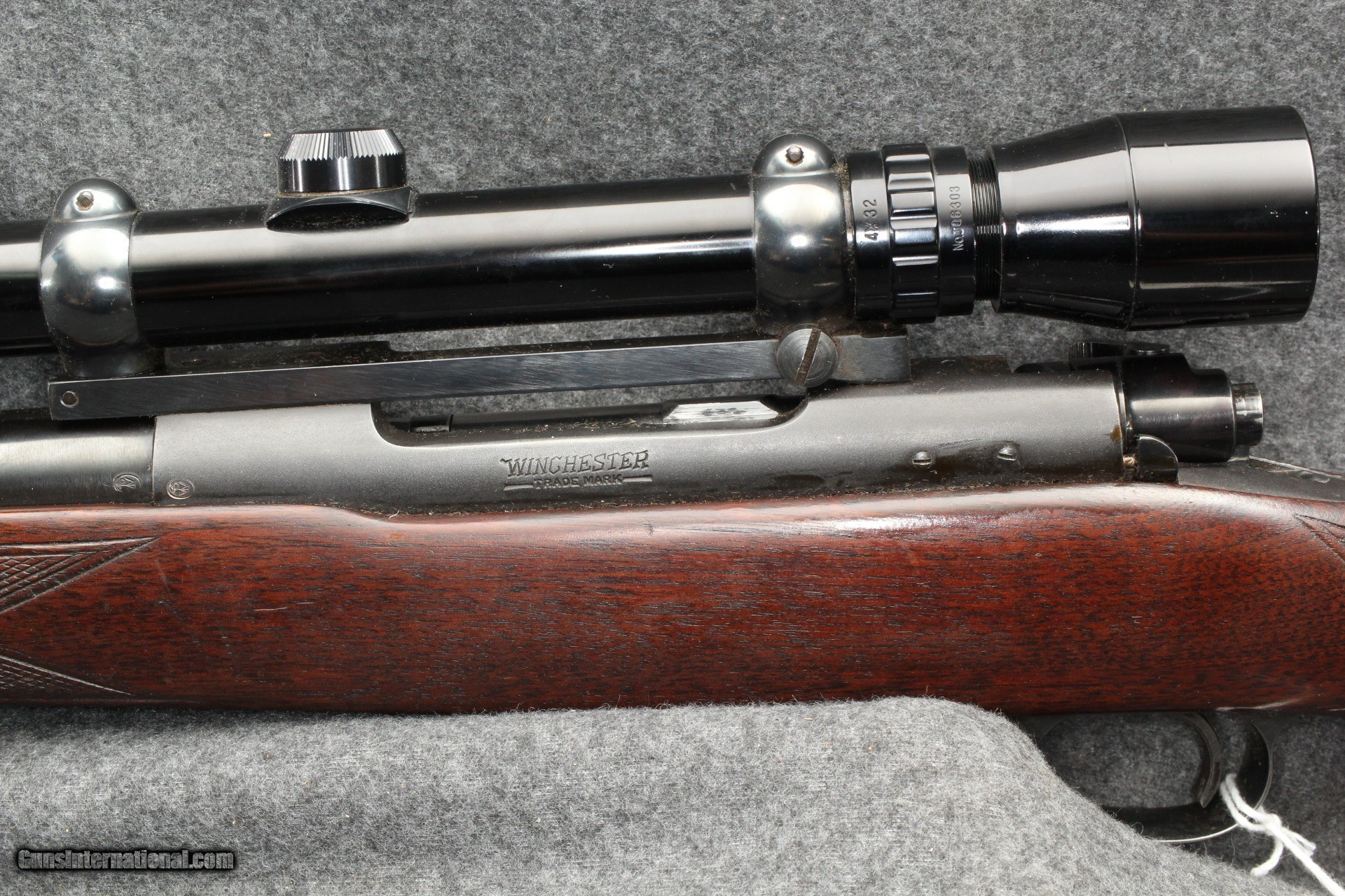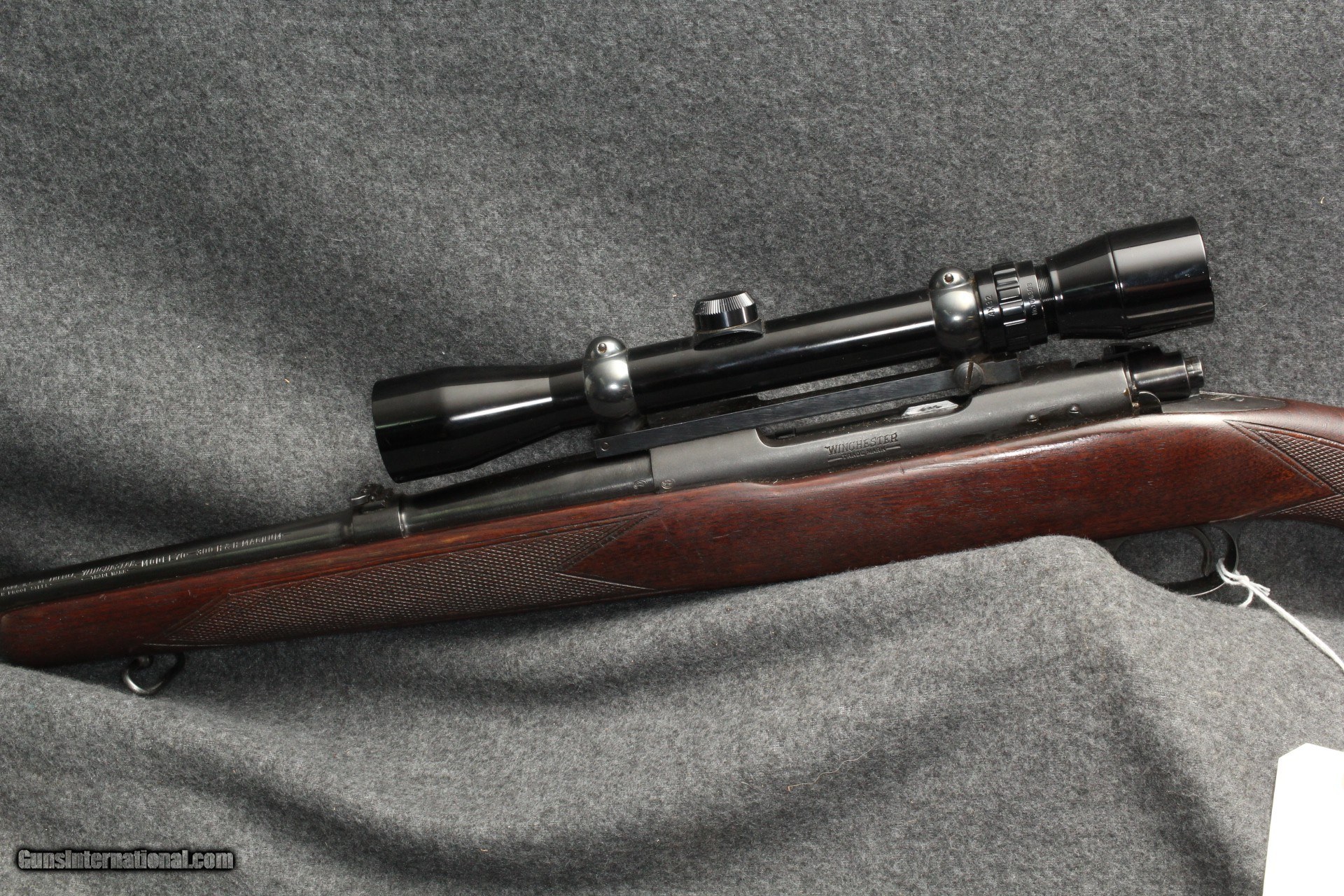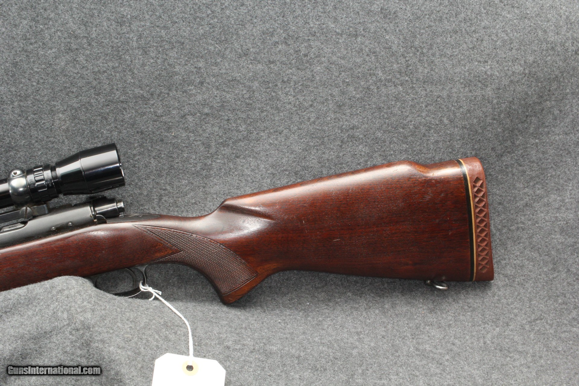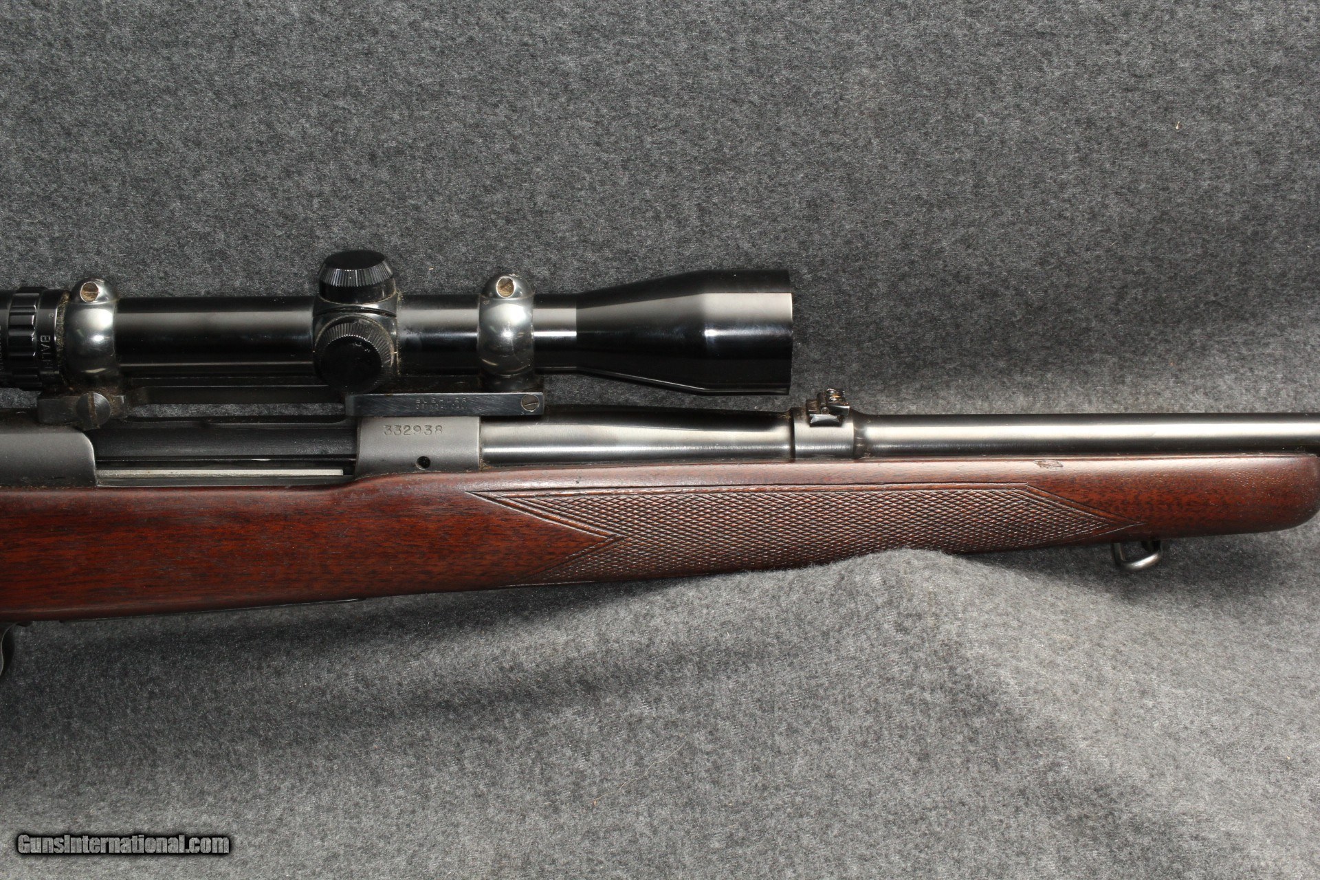 Description: Serial number 332XXX. Rechambered to 300 Weatherby from H&H (barrel is still marked 300 H&H). Mfg 1955. 26" barrel. Stock cut and recoil pad added. LOP to wood 12 5/8", LOP overall 13 5/8". Overall in good condition, shows normal wear. Wood has had finish added, shows hunting wear, no cracks or large marrs. Original sling swivels. Metal retains 85% original blue with stock finish overrun on receiver. 2 holes in rear bridge. Throat is good, bore is excellent. Comes with Bausch & Lomb Balfor scope. Lenses are clear, no function guarantees on scope. More photos on request. Willship to C&R. Please add $65.00 for shipping and insurance. SOLD Curio/Relic: Yes Rifle Caliber: .300 Weatherby Magnum |