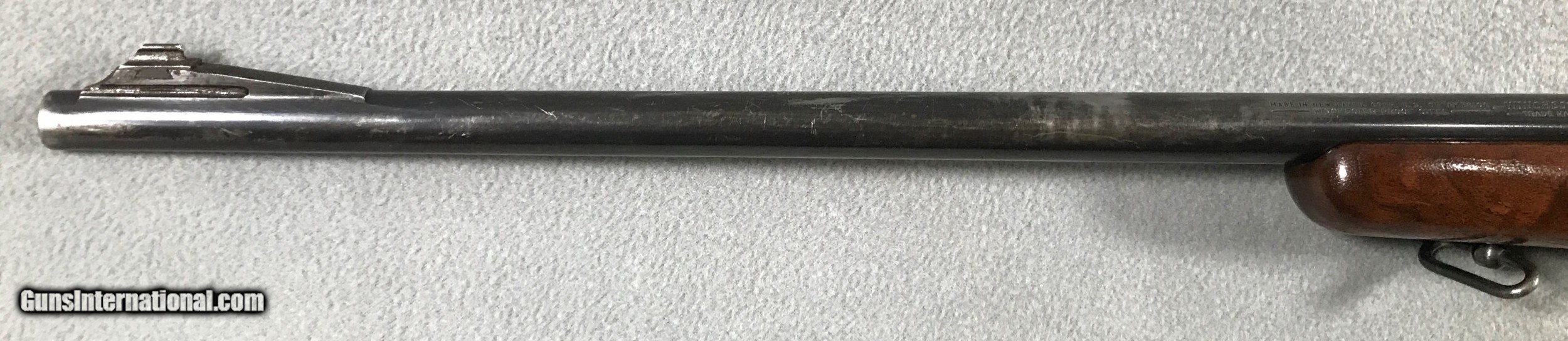Description: Winchester Model 70 Standardweight Pre-64 .270 Win. 24" Barrel 8lbs 2oz Mfg. 1950 Steel is in very good condition, with bluing wear, scuffs and scrapes, there are several small dents in the floor plate. Wood is in good condition, with no cracks. It has been refinished and some decoration has been added using a wood burning tool. There is an animal on each side of the buttstock and some leaves and scroll on the underside of the forearm. The bottom of the grip also has some decoration added and some lines added alongside the trigger guard. There has also been some attempt to recut some of the checkering. The decorations that have been added are fairly shallow and could probably be sanded out and the stock refinished to look correct. Bore is bright with strong rifling. $50.00 S&H SOLD Curio/Relic: Yes Rifle Caliber: .270 Winchester Manufacturer: WINCHESTER Model: 70 STANDARDWEIGHT Serial Number: 136083 Barrel Length: 24 Condition: VERY GOOD Metal Condition: VERY GOOD Wood Condition: GOOD Bore Condition: EXCELLENT Action: BOLT Stock: WALNUT LOP: 13 3/4 Weight: 8lbs 2oz Manufacture Date: 1950 |
