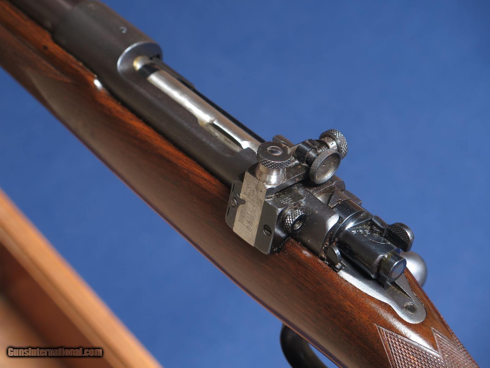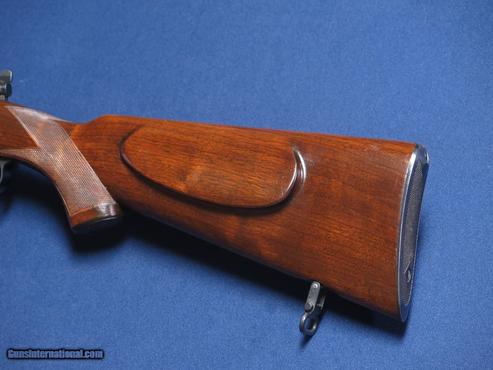 Description: Winchester 70 Super Grade 7mm. 1942 mfg. 24 inch barrel. Clover leaf tang. Correct super grade swivels and Redfield brass front sight. No extra holes. Lyman 48 peep sight. Blank insert in rear sight. Very clean original finish model 70. Correctly stamped 7mm on bottom of barrel. Excellent bore. Curio/Relic: Yes Price: $14,500.00 Buy Now Contact Seller |