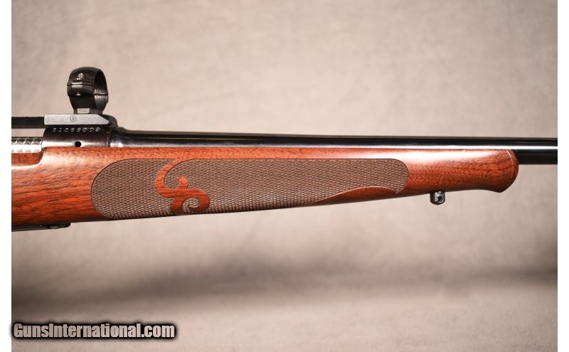 Description: The legendary handling and quickness of the Model 70 Featherweight. Few rifles can be identified in an instant like the Featherweight. It is justly famous among hunters everywhere. The Model 70 action offers Pre-'64 style controlled round feeding with claw extractor, a three-position safety and is highlighted by a jeweled bolt body with knurled bolt handle. Inside is the M.O.A. Trigger System, the finest trigger ever offered in a bolt-action with zero take up, zero creep and zero overtravel. asy to carry, accurate and utterly reliable, the Featherweight is ideal for deer, varmints, hogs and antelope. This firearm is being offered by the Boise Cabela's Gun Library. We will ship for free to your local Cabela's or Bass Pro Shops for transfer to you. If you are interested in purchasing or have any other questions, please call the Boise Cabela's Gun Library directly at (208) 672-7922. 7X57mm Mauser SOLD Chambers: 7X57mm MAUSER Metal Condition: EXCELLENT Wood Condition: EXCELLENT Bore Condition: EXCELLENT Barrels: 22 INCH BARREL Fore End: CHECKERED Butt Pad: FACTORY RUBBER BUTT PAD Weight: 7lbs Sights: SCOPE RAIL AND RINGS INCLUDED Item Location: Boise, ID |
