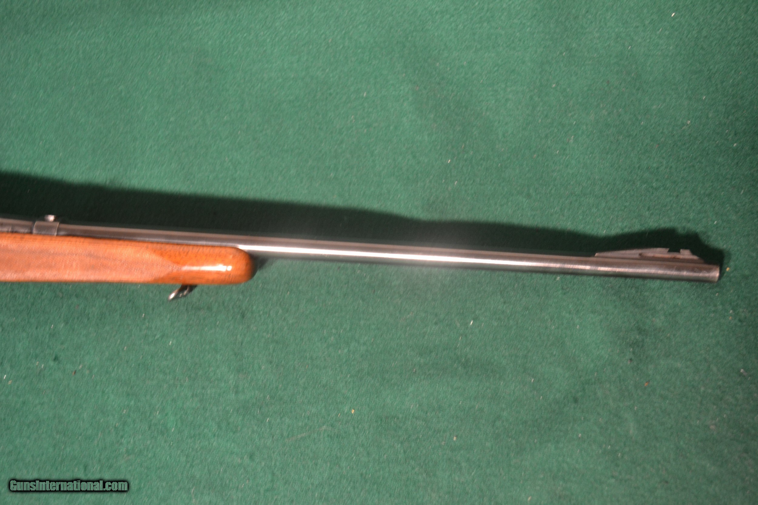 Description: Price Adjustment ! This Winchester M-70 .257 Roberts, Pre - War (1939) wLeupold Scope (M86X) & Mounts.. The gun's bluing is abt 90 -95 % w/some edge war at muzzle. the receiver is very good w/some edgewear at the barrel & receiver (both areas very light). The barrel has factory supplied filler at the rear sight mounting. The trigger housing is abot 96% w/no no wear. The floorplate is about 95% w/very faint edge wear at the front. The chamber is clean and normal. The Wood stock has some very light handling marks a either side at the bottom near the af the foorplate. There are some very light handling marks at the rear of the Buttststock area .The Stock is abt 85 - 90 % . Overal the Guns Stock is about 85 - 90 % ( Very Good for a M 70 that is 83 years of age). Ther is a notch cut for a Lyman Peep Sight (Very popular in it's period ( See pic of both a correct Lyman Peep Sight that is also included and is a perfect fit for this Pre War Winchester.) . The bore is a mirror w/distinct rifling.. The Wood Hand Cut Checkering is excellent at both of the Forearm and Rear stock areas. A correct period type Leater Sling is also included. Great prospect for Collector, range and a Safari. enthusiast. I would rate thei Winchester M-70 pre - War .257 Roberts and an "NRA - Very Good SOLD Rifle Caliber: .257 Roberts Manufacturer: Winchester Model: M-70 Pre War Serial Number: 27236 Barrel Length: 24 inch Bore: Excellent Condition: Very Good Metal Condition: VG - Excellent Wood Condition: Very Good Bore Condition: Mirror - Excellent Action: Bolt Butt Pad: Steel - Horned LOP: 13 1/2 Finish: Walnut Sights: Scope Manufacture Date: 1937 |