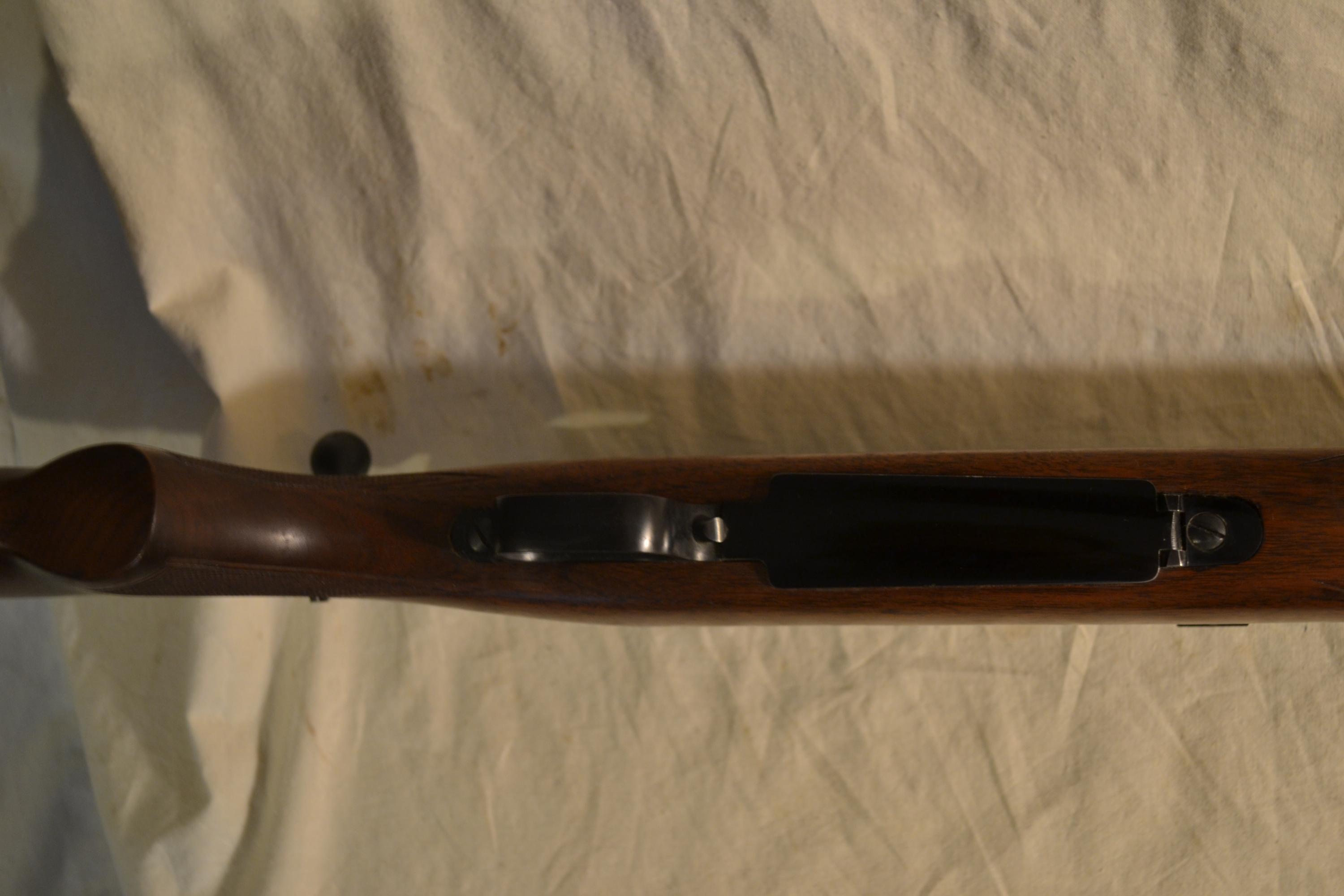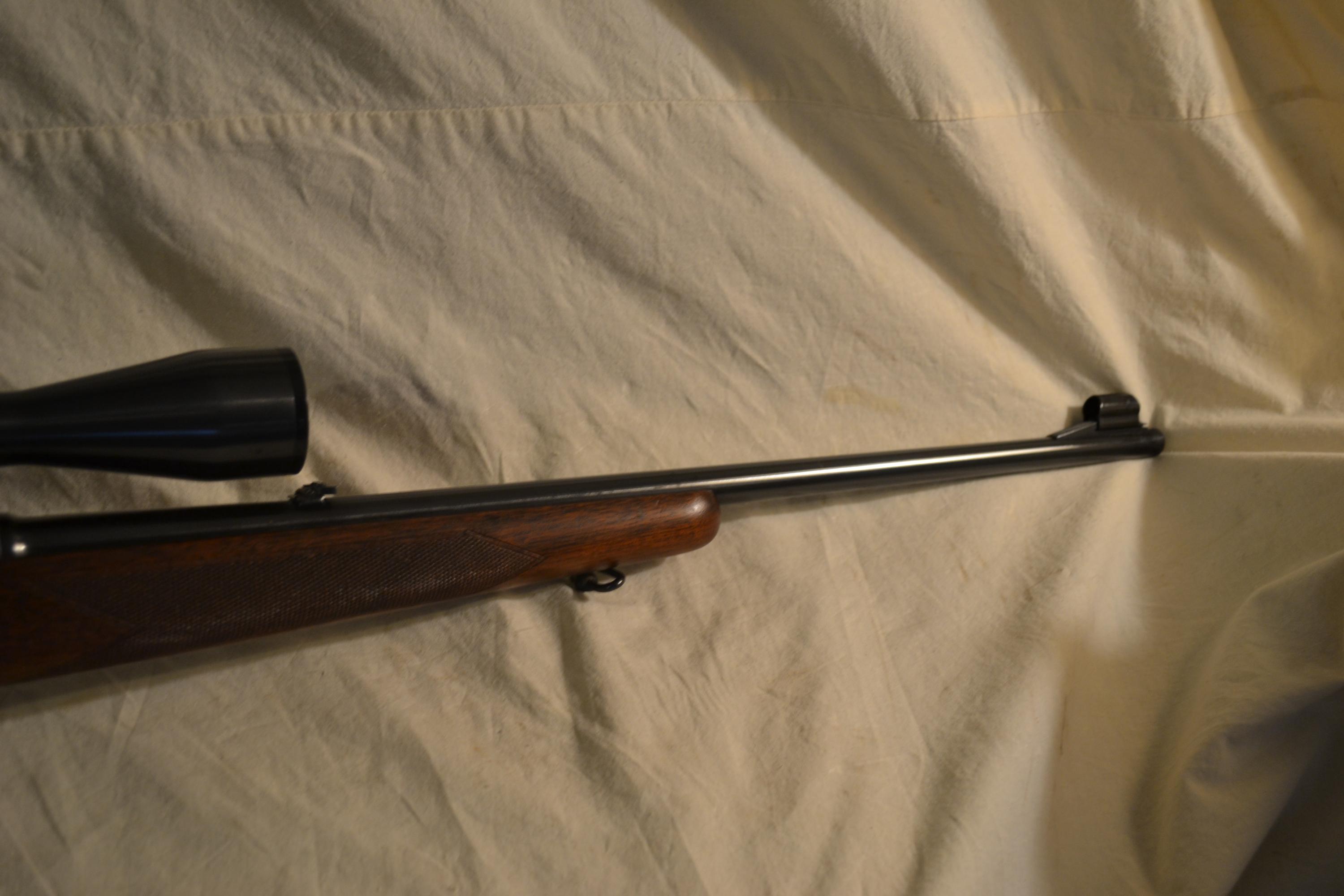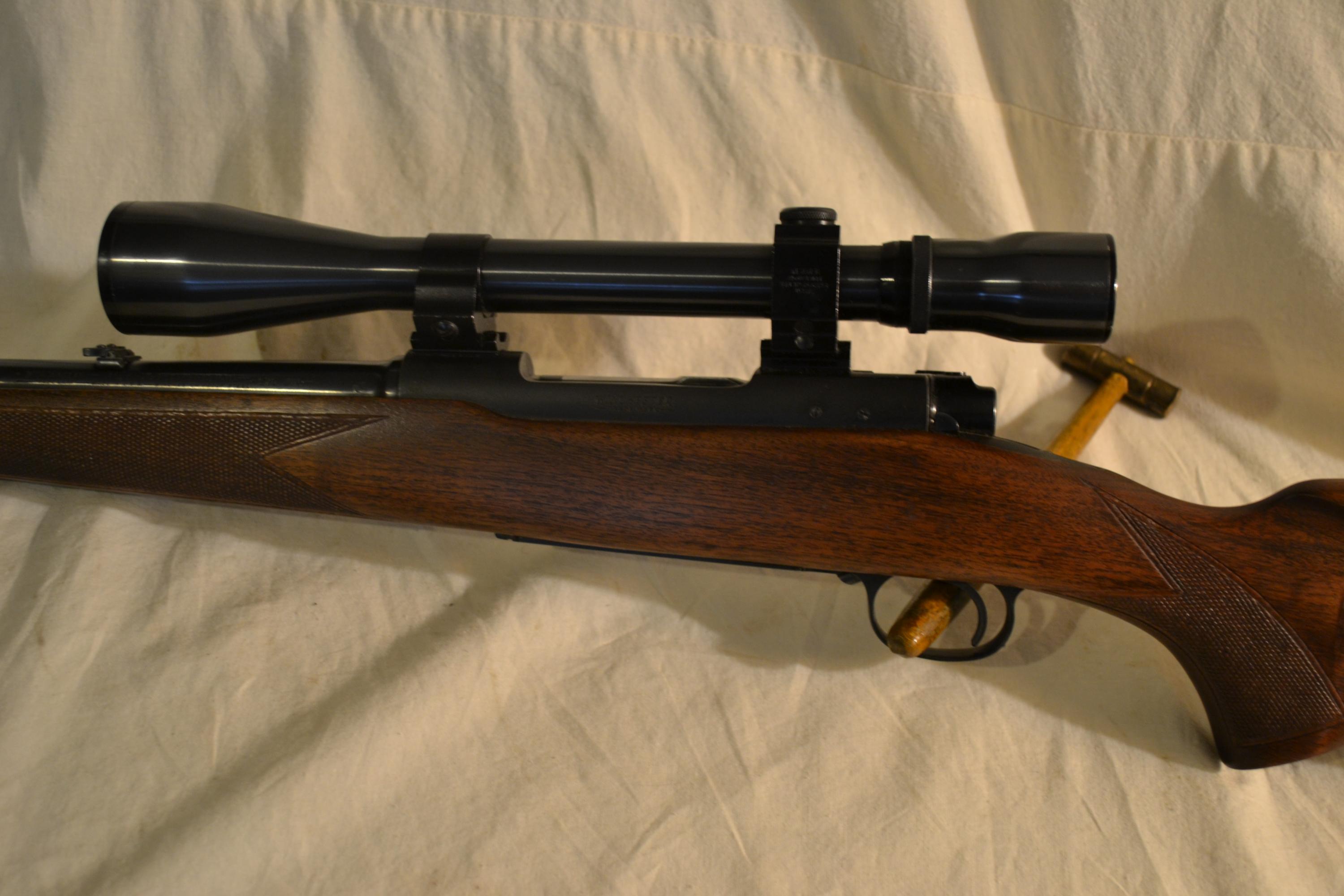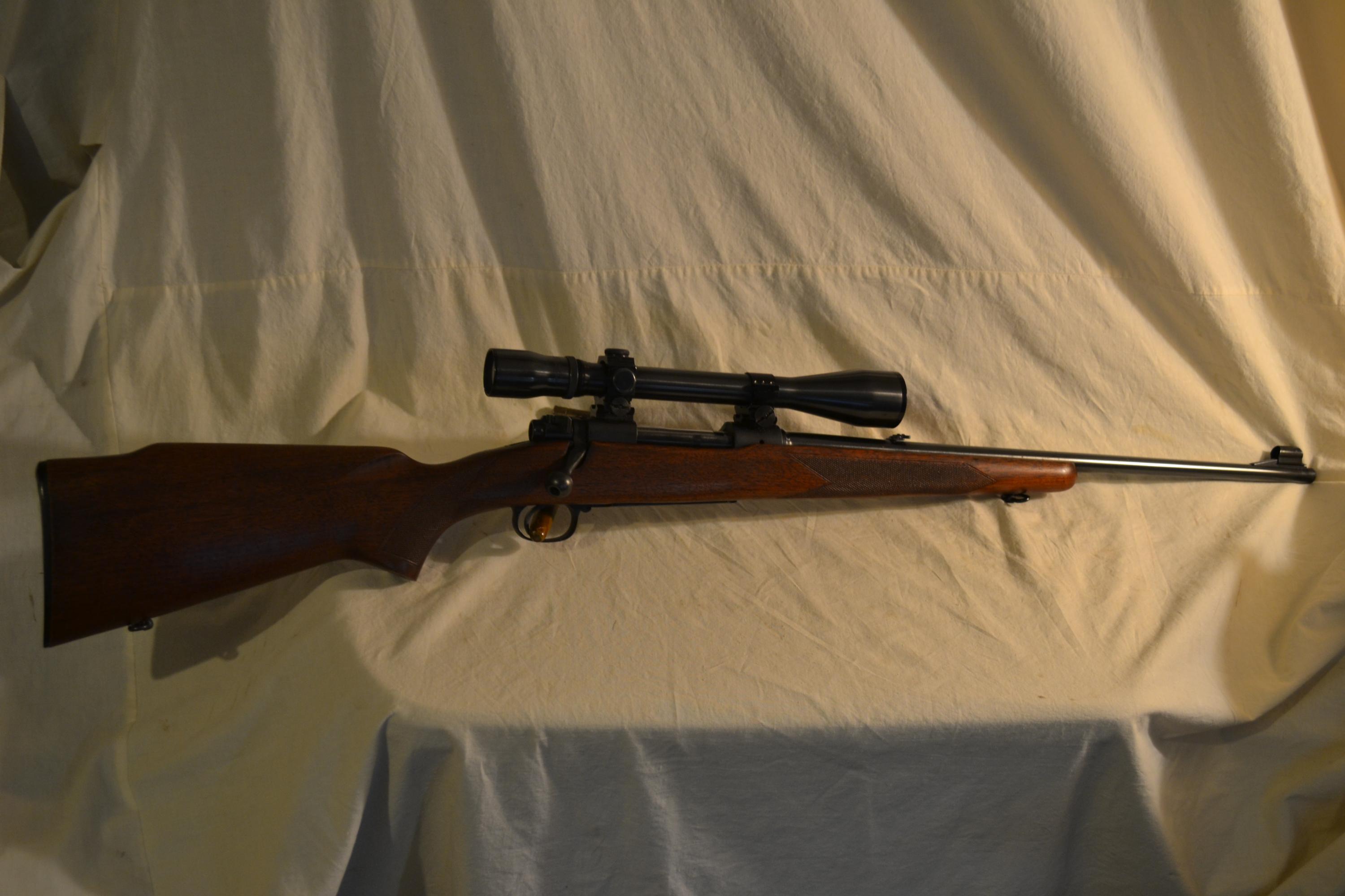 Description: Sale Pending ! This Winchester M-70 Cal. 270 Featherweight, ser # 512XXX - 1960 is pristine. The bluing is about a 99.5% and the wood is about 99%. It's absolutely an utrafine field grade Winchester "Featherweight'. The barrel is 22 inches w/no bare spots. The action is smoothe and firm with a magazine that hasn't any visible wear. I'd say less that 25 rounds , if that many were fired through it's chamber. The stock has a few very light, almost hard to locate handling marks. The scope is a Weaver 2.5 x 8 w/ Weaver Mounts and very clear. It's ready for that hunt that you will go on. SOLD Manufacturer: Winchester Model: M -70 Featherweight Serial Number: 512XXX Caliber Info: .270 Condition: NRA Ultrafine |
