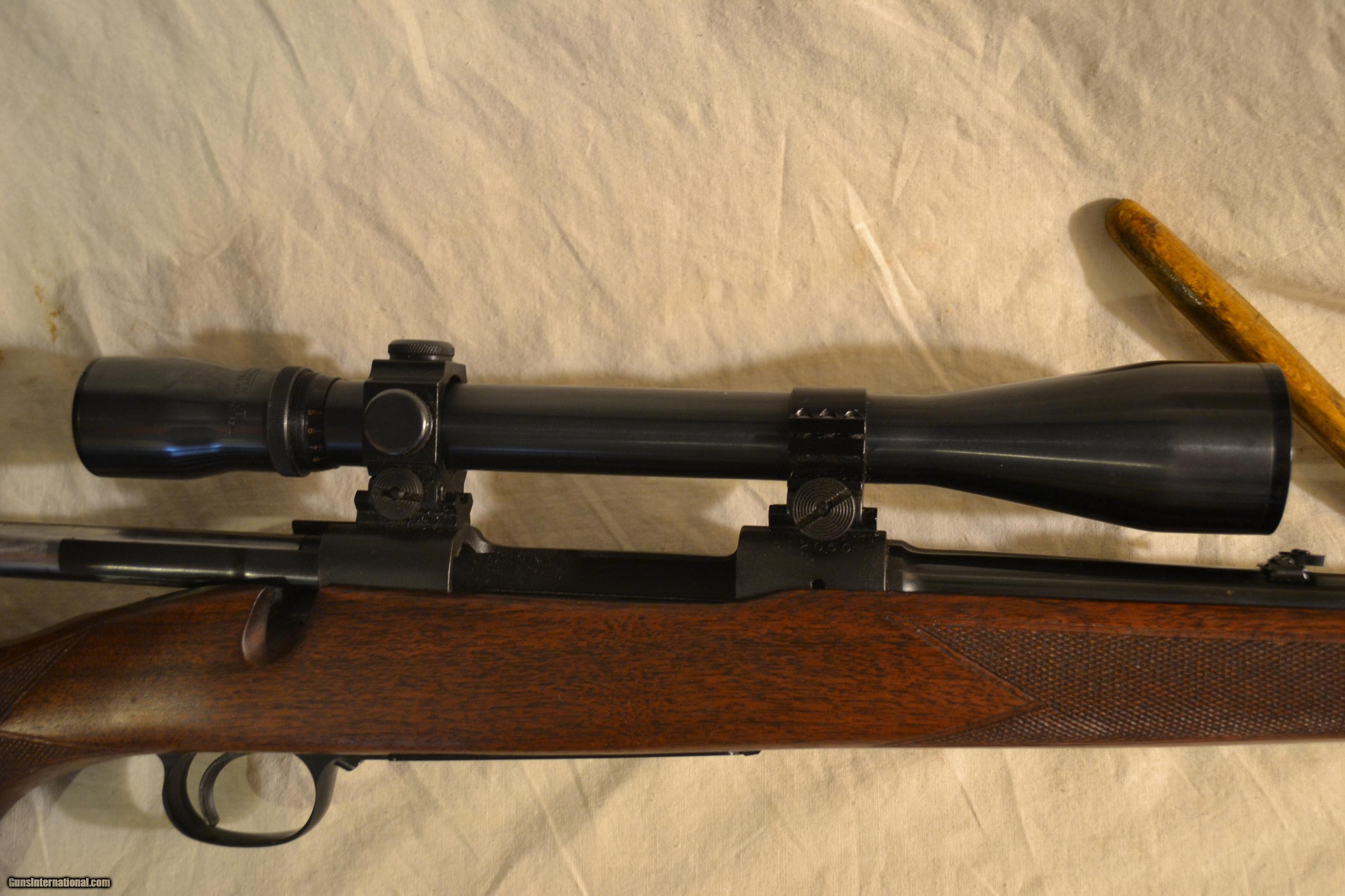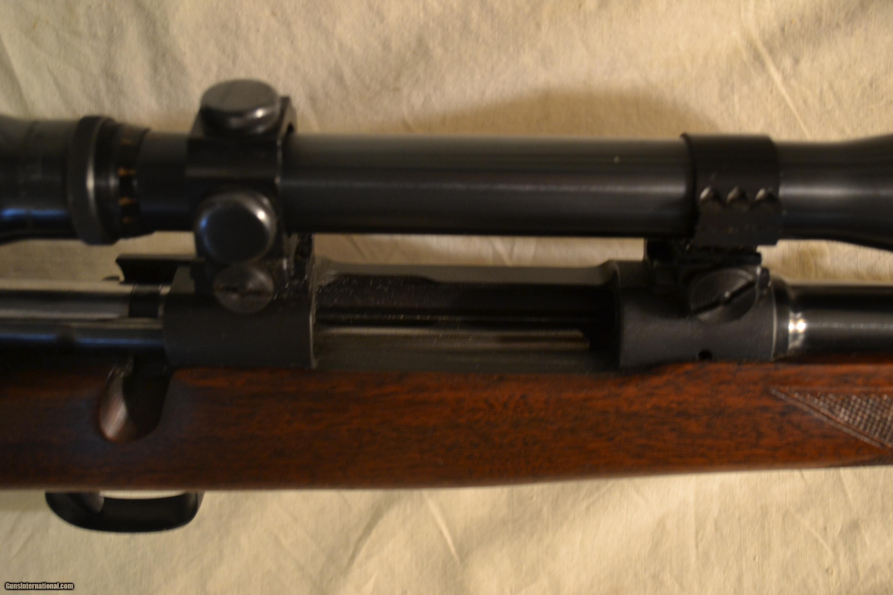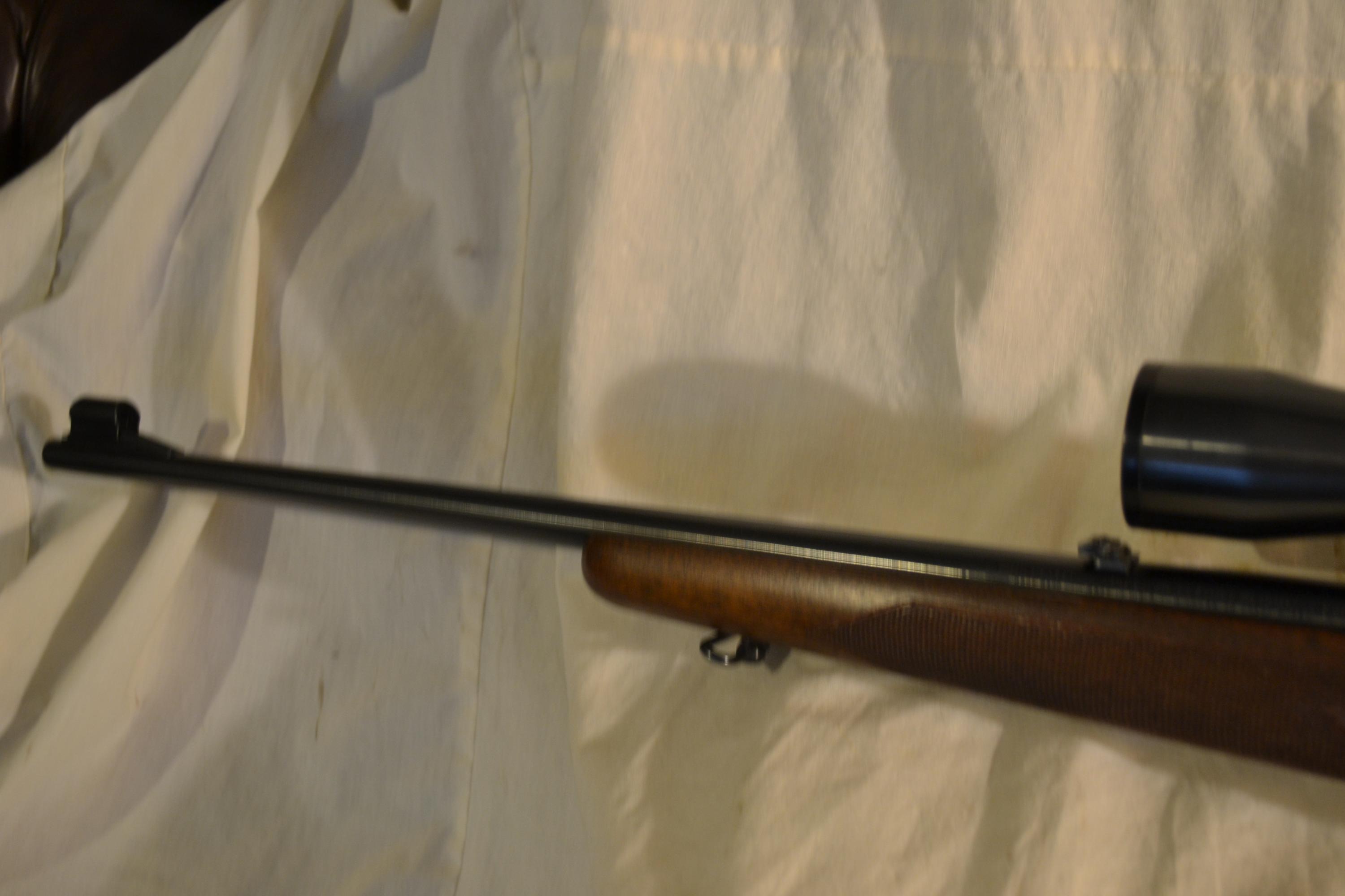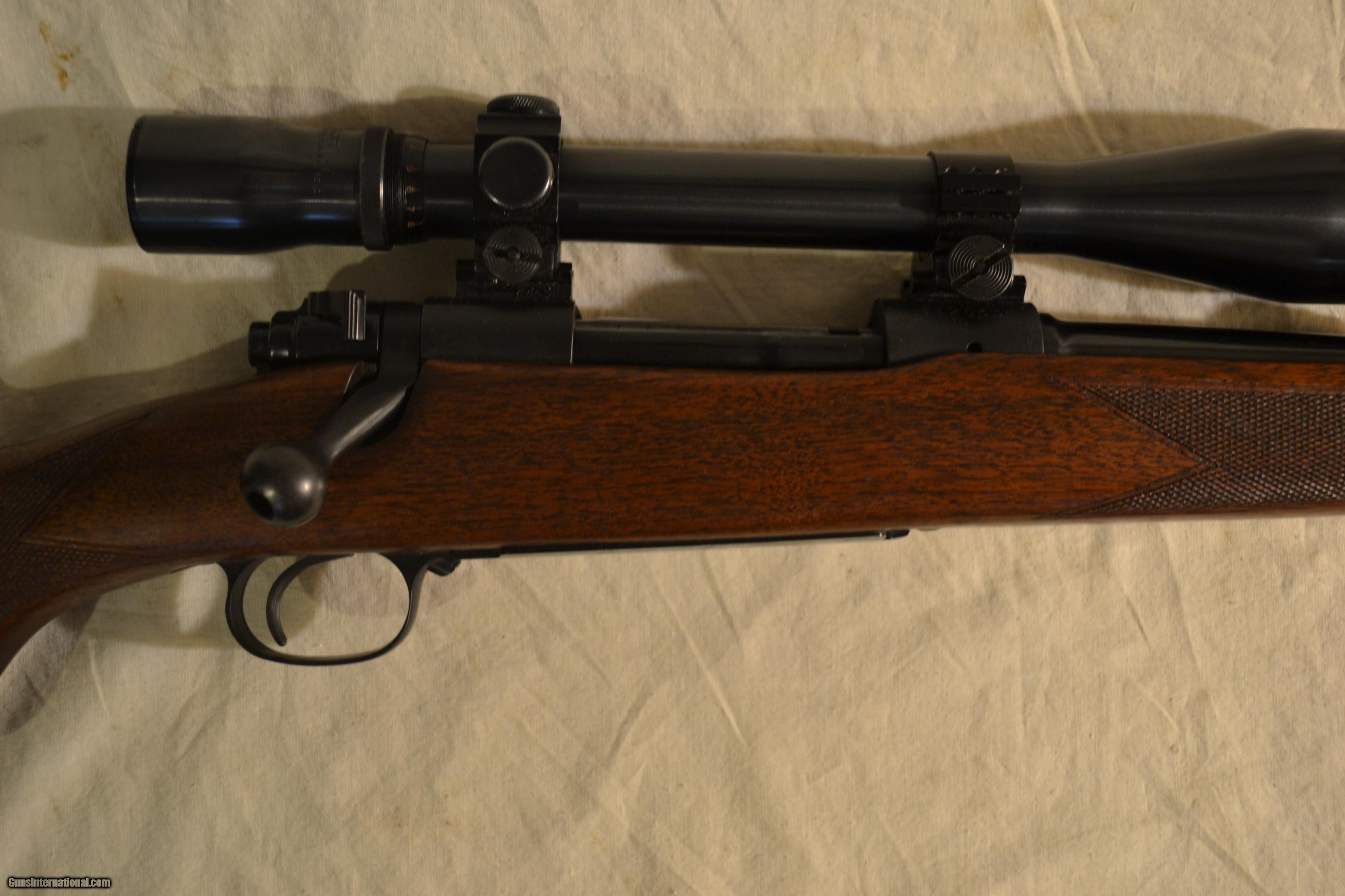 Description: Sale Pending ! This Winchester M-70 Cal. 270 Featherweight, ser # 512XXX - 1960 is pristine. The bluing is about a 99.5% and the wood is about 99%. It's absolutely an utrafine field grade Winchester "Featherweight'. The barrel is 22 inches w/no bare spots. The action is smoothe and firm with a magazine that hasn't any visible wear. I'd say less that 25 rounds , if that many were fired through it's chamber. The stock has a few very light, almost hard to locate handling marks. The scope is a Weaver 2.5 x 8 w/ Weaver Mounts and very clear. It's ready for that hunt that you will go on. SOLD Manufacturer: Winchester Model: M -70 Featherweight Serial Number: 512XXX Caliber Info: .270 Condition: NRA Ultrafine |