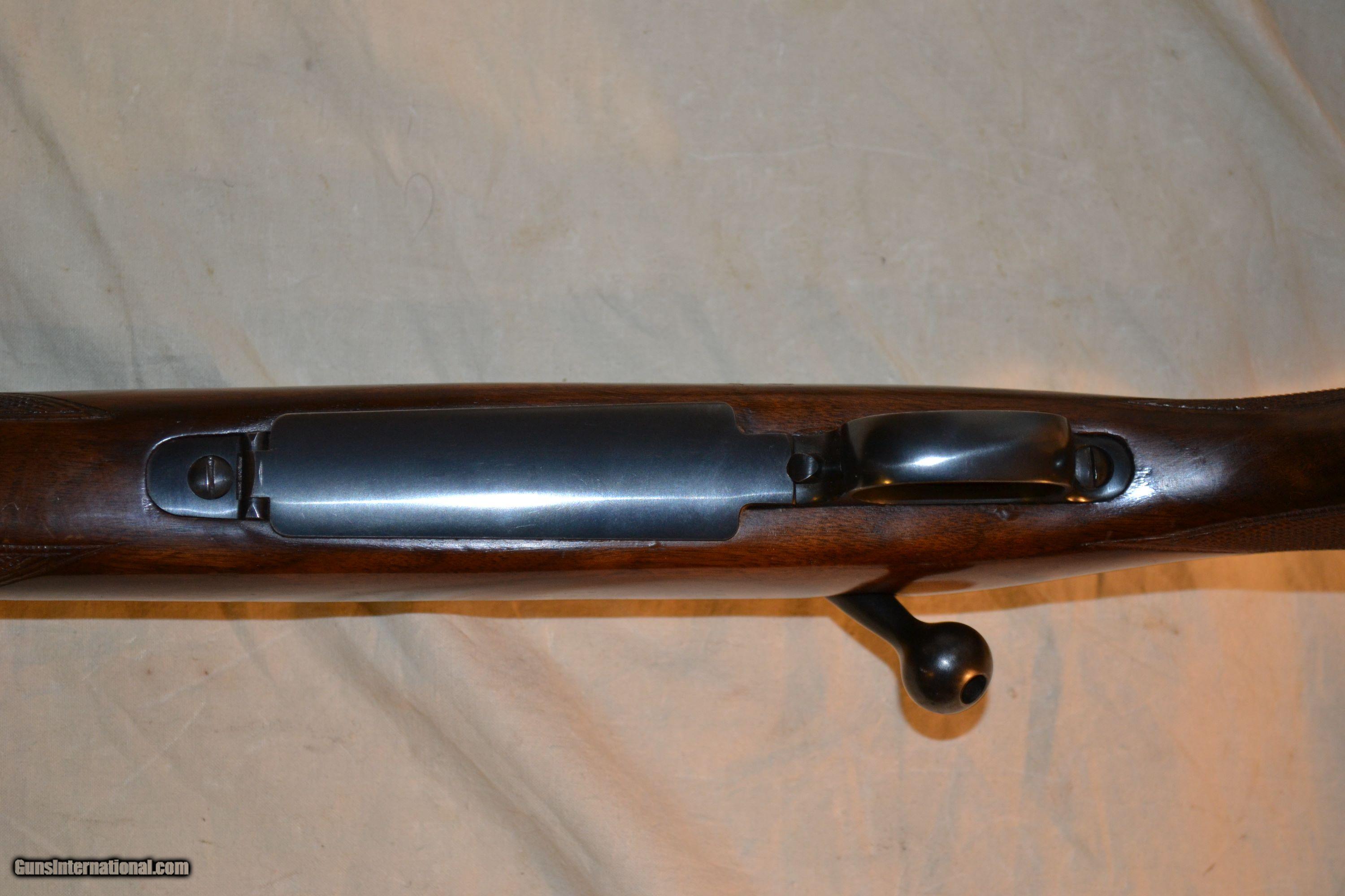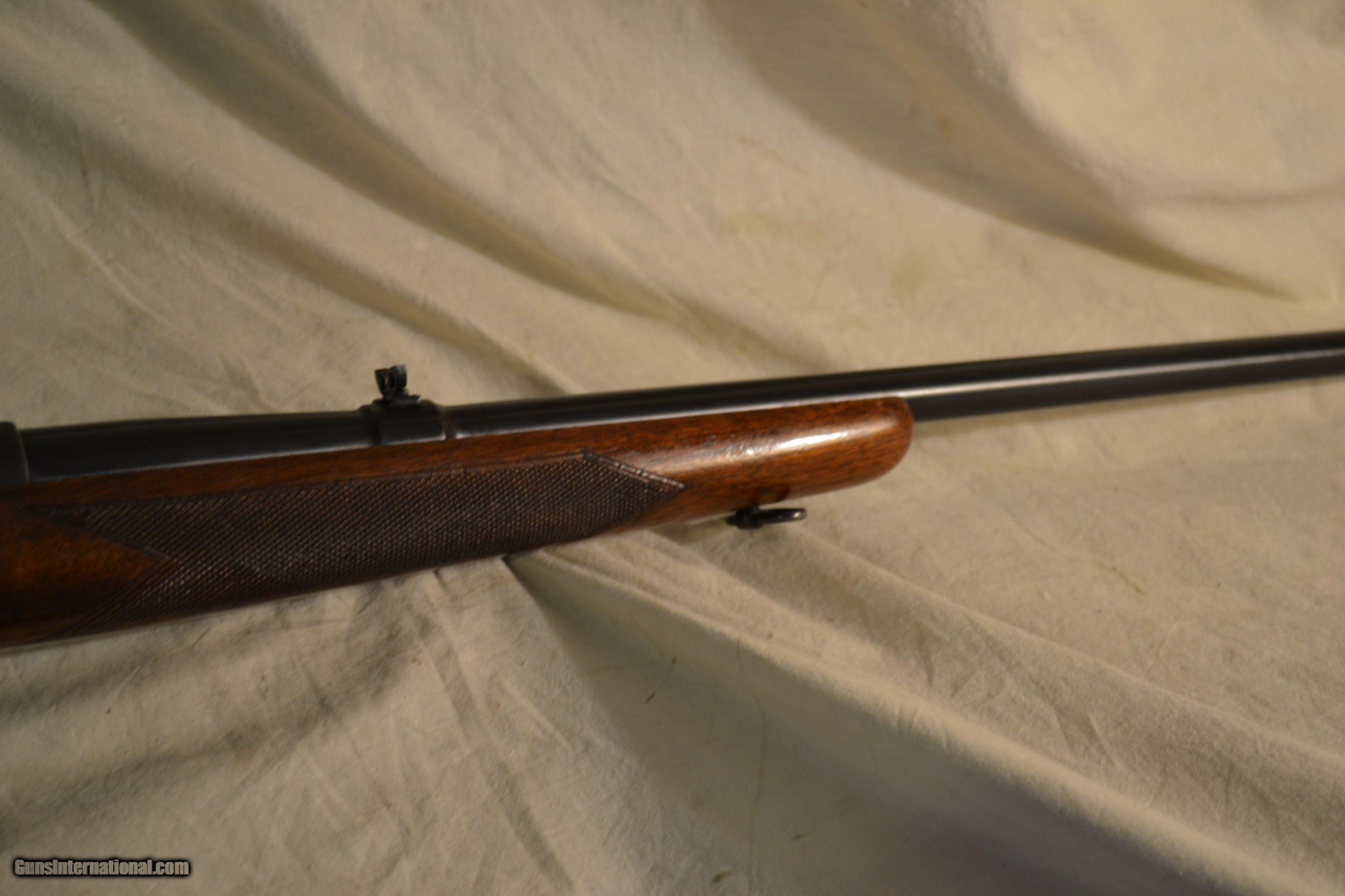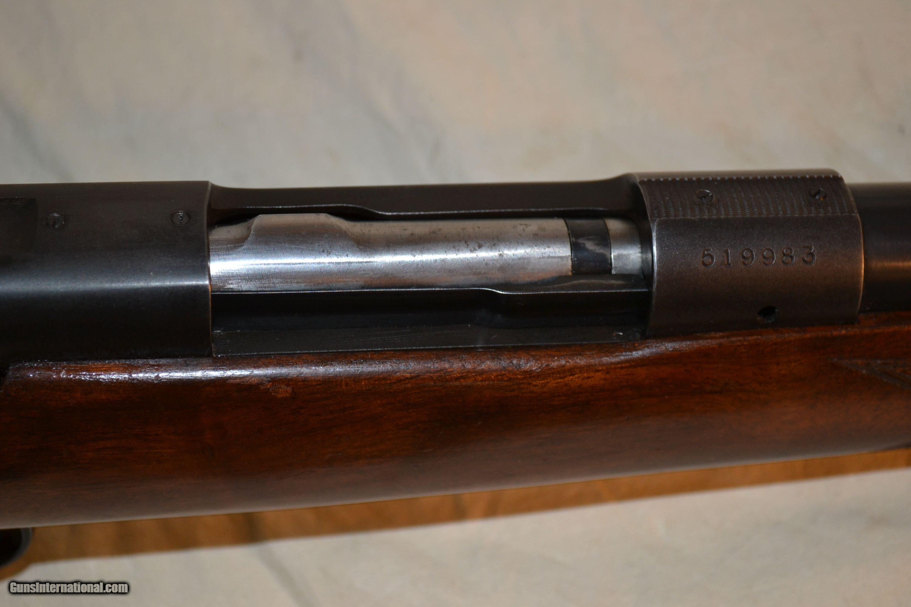 Description: **FURTHER PRICE REDUCTION !! THIS GUN QUALFIES FOR BUNDLE PRICING !! This Winchester M-70 Pre '64 serial no. 519983, Cal .264 Win Magnum, 26" round barrel. The bluing is consistant through out. The Muzzle has some slight edge wear - Normal for the age of the gun. The upper edge of the chamber does also, otherwise The floorplate and trigger housing area are good w/only a slight wear mark in the area of the hinge. I would give this gun an overal bluing rating of about 97 %. The stock has some rubs on the left side just before and ahead of the trigger area. Ther are some markings on the rear area of teh stock in and around the comb area. The forearm area is good w/none of the usual rest indentation along the borrom of the forearm. This fine Winchester is another example of a great gun theat was used to hunt and had good care. The overal rating to me for this M-70 is an NRA Rating of Verg Good to Excellent. SOLD Manufacturer: Winchester Model: M-80 Pre-'64 Serial Number: 519983 Caliber Info: .264 Win Magnum Condition: NRA Very Good Metal Condition: Excellent Wood Condition: Very Good Bore Condition: Excellent LOP: 13 3/4 Finish: Walnut Sights: Rear Ivory V - Flip Manufacture Date: 1961 |