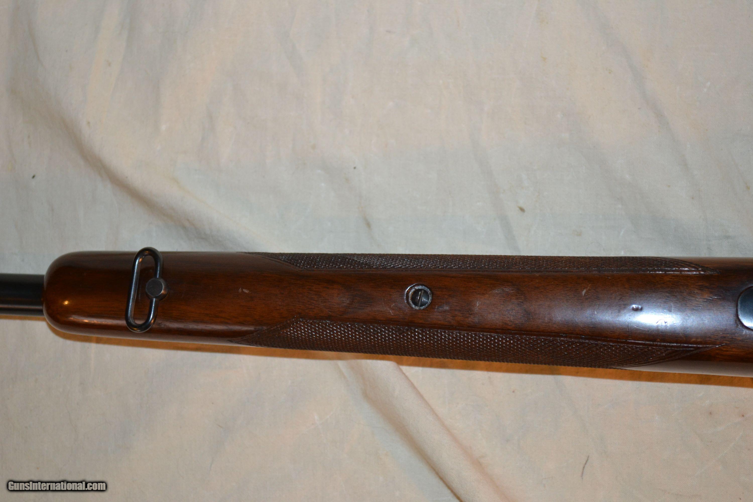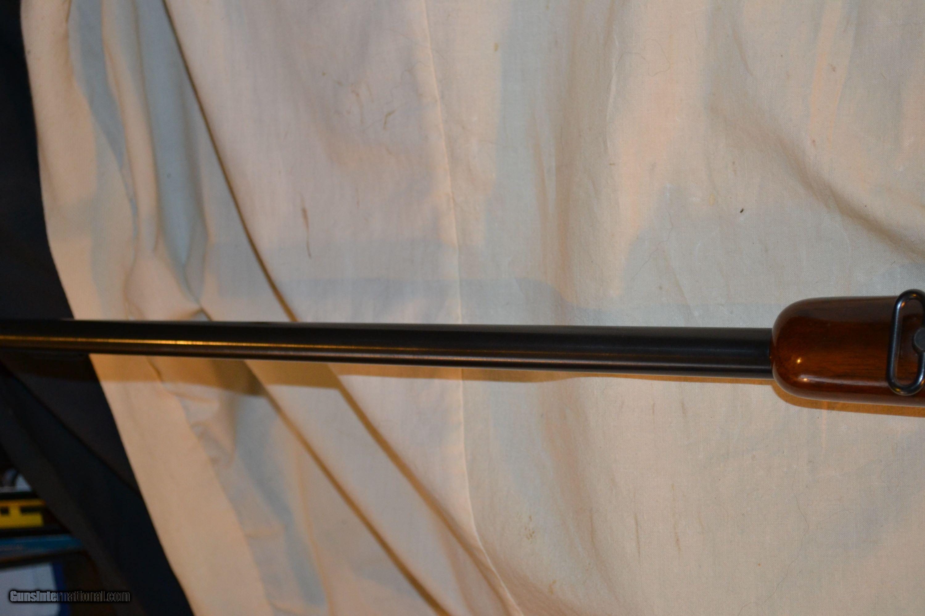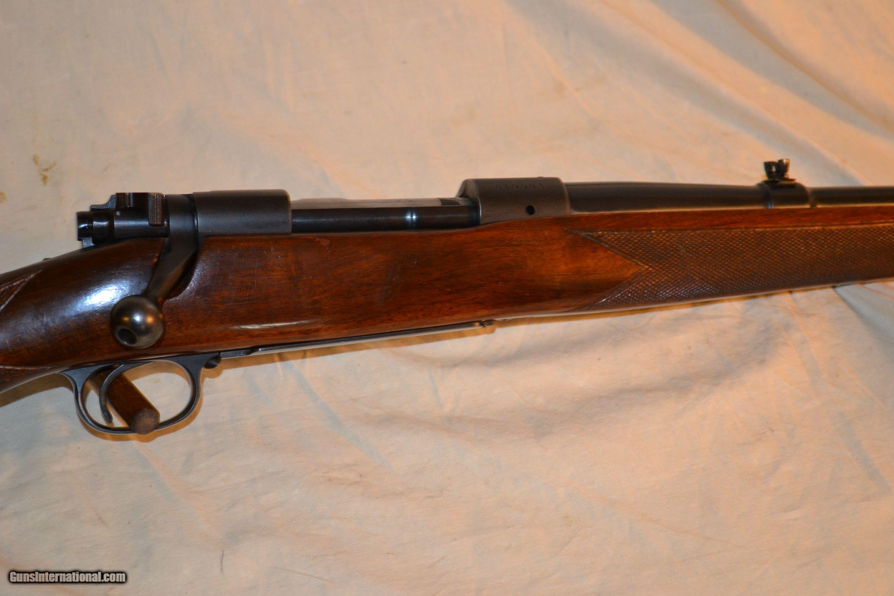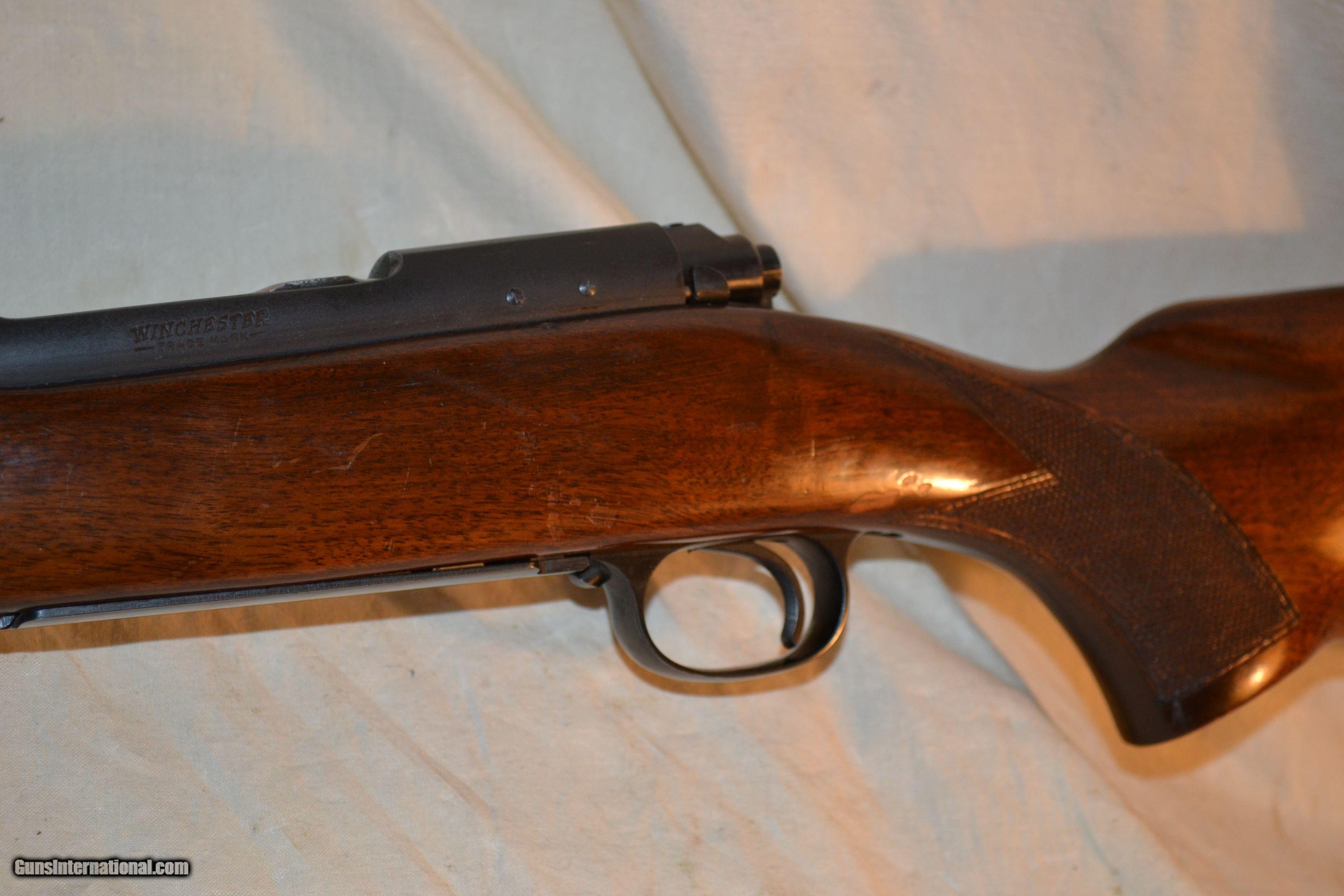 Description: **FURTHER PRICE REDUCTION !! THIS GUN QUALFIES FOR BUNDLE PRICING !! This Winchester M-70 Pre '64 serial no. 519983, Cal .264 Win Magnum, 26" round barrel. The bluing is consistant through out. The Muzzle has some slight edge wear - Normal for the age of the gun. The upper edge of the chamber does also, otherwise The floorplate and trigger housing area are good w/only a slight wear mark in the area of the hinge. I would give this gun an overal bluing rating of about 97 %. The stock has some rubs on the left side just before and ahead of the trigger area. Ther are some markings on the rear area of teh stock in and around the comb area. The forearm area is good w/none of the usual rest indentation along the borrom of the forearm. This fine Winchester is another example of a great gun theat was used to hunt and had good care. The overal rating to me for this M-70 is an NRA Rating of Verg Good to Excellent. SOLD Manufacturer: Winchester Model: M-80 Pre-'64 Serial Number: 519983 Caliber Info: .264 Win Magnum Condition: NRA Very Good Metal Condition: Excellent Wood Condition: Very Good Bore Condition: Excellent LOP: 13 3/4 Finish: Walnut Sights: Rear Ivory V - Flip Manufacture Date: 1961 |