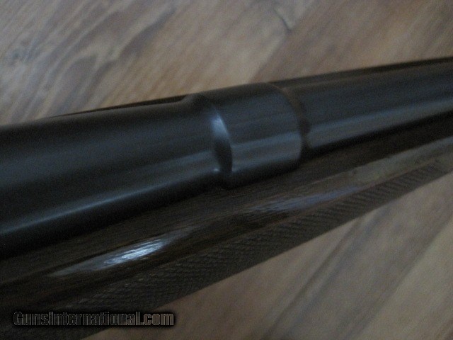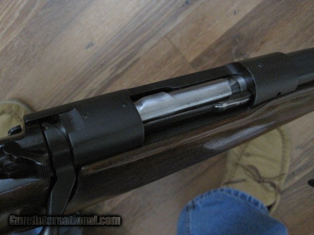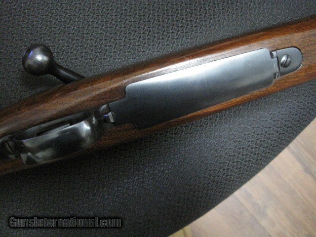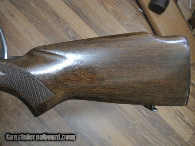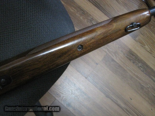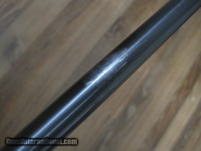 Description: --SOLD, pending funds--Winchester pre 64 Model 70 bolt action rifle in 338 mag cal. A special order gun with no provisions for sights. No dovetail for the rear or front. Ordered without sights. Gun is in averall 96% condition. Wood is excellent, with near all the original finish & no problems. A couple places on the barrel with thinning bluing, but very nice overall. Floorplate piture has some glare, no finish loss. Excellent bore made 1962, serial # 539096. 30.00 to ship. SOLD Curio/Relic: Yes |