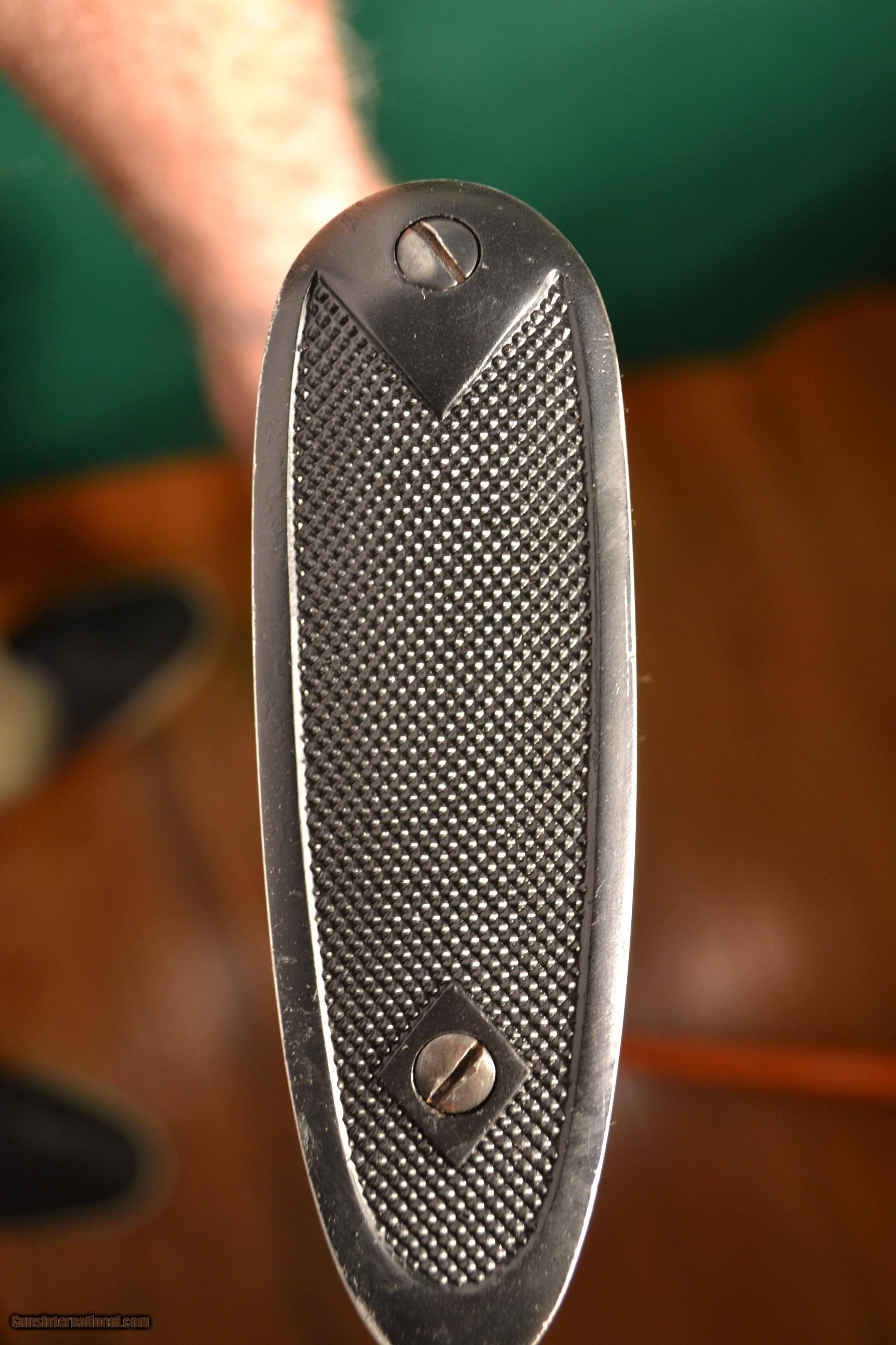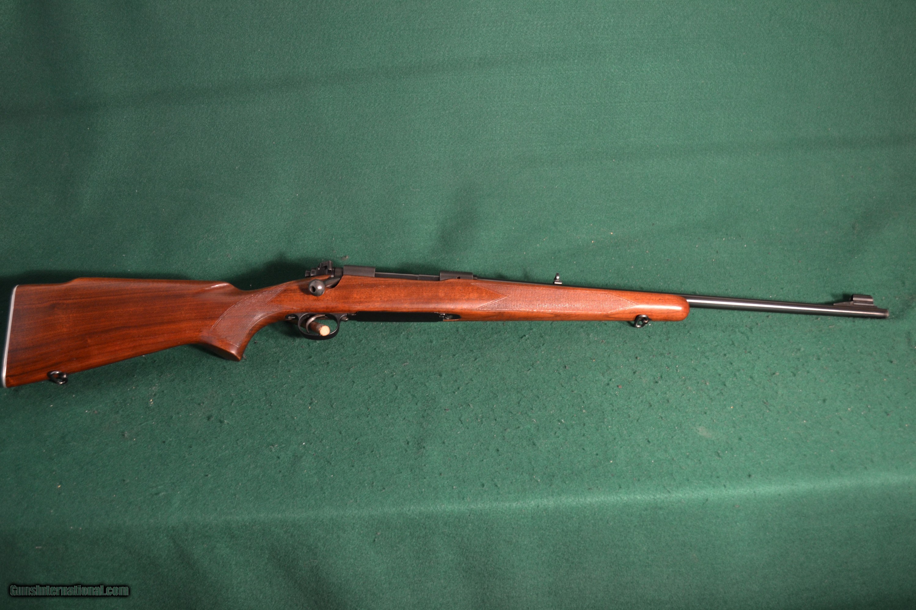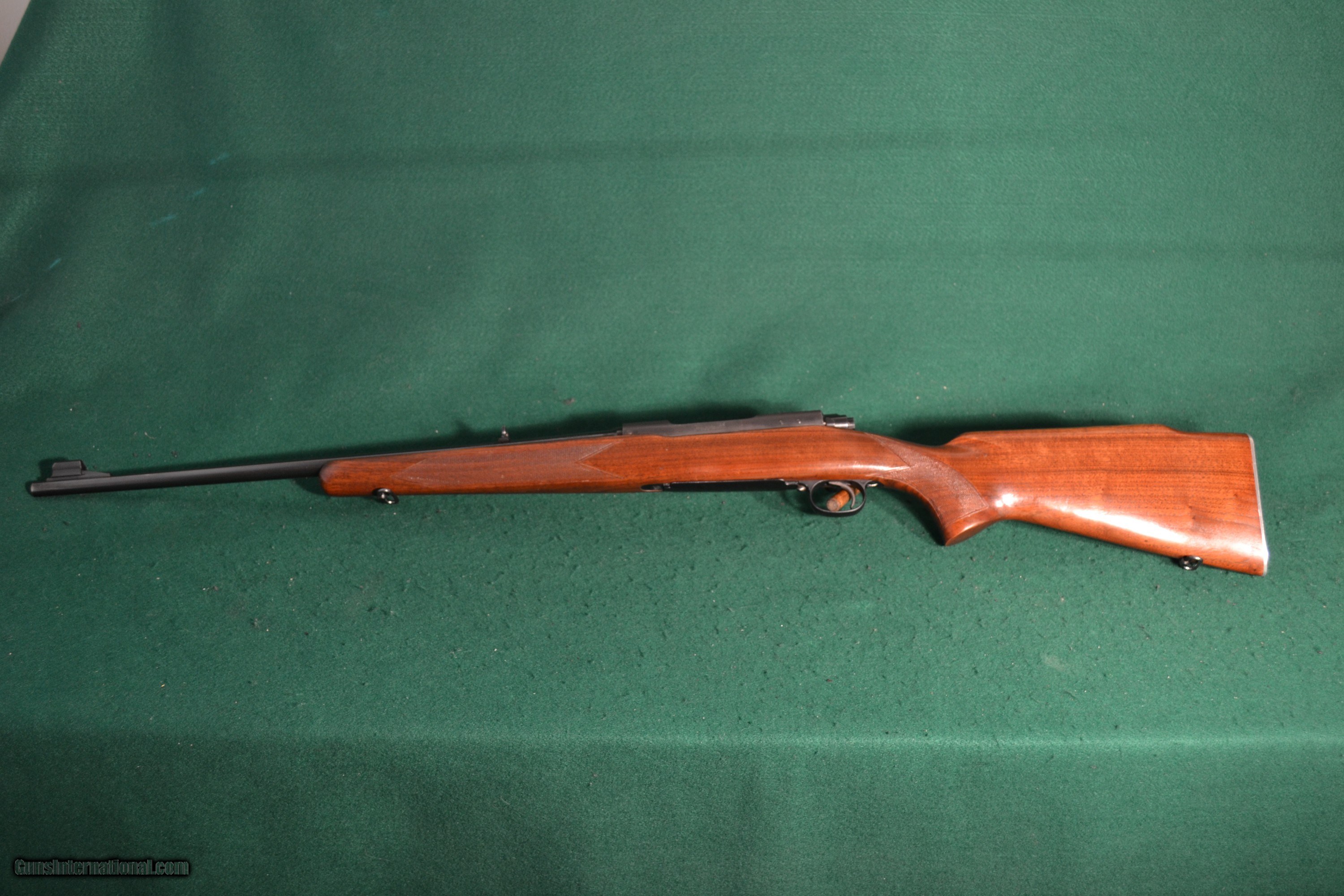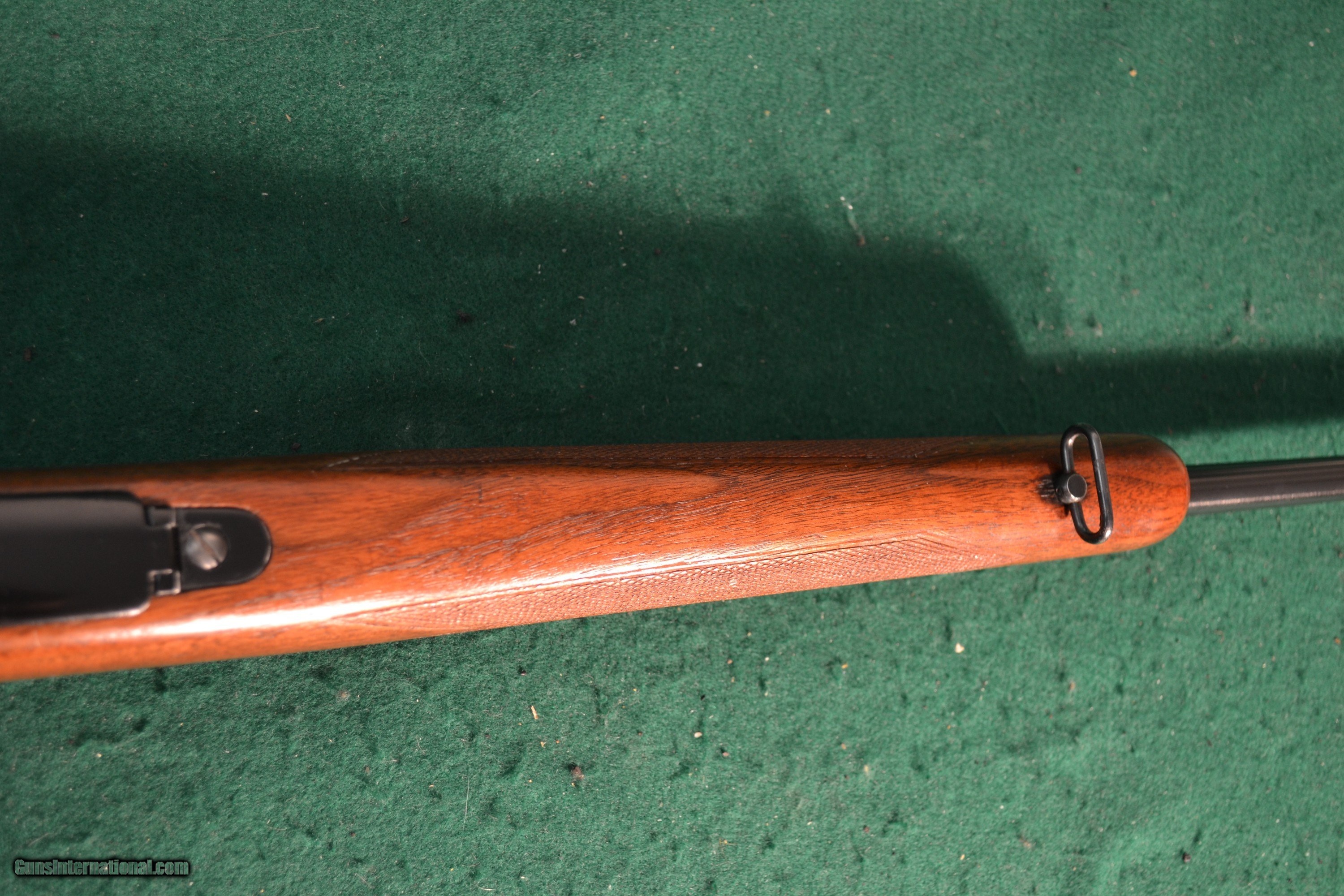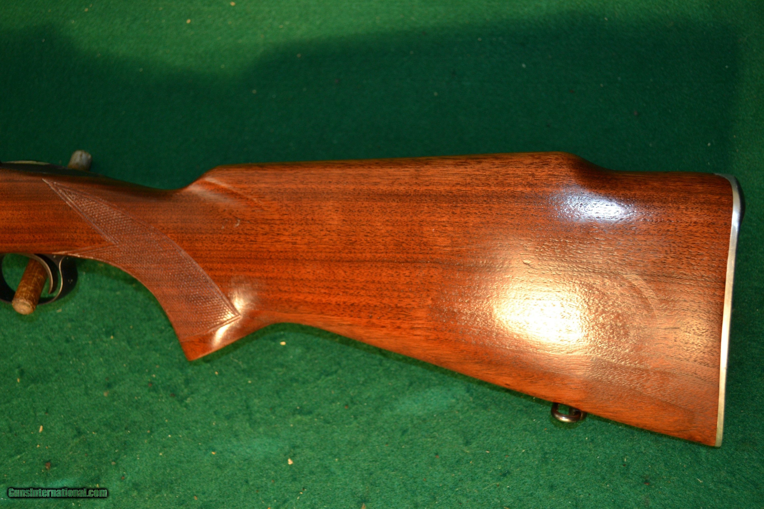Description: SALE Pending !! This Winchester M70 - Pre 64,Featherweight is to me a very collectable piece. It was Mfg in 1954, Cal 30-06 /matching serial numbered bolt. The bluing is abt 98% w/some very faint muzzle edgewear-most likely fr a gun case. The Walnut stock is also very nice & abt 98% w/a clean Aluminium Butt Plate (I see no evidence of a scope mounting or a previous restoration but because it's so clean it could have been an earlier one) & Pristine Condition". I would rate this very niece Win M70 Featherweight & w/an "NRA Excellent" rating. This to me is a good prospect for those Win M70 collectors who wish to complete their collection. (If you want more pics, just ask please !) SOLD Curio/Relic: Yes Rifle Caliber: .30-06 Springfield Manufacturer: Winchester Model: M-70 "Featherweight Serial Number: 345XXX Barrel Length: 22 inch Bore: Bright - Measures "0" (Excellent) Condition: Excellent Metal Condition: Excellent Wood Condition: Excellent Bore Condition: Shiney w/Excellent Rifling Action: Bolt Action Triggers: Adjustable Stock: Walnut w/perfect checkering Stock Comb: Yes Fore End: Excellent w/Perfect Checkering Butt Pad: Aluminum-perfect LOP: 13 3/4 Finish: Walnut - Medium (Pristine) Sights: Front Bead Bar w/Hood, Rear- Adj w/White Dot -Flip Manufacture Date: 1954 |