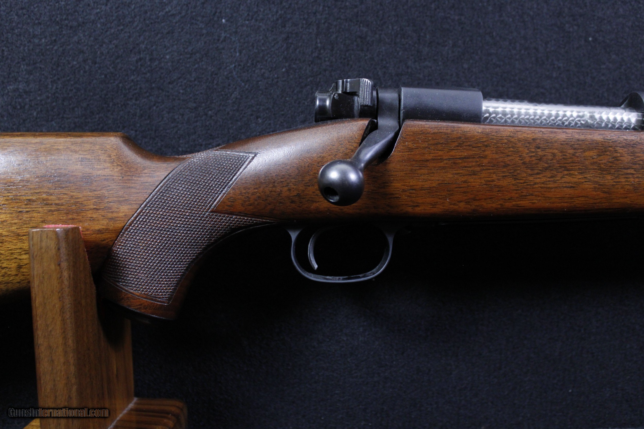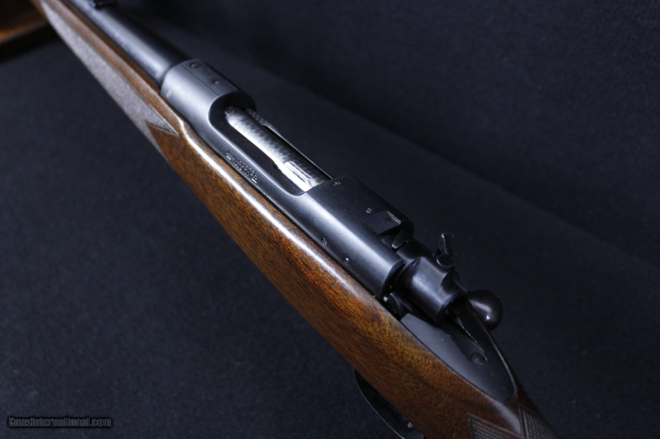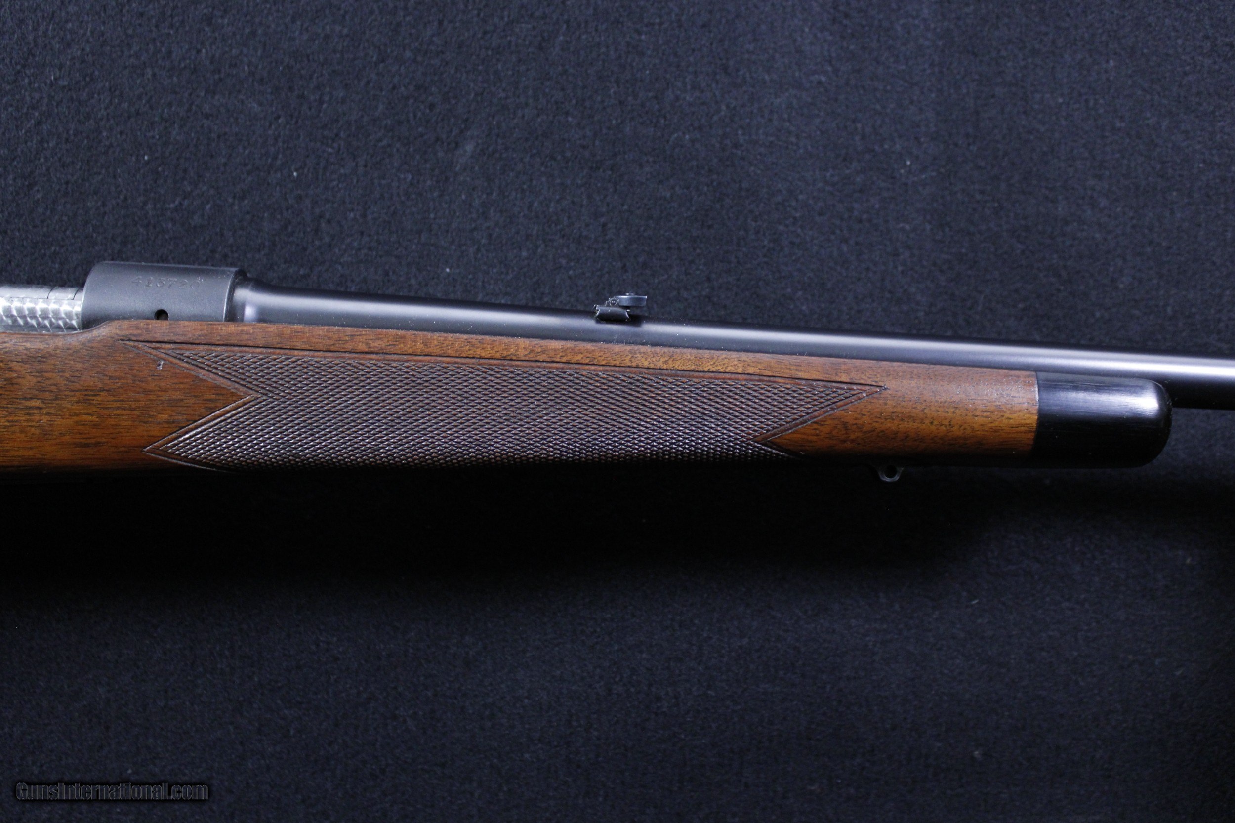 Description: Gorgeous Winchester model 70 Super Grade Featherweight chambered in .30-06 manufactured in 1957. This rifle is in excellent overall condition. Wood shows very little minor handling marks. Bore is bright and clear with well defined lands and grooves. Mechanically excellent. Dimensions are as follows; BBL. 22" WT. 6lb 15oz. DIM. 13 3/8" L.O.P. On Sale!! Was $9499.95 Now $7599.95 SOLD |