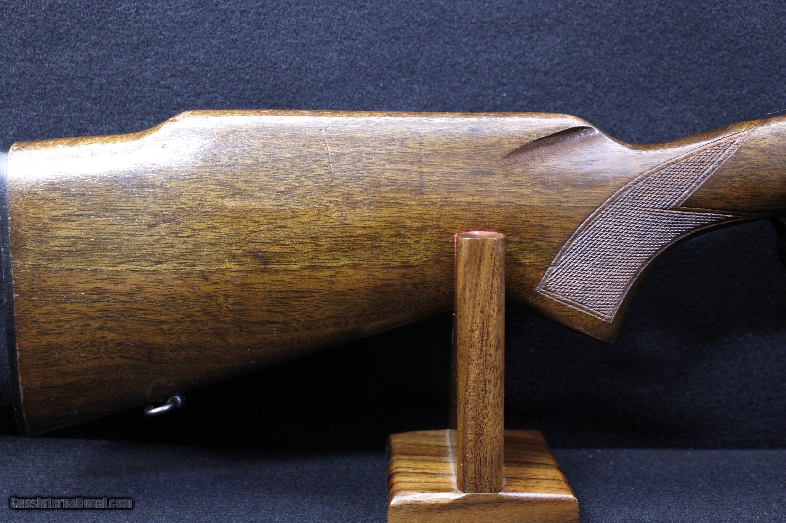 Description: Winchester Model 70 Westerner chambered in .264 Win. Mag. manufactured in 1960. Rifle has some wear to the wood finish, various scratches and handling marks throughout. Bore is bright and clear with well defined lands and grooves. Mechanically excellent. Dimensions are as follows; BBL. 26" WT. 7lb. 13oz. DIM. 13 1/2" L.O.P. On Sale!! Was $2899.95 Now $2399.95 SOLD |