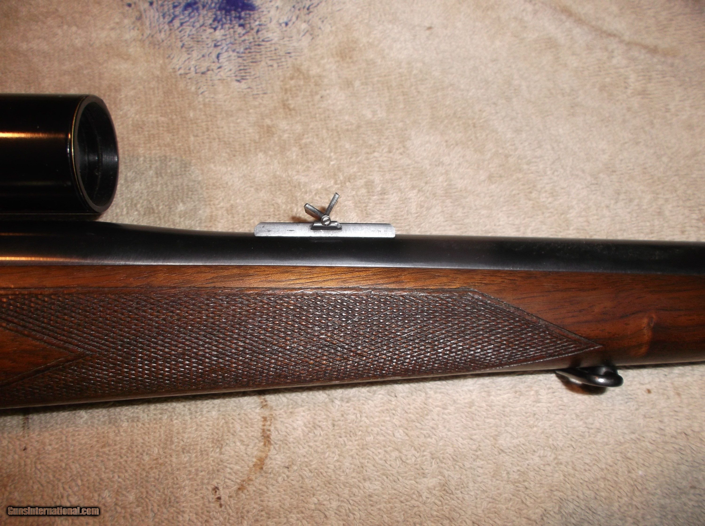 Description: WINCHESTER MOD 70 PRE64 IN 375H&H MAG GUN IS IN EXC COND HAS PAUL JEAGER SIDE MOUNT 4X SCOPE . WINCHESTER RECOIL PAD WOOD & METAL ARE EXC ++ COND HAS EXPRESS SIGHT SER# 264XXX SHIPPING 60.00 FEDX SOLD Rifle Caliber: .375 H&H Magnum |