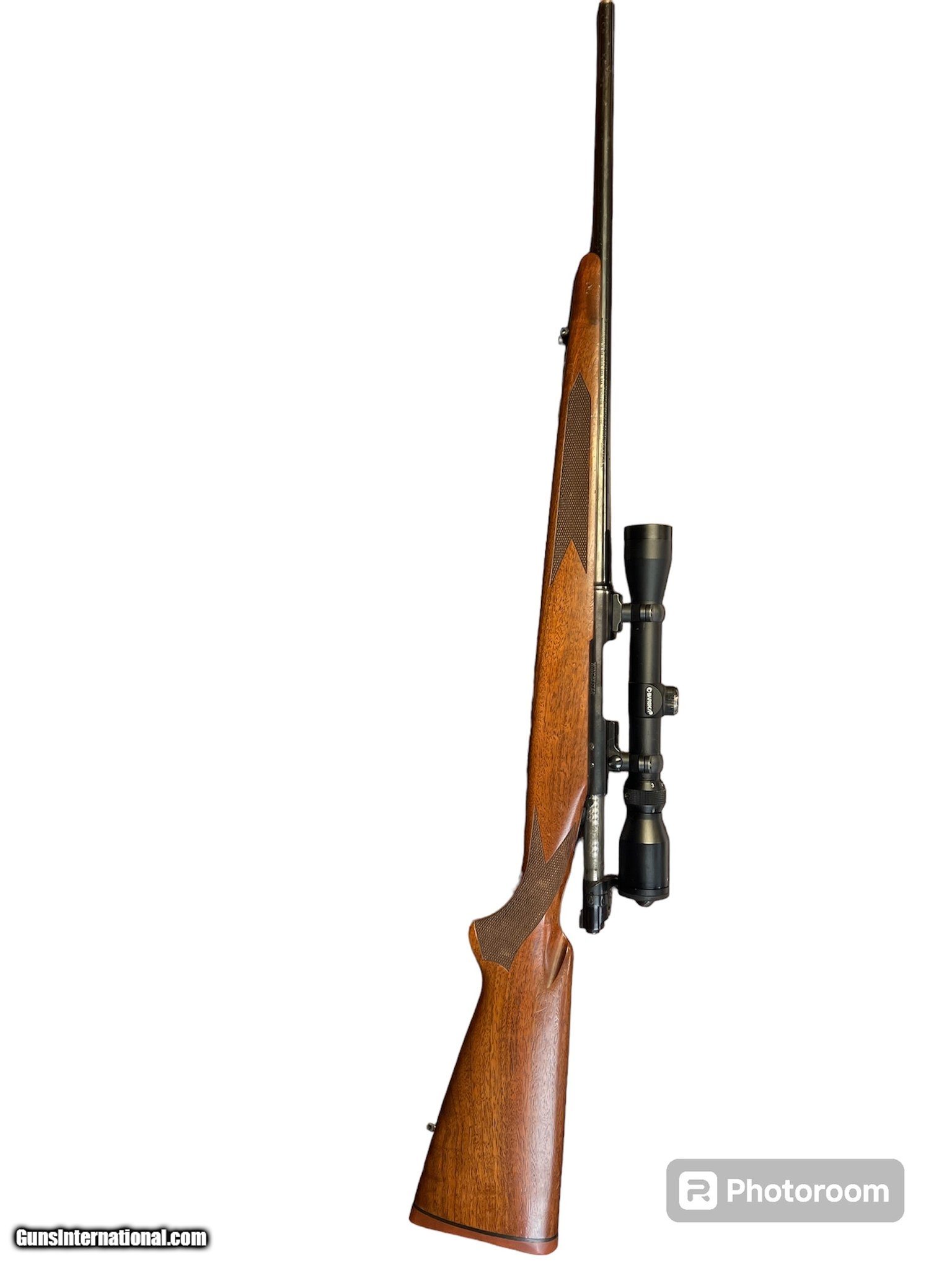 Description: Guns Listing ID: 1307409 The legendary handling and quickness of the Model 70 Featherweight. Few rifles can be identified in an instant like the Featherweight. It is justly famous among hunters everywhere. The Model 70 action offers Pre-’64 style controlled round feeding with claw extractor, a three-position safety and is highlighted by a jeweled bolt body with knurled bolt handle. Comes with Barska Scope SOLD Manufacturer: WINCHESTER Model: MODEL 70 Caliber Info: .22-250 REM Condition: Used - Non-Certified Barrels: 21 BARREL Finish: WOOD GRIPS/BLUED STEEL |