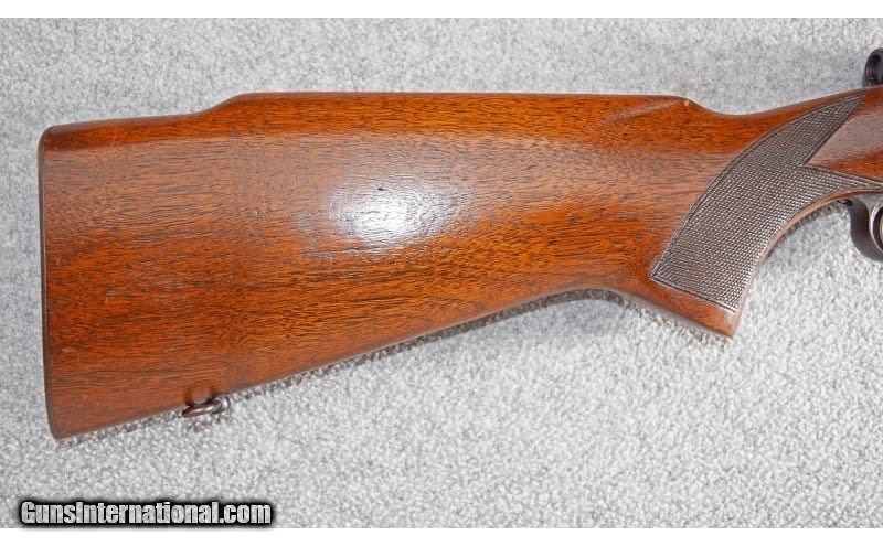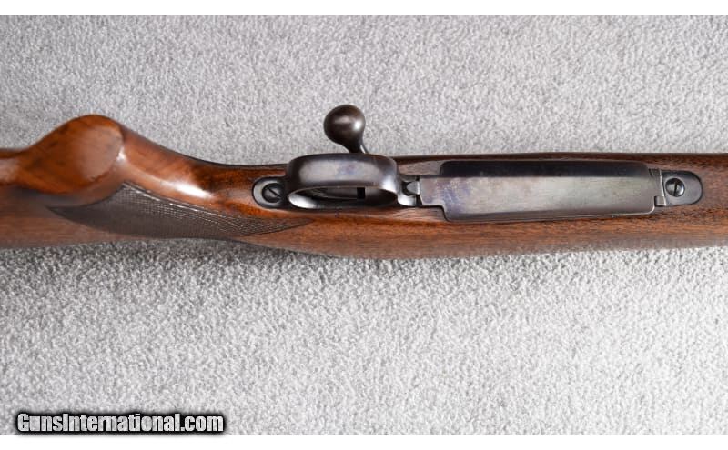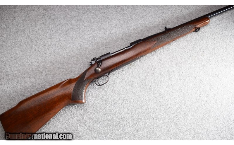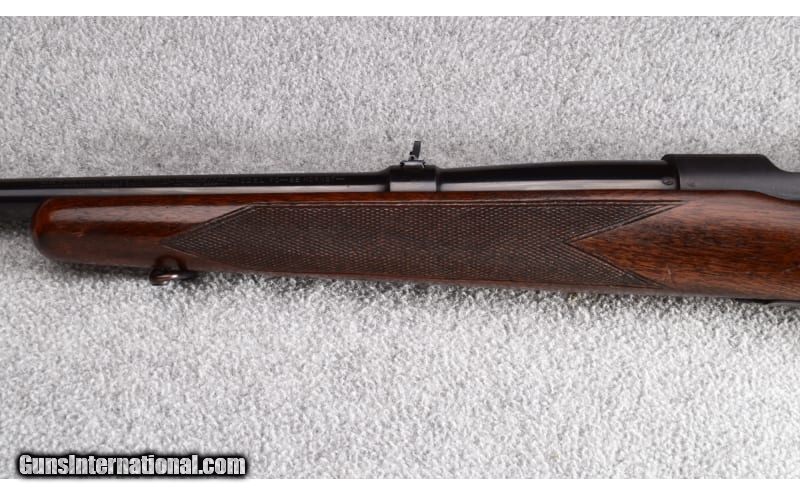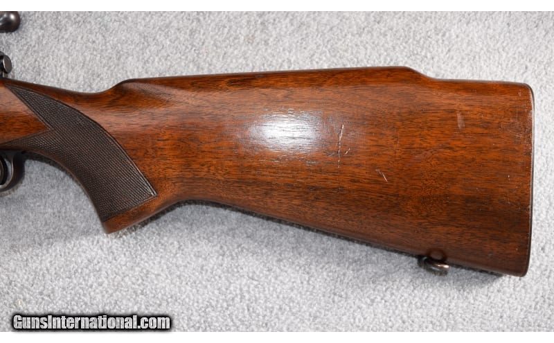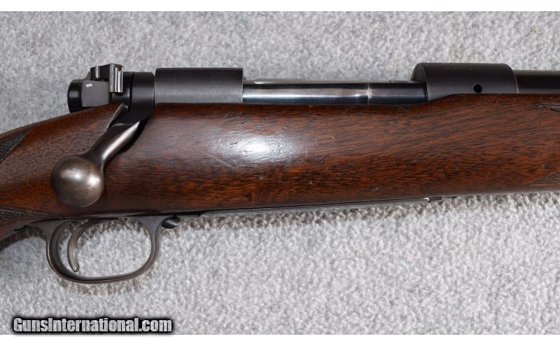 Description: This Winchester Model 70 was manufactured in 1952 and remains in excellent overall condition. Wood is solid with a few light use marks and scratches with a few light areas of flaking finish. Original blue is very good with some marks on floorplate and trigger-guard from age and use and some blue loss on bolt knob. Top of receiver is drilled and tapped with some residue left from scope mount fixative. This is a Controlled Round Feed gun with an excellent bore. Sling swivels remain in place. No box. Still a very nice gun in desirable .22 Hornet caliber! .22 Hornet SOLD Curio/Relic: Yes Metal Condition: Very Good Wood Condition: Very Good Bore Condition: Excellent Barrels: 24 Triggers: Factory Stock Dimensions: 13 3/4" LOP Fore End: Checkered Walnut Semi Pistol Grip - Checkered Walnut Forend Butt Pad: Checkered Metal Butt Plate Weight: 8 1/2 lbs Sights: Hooded Post & Bead Front - Folding V Notch Rear Item Location: Wheeling |