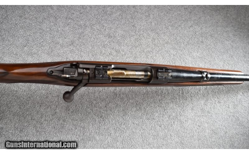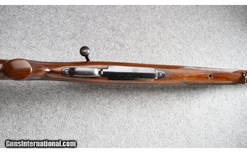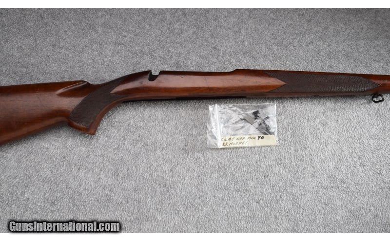 Description: This Winchester Model 70 in .22 Hornet remains in very good overall condition. The serial number (60428) indicates it was manufactured in 1947. There is some oxidation on the barrel and the bolt shows a patina coloring. The bore remains bright and shiny. The wood stock shows a few handling marks as is to be expected from a gun of this era. The rear iron sight has been removed but will accompany this firearm. An extra wood stock will accompany this firearm as shown in the pictures. .22 Hornet SOLD Curio/Relic: Yes Metal Condition: Very Good Wood Condition: Very Good Bore Condition: Excellent Barrels: 24 Triggers: Factory Stock Dimensions: 13.5" LOP Fore End: Checkered Walnut Semi Pistol Grip Stock - Checkered Walnut Forend Butt Pad: Textured Metal Butt Plate Weight: 8.5 lbs Sights: Hooded Post & Bead Front - U Notch Rear Item Location: Wheeling |
