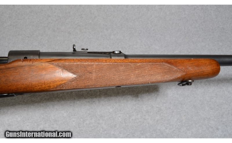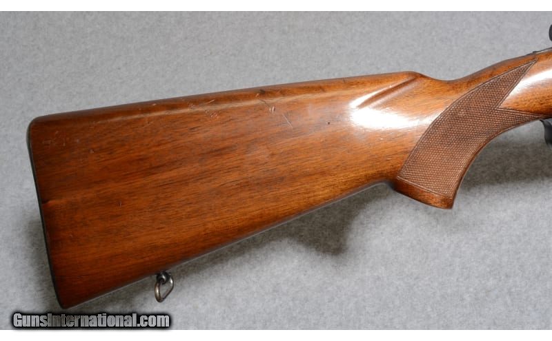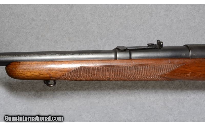 Description: The pre-1964 Model 70s were manufactured from 1936 through 1963, and gained popularity along with the .270 Winchester with the help of gun writer Jack O'Connor, after which time significant changes in the design and manufacture of the rifles were made. Pre-1964 Model 70s bring a substantial price premium due to a public perception that they were better, as they had several desirable features (Mauser-type controlled round feed, cut checkering) that the post-1964 version did not. .220 Swift SOLD Curio/Relic: Yes Chambers: Bolt Action Metal Condition: Excellent Wood Condition: Very Good with some slight dings Bore Condition: Excellent Barrels: 26 Triggers: Factory Trigger Stock Dimensions: "13 1/2"" LOP, 1 1/2"" DAC, 2 1/2"" DAH Fore End: Checkered Walnut with Swivel Butt Pad: Factory Butt Plate Weight: 8.5 lbs. Sights: Hooded Front Post/Adjustable Notch Rear Item Location: Farmington, UT |