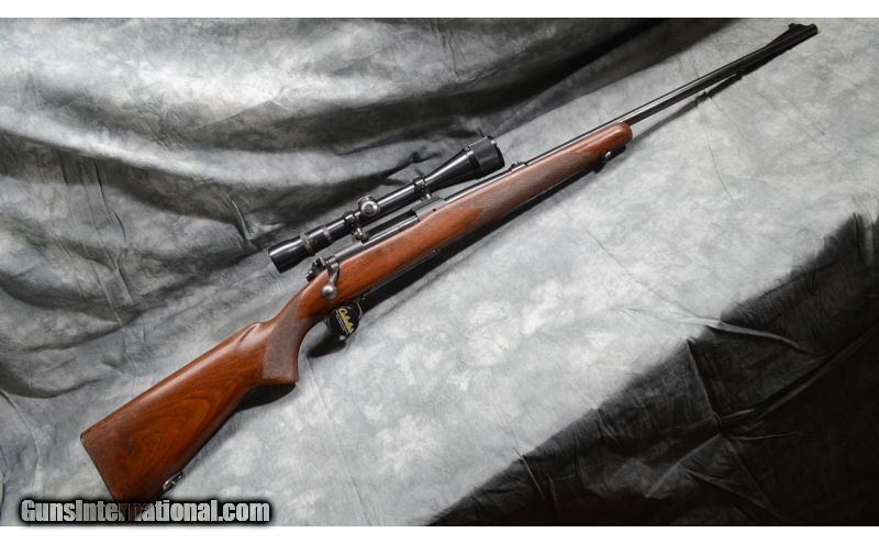 Description: SOLD Curio/Relic: Yes Manufacturer: 1949 based on the S/N Caliber Info: .270 WCF Metal Condition: Very good due to some light handling marks and wear at the muzzle. Wood Condition: Good to very good. Used but well-maintained. Quite a number of nicks and dents, none severe. Finish wear around the left side in the wrist and adjacent stock areas. Bore Condition: Bright and shiny. Barrels: 24 Inch - blued Stock: Checkered walnut, flat knob pistol grip Stock Dimensions: 13 - 1/2 Inch LOP Butt Pad: Steeel plate Weight: 9 lb - 6 oz Sights: Gold bead (rear sight removed to make room for scope), 3-9X scope. Extras: Scope Item Location: Rogers,, MN |