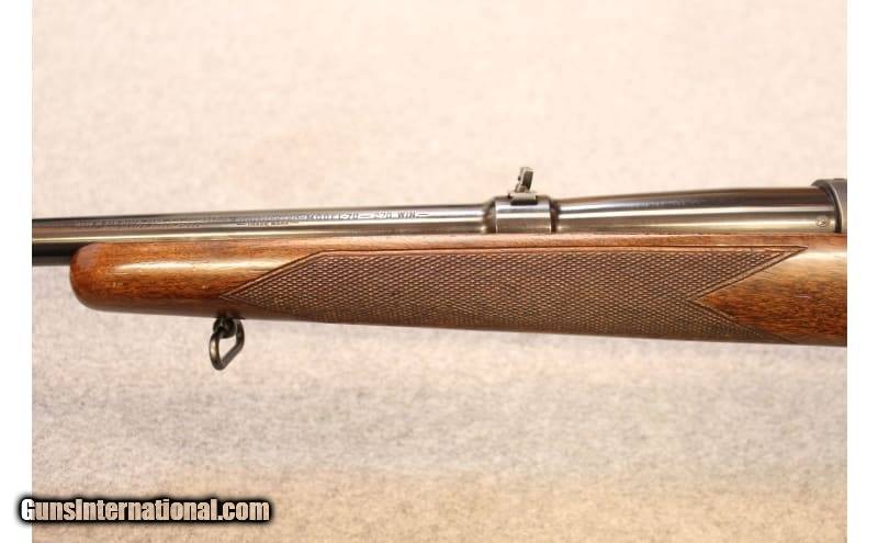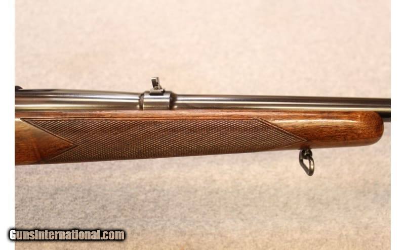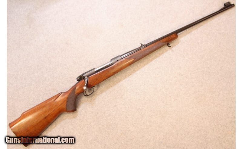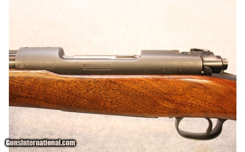 Description: This Winchester Model 70 chambered in .270 Win features, blued finish, tapped receiver, iron sights with hooded front sight, sling mounts, checkered butt plate, and wood checkered stock with no splits or cracks. .270 Winchester SOLD Curio/Relic: Yes Metal Condition: Great Wood Condition: Great Bore Condition: Bright Barrels: 24 Weight: 7.9 lbs. Item Location: Hoffman Estates, IL |