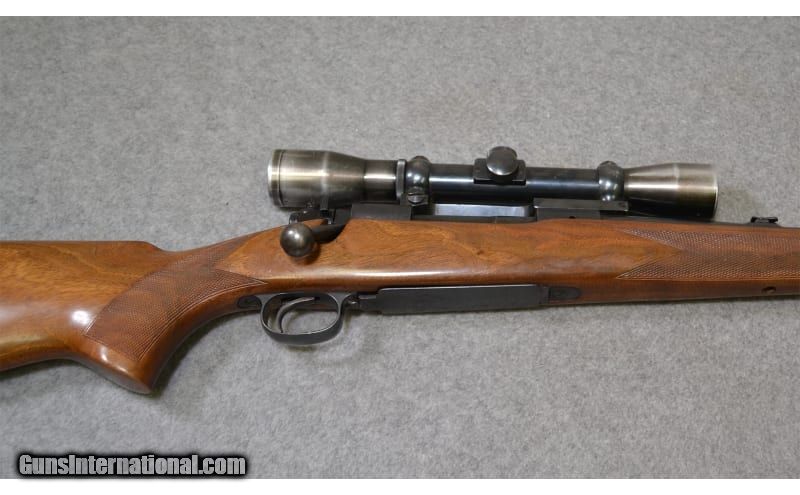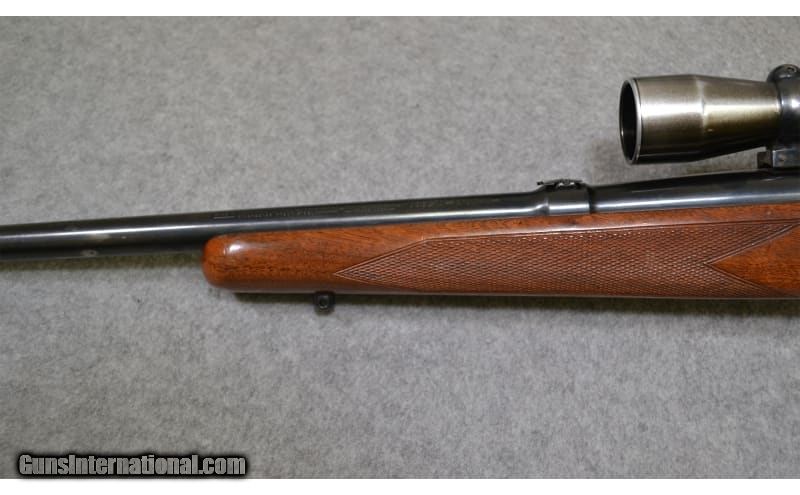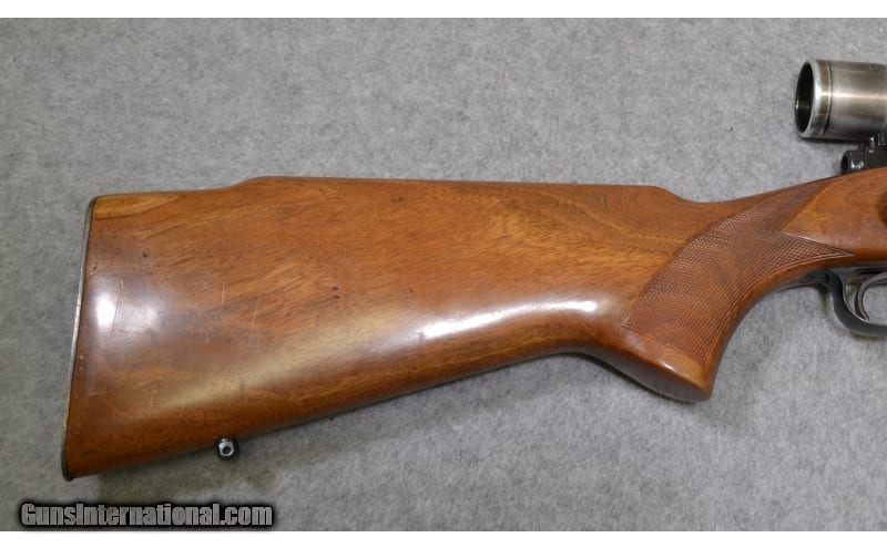 Description: Pre 1964 Model 70 Winchester in 270 Winchester caliber. Interesting Lyman Challenger 444 all weather scope. Excellent condition for firearm manufactured in the 1950s. .270 Winchester SOLD Curio/Relic: Yes Chambers: 1 Metal Condition: Blued average wear Wood Condition: very good Bore Condition: "good, bright and shiny Barrels: 24" tapered Triggers: stock Fore End: wood checkered Butt Pad: Metal Weight: 9 pounds Sights: Lyman Challenger 444 all weather scope Item Location: Mitchell, SD |