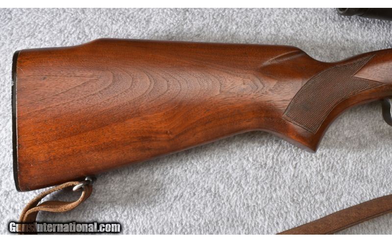 Description: This Winchester Model 70 was manufactured in 1961 and remains in very good overall condition. Wood is solid and shows little use or handling. Original blue is also very good and shows much wear on floorplate, bolt and end of the muzzle. Action is smooth. Controlled round feed action. Bore has darkened with age and could use a good cleaning. Complete with leather basketweave pattern sling and 3-9x42 Meopta Artemis 3000 scope with Duplex Reticle! No box. Nice old gun! .30-06 Springfield SOLD Curio/Relic: Yes Chambers: .30-06 Sprg. Metal Condition: Very Good Wood Condition: Very Good Bore Condition: Very Good Barrels: 22 Triggers: Factory Stock Dimensions: 13 5/8" LOP Fore End: Checkered Walnut Semi Pistol Grip Buttstock - Checkered Walnut Forend Butt Pad: Checkered Black Plastic Butt Plate Weight: 9 lb Sights: Hooded Post & Bead Front - Folding V Notch Rear - 3-9x42 Meopta Artemis 3000 Scope Item Location: Wheeling |