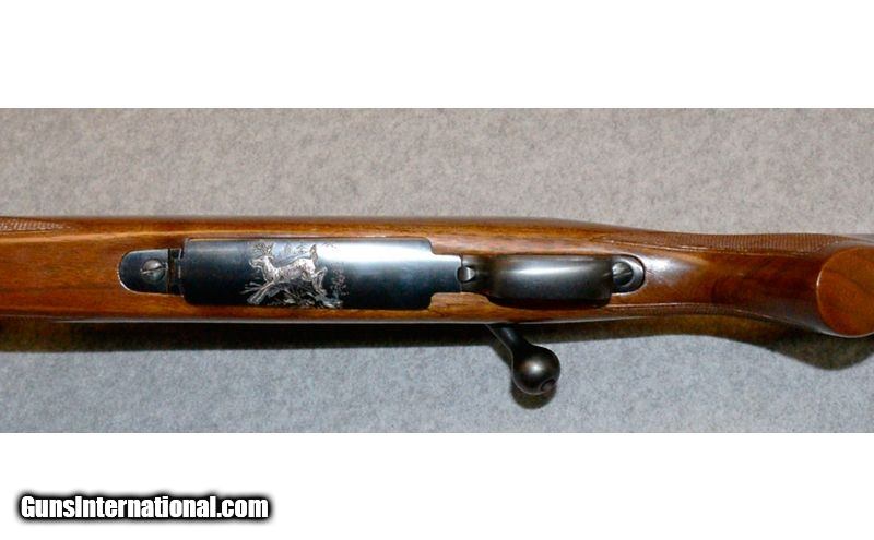 Description: Mfg. 1955 .30-06 Springfield SOLD Curio/Relic: Yes Metal Condition: "Very Good, original finish. Minor, old corrosion is scattered across the rifle, it seems to be only finish deep. The floor plate features an engraved and silver inlaid deer scene. Wood Condition: "Very Good-Excellent, original condition. The only visible damage is a deep ding turned gouge at the toe of the stock. Bore Condition: "Very Good-Excellent, clean and shiny with strong rifling. Barrels: 24" Barrel Triggers: Factory trigger Stock Dimensions: 13 384" LOP Fore End: Factory walnut stock Butt Pad: Steel buttplate Weight: 9lbs 1oz Sights: Fixed front sight with hood and adjustable rear sight. Mounted with a Prominar 4x scope. Item Location: Lacey, WA |