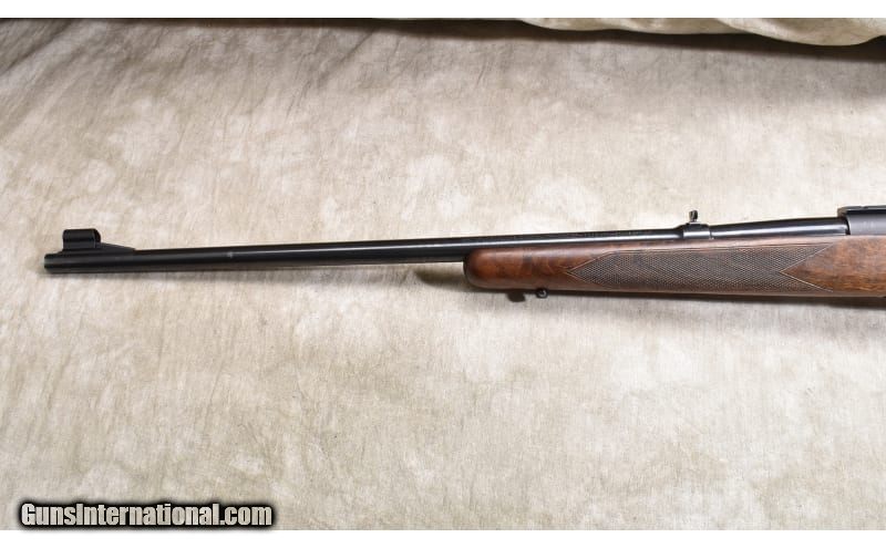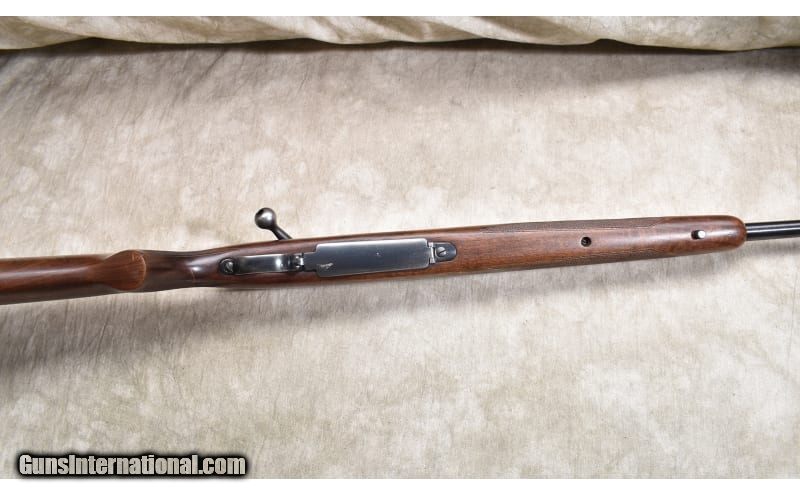 Description: This Model 70 dates to 1954 and is in good shape. It shows signs of use but was very well-maintained. It features a walnut stock with elevated comb, claw extractor, internal magazine, and hinged floor plate. It has open sights and is scope ready. No rust is detected. .30-06 Springfield SOLD Curio/Relic: Yes Chambers: $ rounds. Metal Condition: Good. Most of the blue is a bit faded with wear showing along sharp edges and around the muzzle. There are a couple scrapes on the floor plate and also on top of the barrel. Wood Condition: "Good. Most of the checkering is a bit flattened, and there are a few handling marks but in general it looks pretty good. Bore Condition: "Shiny and bright, rifling is a little thin but good. Barrels: 24-inch Triggers: Factory trigger. Stock Dimensions: 13-3/8 inch LOP. Fore End: Checkered walnut. Butt Pad: "Ventilated rubber, Pachmayr White Line recoil pad. Weight: 8 lb - 5 oz Sights: "Hooded bead and folding leaf ""iron"" sights, drilled and tapped for scope. Item Location: Rogers |