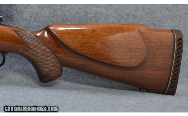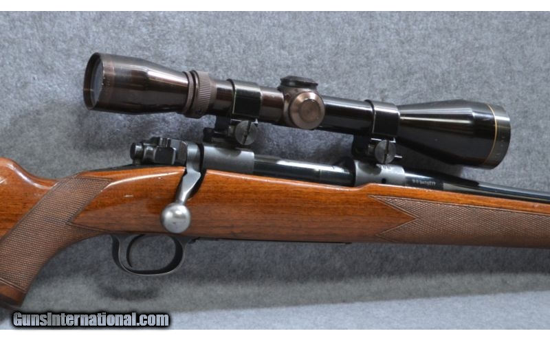 Description: Great Rifle for Hunting and Sporting Pleasure SOLD Manufacturer: 1953 Caliber Info: 308 Norma Mag Metal Condition: Very Good Worn on Floor Plate & End of Barrell Wood Condition: Very Good Small Dents in Stock Bore Condition: Shiny Barrels: 24 1/2 Inch Triggers: Blued Steel Stock: Highly Figurative Stock Dimensions: LOP 13 3/4 Inch Fore End: Highly Figurative Butt Pad: Red Rubber Weight: 9 Lbs 2 Oz Sights: Drilled & Tapped Leupold 3 - 9 Vari X II Extras: Case Item Location: Thornton, CO |