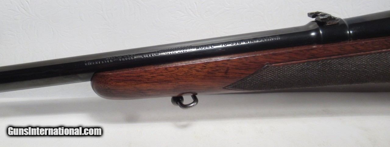 Description: SOLD!!! Winchester Model 70; Serial No. 470520; 338 Winchester Magnum Cal.; Made 1960; 25” Barrel; Nearly All Original Wood and Metal Finish Remains; Perfect Action & Bore; 100% Correct and Original 59 Year-Old Model 70; Joe Van Natta Collection; LIQUIDATING PERSONAL COLLECTION; Price: $2,300 Shipped; Price includes insured shipping; return policy: three days inspection from the date the items received; full refund of shipping both ways ONLY IF THE ITEM IS MISREPRESENTED. SOLD Manufacturer: Winchester Model: 70 Serial Number: 470520 |