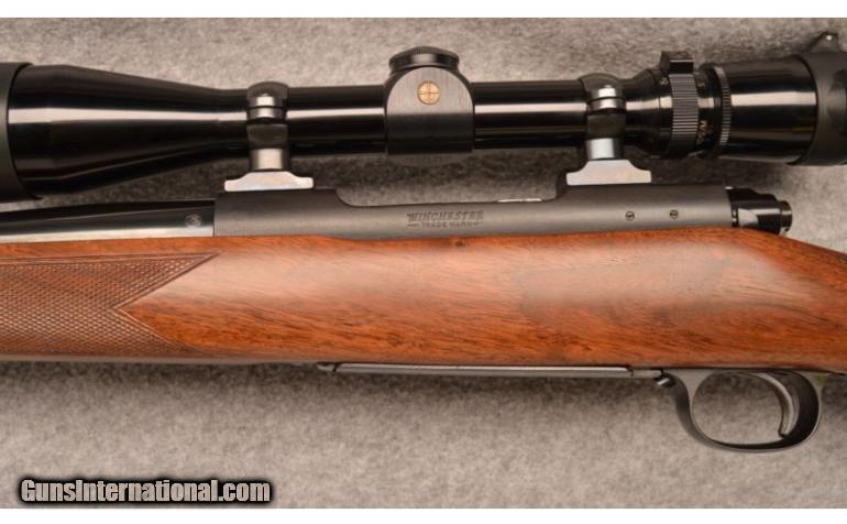 Description: SOLD Manufacturer: 1958 Caliber Info: .338 Win Mag Metal Condition: Fine scratches in blue finish Wood Condition: Some small fine scratches and small dents in stock and forearm Bore Condition: Bright and shiny Barrels: 26 Triggers: Factory serrated Stock: Professionaly refinished hand checkered walnut. Stock Dimensions: 13 1/2" LOP Fore End: Hand checkered walnut Butt Pad: Winchester red rubber pad Weight: 9 lbs 1 oz with included scope Sights: Rear flip sight and hooded front blade. Includes 3.5-10x40 Leupold VX III scope Item Location: Fort Worth, TX |