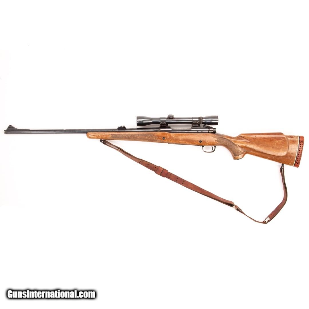Description: Guns Listing ID: 1195487 This Model 70 has a worn blued finish and worn wood furniture. It features a 3-round hinged trapdoor magazine, Weaver K4-C3 scope, leather sling, front beaded blade sight, and an incomplete rear sight. SOLD Manufacturer: WINCHESTER Model: MODEL 70 Caliber Info: 7MM REM MAG Condition: Used - Non-Certified Barrels: 24 BARREL Finish: BLACK /W WOOD STOCK |