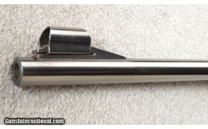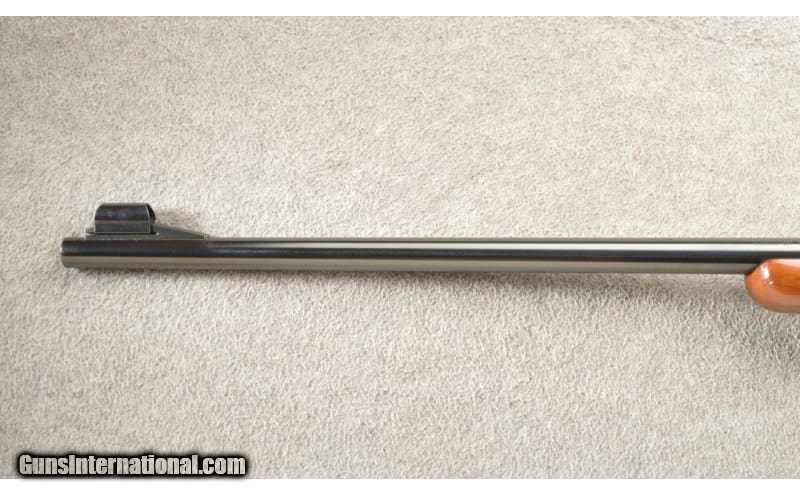 Description: This example is a vintage 1962 "pre-1964" Winchester Model 70 Alaskan rifle chambered in .338 Winchester Magnum. The top of the barrel at the receiver and the left side of the receiver are marked with a circled "WP" proof. The left side of the receiver is marked "WINCHESTER / -TRADE MARK-". The right side of the receiver's chamber ring is marked "545450", found again etched on the bottom of the bolt body. The front sight is a beaded blade dovetailed to a hooded, serrated ramped base fixed to the front of the barrel. The rear sight is a Lyman folding "U"-notch sight with white triangle dovetail on a boss at the rear of the barrel, adjustable for elevation and drift adjustable for windage. The top of the receiver is drilled and tapped for scope mounts. The left of the receiver at the rear is drilled, tapped for a receiver-sight mount. The stock is one-piece checkered walnut with pistol grip, Monte Carlo comb, orange ventilated rubber Winchester buttpad and sling swivels mounted front and rear. This gun is lightly used in excellent condition. .338 Winchester Magnum SOLD Curio/Relic: Yes Chambers: Bolt action. Metal Condition: 99% blued finish throughout. The bolt has minor operational wear. Wood Condition: 99% excellent with a few light handling marks. Bore Condition: Bright strong bore. Barrels: 25" barrel. Triggers: Single. Stock Dimensions: LOP 13.5". Fore End: Checkered. Butt Pad: Rubber. Weight: 8 LBS Sights: Adjustable. Item Location: Owatonna, MN |