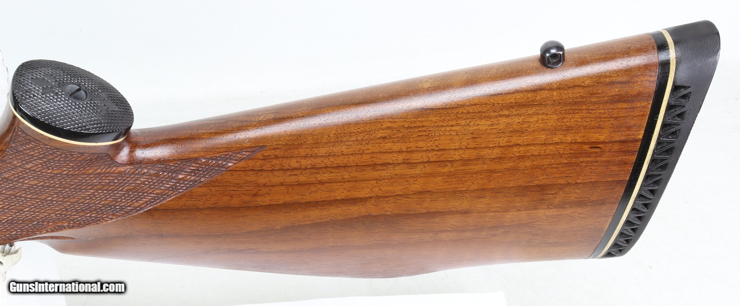 Description: Winchester Model 70 Bolt Action Rifle in .270 Win. SN #563818. Mfg. in 1962. LOP 13 5/8". 24" Barrel with an EXCELLENT Bright Bore with STRONG RIFLING. The Blued Metal is in EXCELLENT condition as is the Up-Graded After Market Stock and Forend with Skip-Line Checkering. Ebony Pistol Grip Cap and Forend Tip. Open Sights with Hooded Front Sight and Flip Down Rear Sight. Hinged Magazine Floorplate. Sling Studs. Comes with Weaver Scope Rings. Weight: 8.3 lbs. Trigger Pull: 3 1/2 lbs. More photos available upon request. Ships to Lower 48 W/ Insurance $55.00. Sold Pending Receipt of Funds SOLD Curio/Relic: Yes Rifle Caliber: .270 Winchester Manufacturer: Winchester Model: 70 Serial Number: 563818 Barrel Length: 24 Condition: Excellent Metal Condition: Excellent Wood Condition: Excellent Bore Condition: Excellent Action: Bolt LOP: 13 5/8 Finish: Blue Weight: 8.3 lbs. Manufacture Date: 1962 |