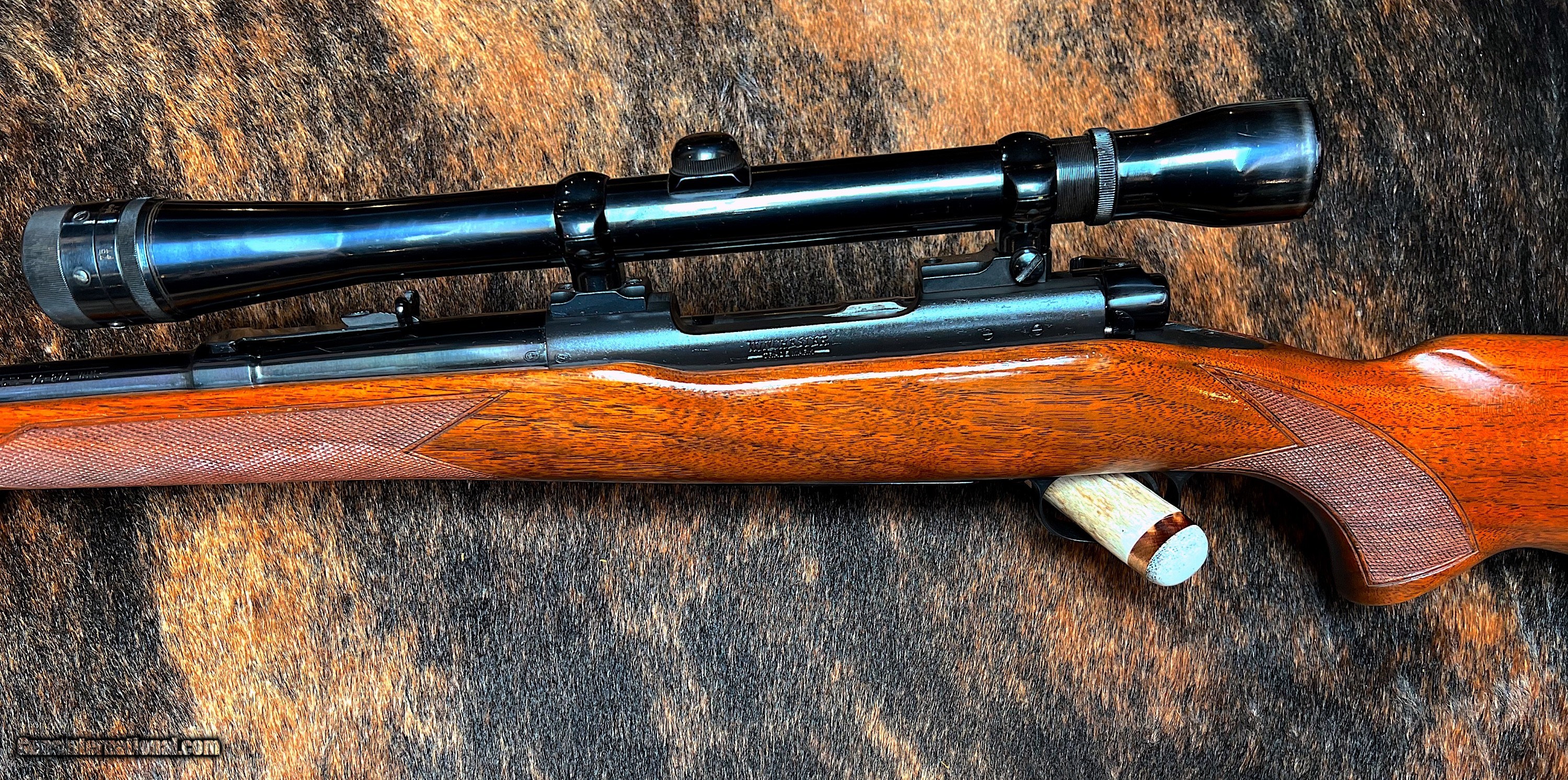 Description: This Pre-64 model 70 is in excellent condition with a time period scope and a 2lbs trigger pull this was a safe queen most of its life and would be an excellent North American big game rifle. SOLD Rifle Caliber: .270 Winchester Manufacturer: Winchester Model: 70 Serial Number: 172419 Barrel Length: 23 Condition: Excellent |