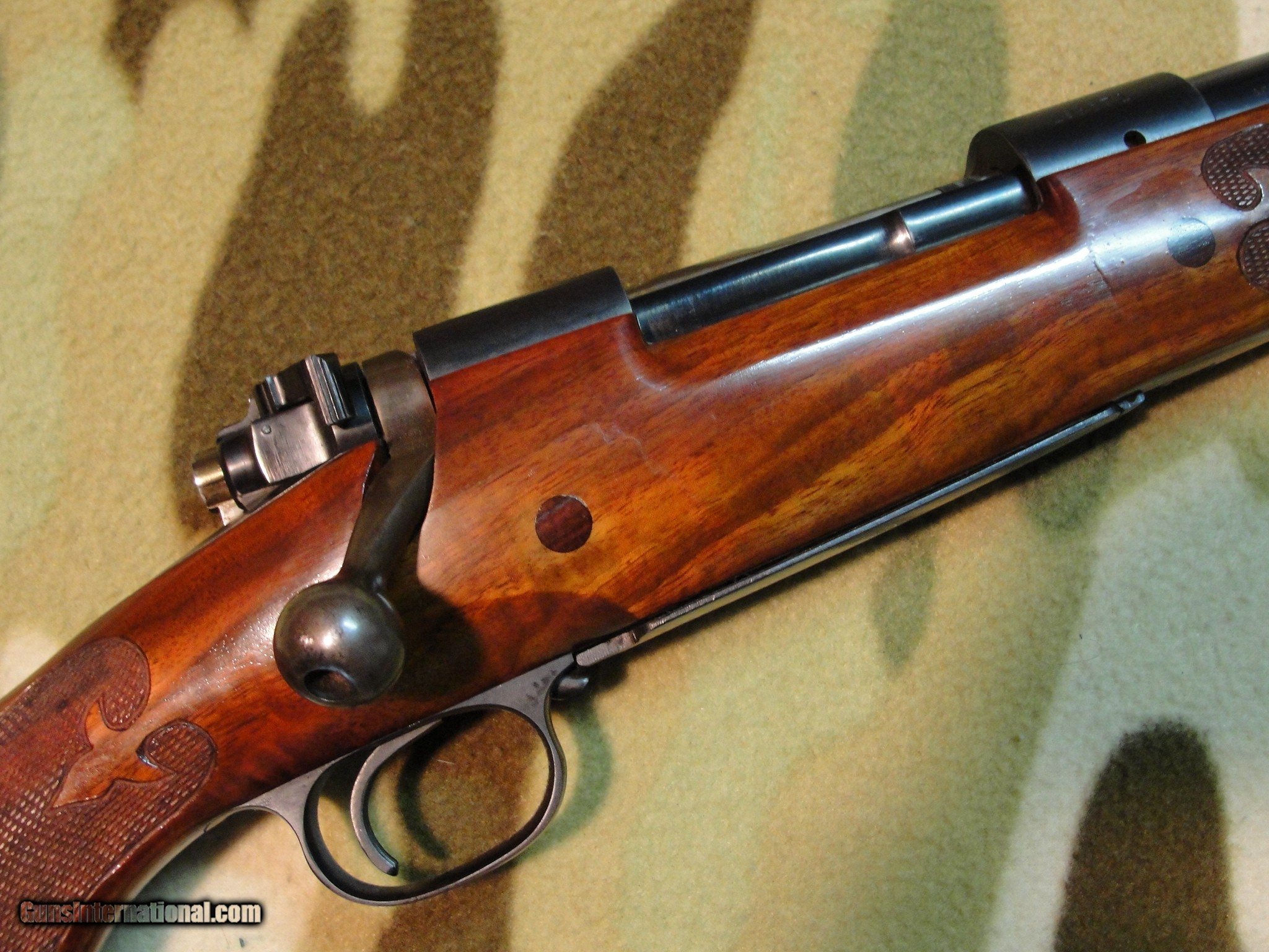 Description: Built on a 1954 Model 70 action, with a Gorgeous stock, pristine blueing, and in a REALLY cool caliber: 7x61 Sharpe and Hart...look it up! Comes with 2 full boxes Norma cartridges with the proper headstamp, and a set of Hollywood dies. 24-1/2" barrel, clean, crisp, shiny bore and chamber. 12-7/8" pull over a Pachmayr pad. Add your choice of scope then WOW them at the range with this retro custom in a nostalgic caliber. CA OK, C&R OK. Call or email for more info. SOLD Curio/Relic: Yes |