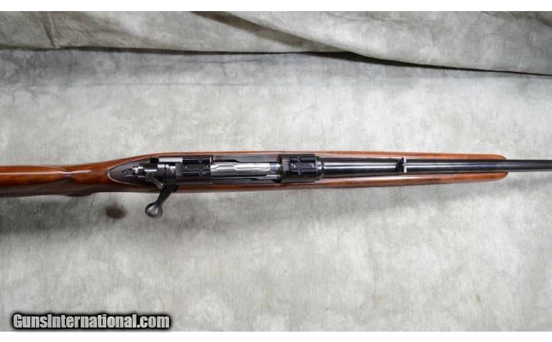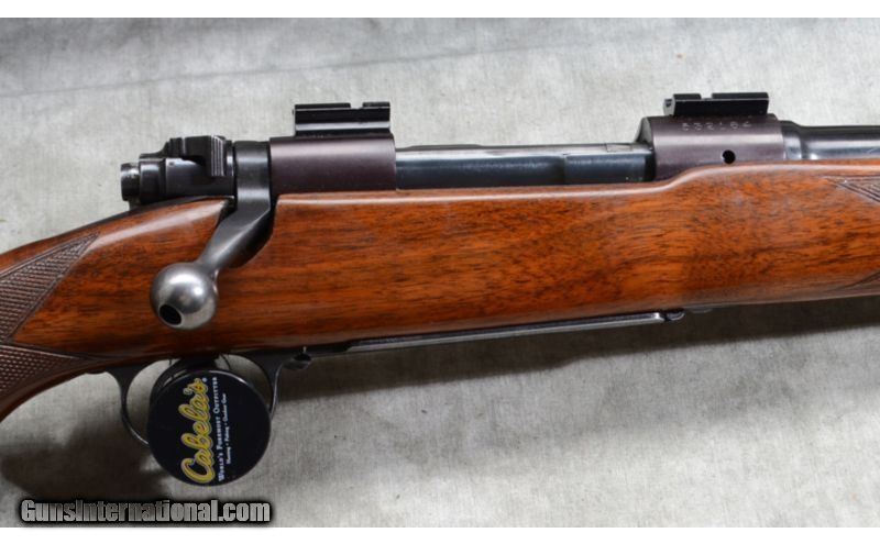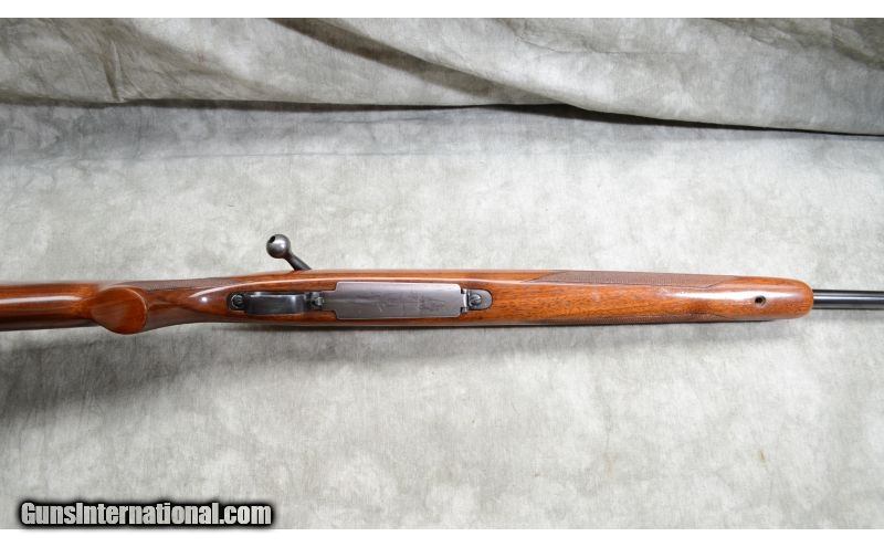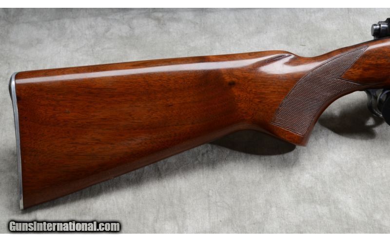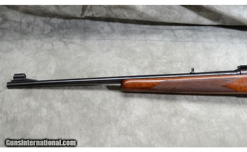 Description: This pre-64 Model 70 features checkered walnut stock, aluminum trigger guard and butt plate, hooded bead and folding leaf open sights, set-up for scope, and has claw extractor. SOLD Curio/Relic: Yes Manufacturer: 1961 based upon the S/n 532xxx. Caliber Info: .243 Winchester. Chambers: 4 round internal magazine with hinged floor plate. Metal Condition: Very good. Floor plate a bit faed and some handling marks on the barrel. Wood Condition: Good to very good. A few fine scratches and sling swivel holes (swivels removed.) Bore Condition: Clean and shiny with good rifling. Barrels: 22 Inch - blue, with open sights. Triggers: Factory trigger. Stock: Checkered walnut with pistol grip. Stock Dimensions: 13 - 1/2 Inch LOP. Butt Pad: Blackened aluminum plate. Weight: 7 lb. - 1 oz. Sights: Hooded bead and folding leaf open sights. Drilled and tapped for scope. Item Location: Rogers,, MN |
