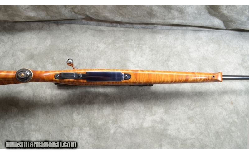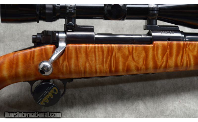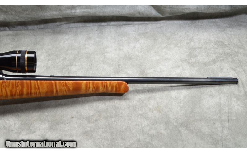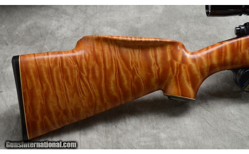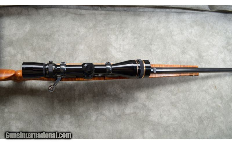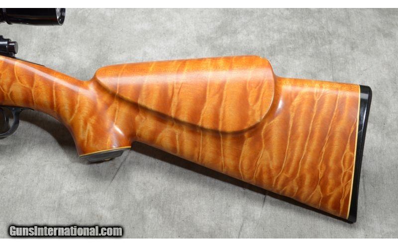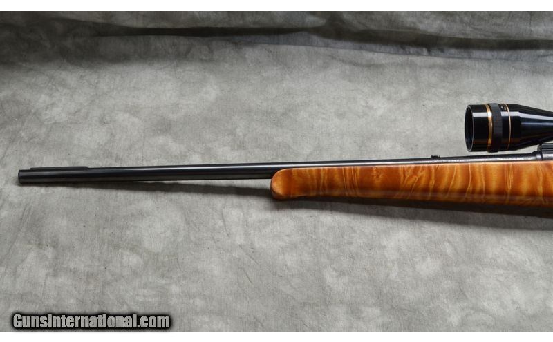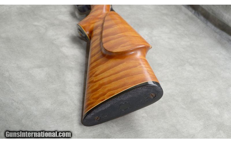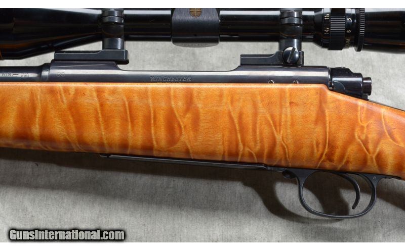 Description: This Pre-64 Model 70 FWT features a striking curly maple stock with lots of tiger eye figure, pistol grip with rolled over comb, Leupold Vari-X III 4.5 - 14x scope, in excellent condition showing no rust or scratches. .243 Winchester SOLD Chambers: 4 + 1 capacity bolt action with hinged floorplate. Metal Condition: Excellent. Wood Condition: Excellent. Barrels: 22 Inch - blue, without sights, sights were removed and dovetails plugged. Triggers: Grooved factory trigger. Stock Dimensions: 13 inch LOP. Fore End: Has flaring Schnabel tip. Butt Pad: Black Herter's plate. Sights: Leupold Vari-X III 4.5 - 14x. Factory sights removed and dovetails filled. Item Location: Rogers |
