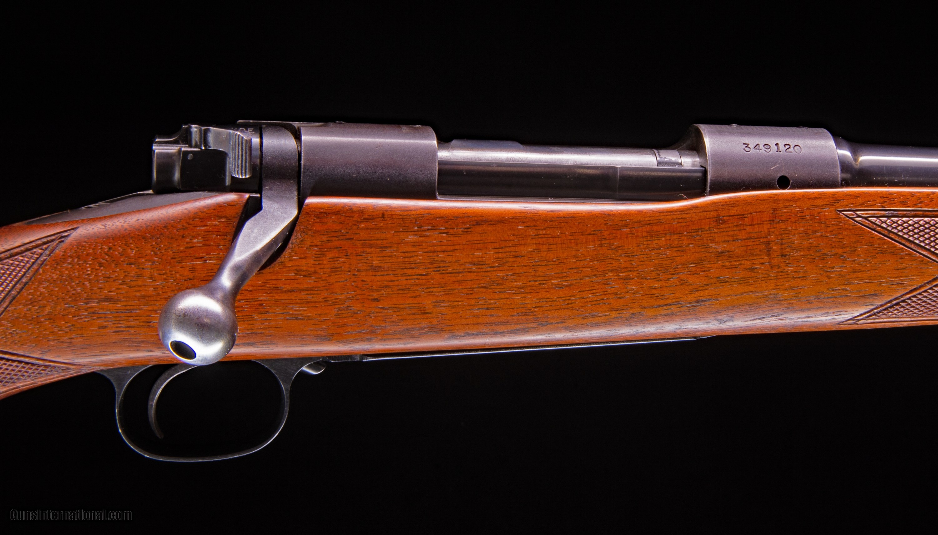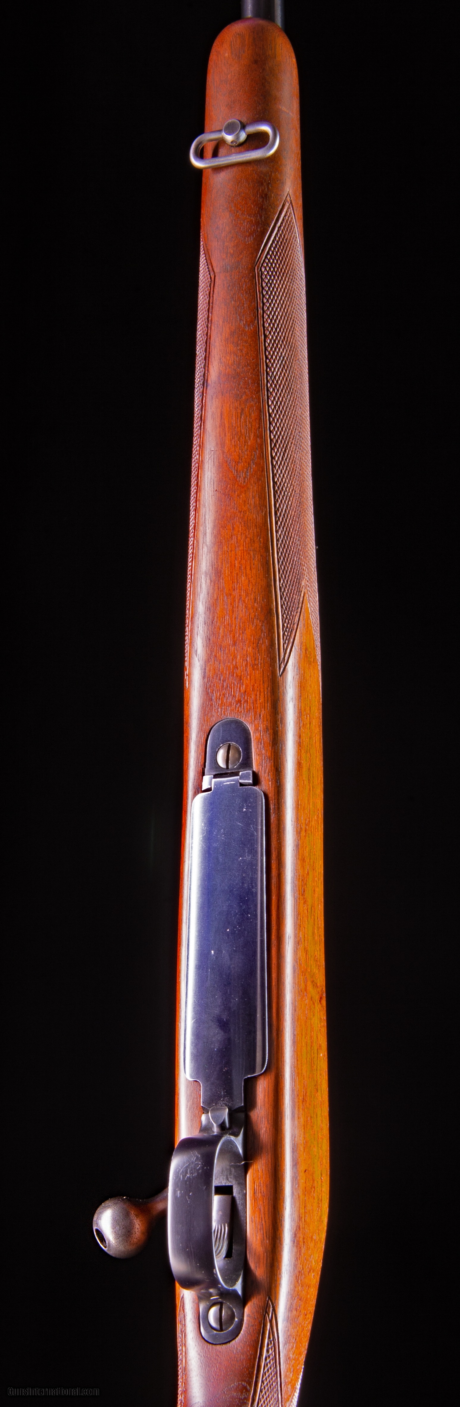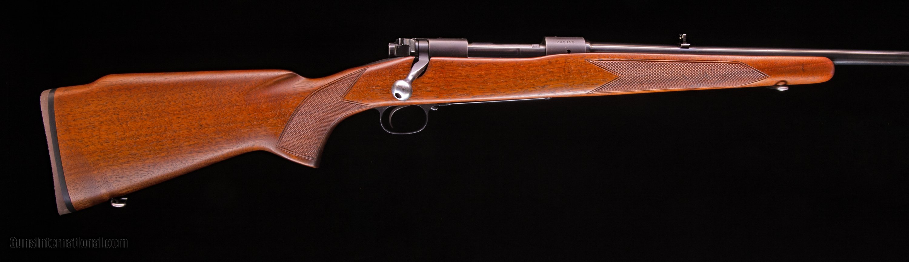 Description: Drillings, Double Rifles, and Rifles - Built in 1954 this Winchester is in very nice condition. Excellent bore and general condition. I suspect the checkering has been professionally cleaned. Scoped with a clean Leopold 3x9 . *** Note: To see this gun with high resolution photos and a zoom-in feature, go to the vintagedoubles main site and search for the gun ID: 5238 or browse the main site to see our full gun collection. SOLD Manufacturer: Winchester Model 70 featherweight 308 from 1954 ~ Correct pictures this time! Model: 70 Serial Number: 298436 Caliber Info: 308 Winchester Ejectors: Yes Barrels: 22 Barrel Type: Steel Action: Bolt ejector Gauge Info: Caliber Stock Comb: NA Stock Heel: NA LOP: 13 1/8" with pa Weight: 8lbs with scope and Choke Left: NA Proof:Nitro: 308 Winchester Minimum Wall Thickness Left: NA |