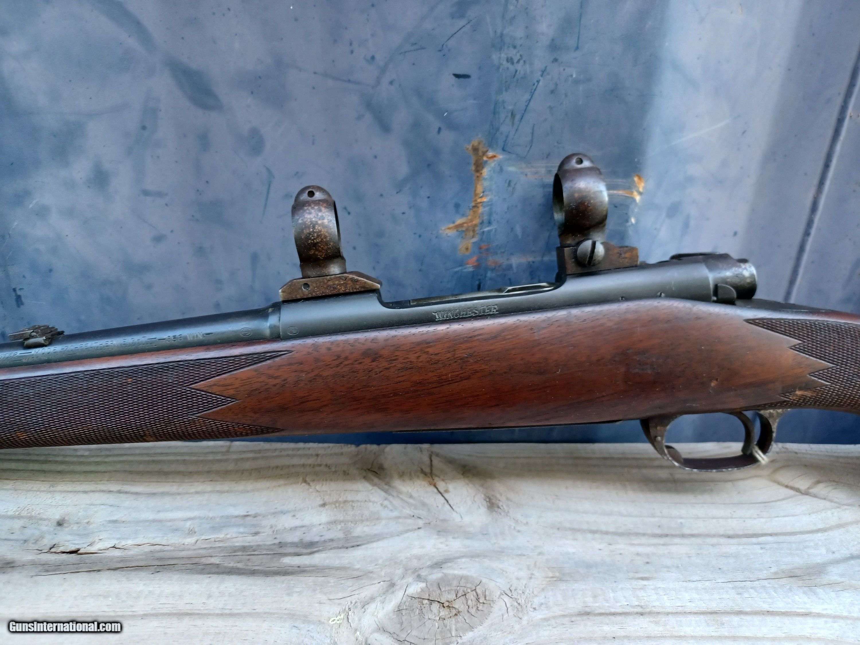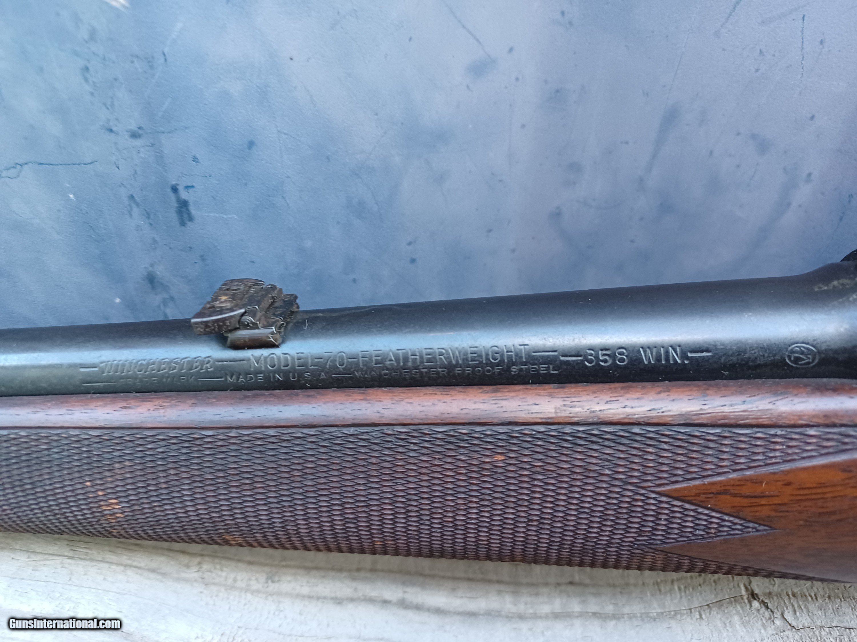 Description: Here is a nice rifle that has lived a hard life. It is a super sweet Winchester Model 70 Featherweight Pre-64 chambered for 358 Winchester that was stored in a humid environment and sustained a lot of rust to the metal and staining to the wood. The bore is fair with the roughest part being the last 4 inches at the muzzle end, the rest of the bore looks very good. The action works fine but has a lot of rust and some pitting pretty much everywhere. SOLD AS-IS. Thanks for looking! $45 shipping, Alaska and Hawaii will be a little more for shipping.han Please call with any questions. Please click the BUY NOW button to purchase this item. We are required to charge 8.25% for Texas residents. There is a 3.5% fee if paying by credit card. SOLD Rifle Caliber: .358 Winchester Manufacturer: Winchester Model: 70 Featherweight Serial Number: 340389 Barrel Length: 18 Condition: Fair Metal Condition: Fair Wood Condition: Fair Bore Condition: Fair Manufacture Date: 1955 |
