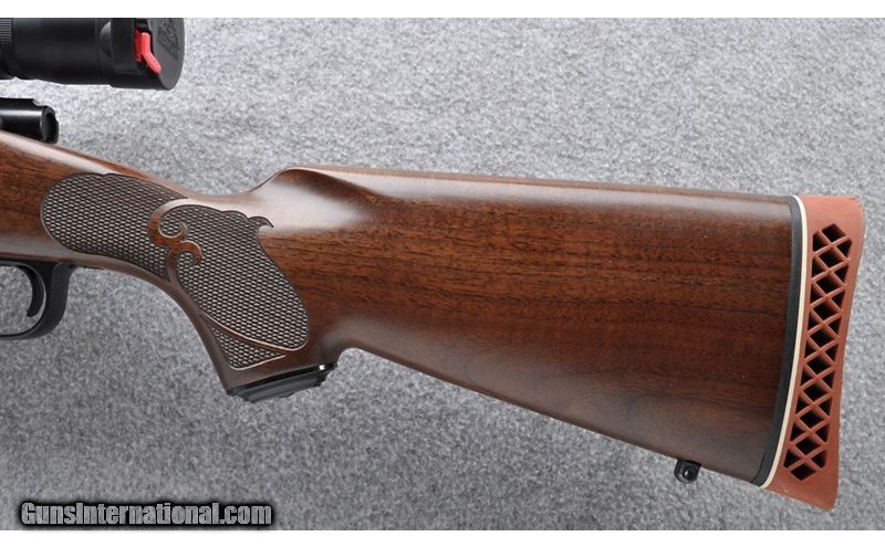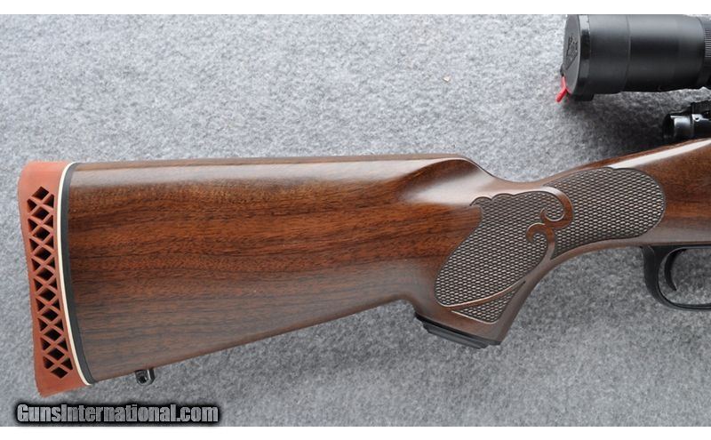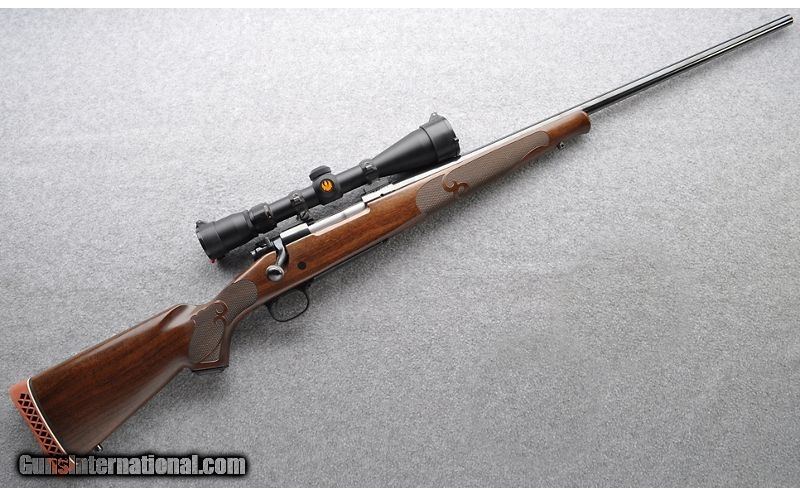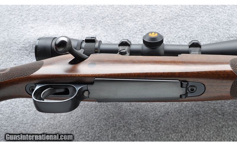 Description: This is a Discontinued New Haven Model 70 Featherweight Deluxe. The 270 WSM was introduced in 2002 and Winchester ceased operation at the New Haven CT plant in 2006. It appears that this rifle was almost never used and is in excellent condition with the Pre 64 style controlled round action. .270 WSM SOLD Chambers: 270 Winchester Short Magnum Metal Condition: Appears in near new condition Wood Condition: Like new Bore Condition: Sharp & Bright Barrels: 24 Stock Dimensions: 12 1/2" LOP Fore End: Checkered high grade walnut with Schnabel tip Butt Pad: Pachmayr White Line Vented Pad Weight: 8 lbs. 10 oz. Sights: "No sights, fitted with a Nikon Prostaff 3-9 scope Item Location: Grand Junction, CO |