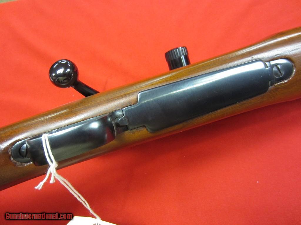 Description: 1942 production Winchester Target rifle in 22 Hornet that appears to have been rechambered to 222 Rem possibly by Griffin & Howe. This gun has had a high quality restoration. It is topped with a Leupold 12X target scope. You don't see many rifles configured in this nature. SOLD |