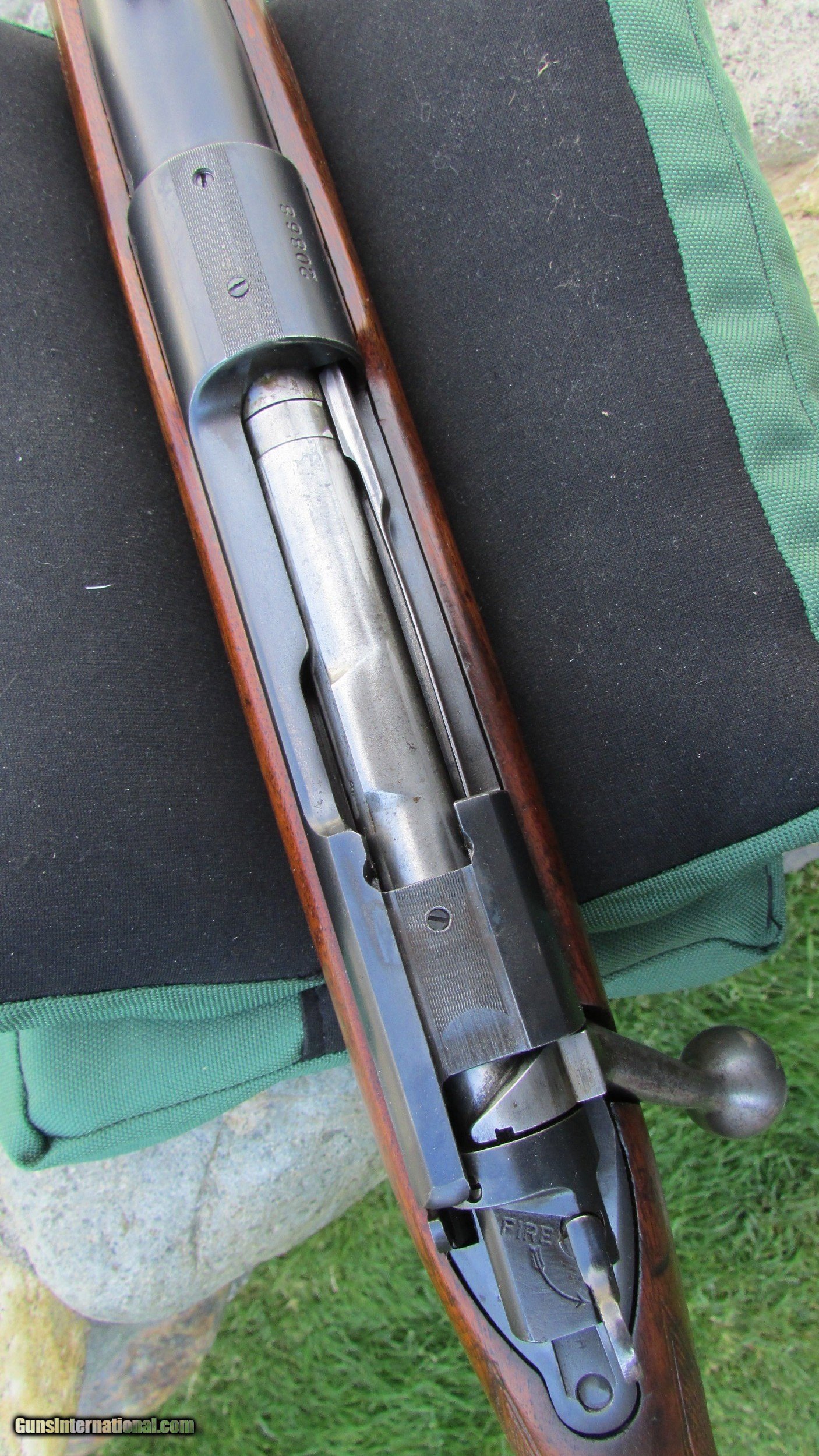 Description: Original Winchester model 70 pre-64 257 Roberts manufactured in 1938. Nice shape for a rifle this age. Check out photos. Some honest wear from use and age. Only one hole drilled in rear bridge. Paddle safety, clover leaf tang and 1 1/4" sling swivels. Shipping is $75.00 to lower 48. SOLD Curio/Relic: Yes Manufacturer: Winchester Model: 70 pre-64 Serial Number: 20868 Caliber Info: 257 Roberts Bore: strong with well defined lands and grooves Condition: good Metal Condition: edge wear from use and age Wood Condition: Good with minor nicks, dings, compression marks from use and age Bore Condition: strong lands and grooves Barrels: 24 Barrel Type: steel Action: bolt Triggers: standard Stock: walnut Stock Dimensions: 32 1/8" with Winchester steel pad Stock Comb: straight Stock Heel: steel LOP: 13.5 Finish: factory Weight: 8 Sights: 22G rear and 103A with hood Manufacture Date: 1937 Item Location: Oregon |