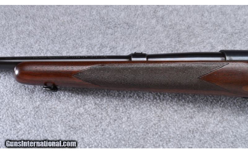 Description: Wood has been nicely refinished and remains excellent. Original blue and bore remain excellent. Rear sight has been removed and a filler installed in the dovetail. SOLD Manufacturer: S/N 134XXX Caliber Info: .270 W.C.F. Metal Condition: Excellent Wood Condition: Excellent - Refinished Bore Condition: Excellent Barrels: 24 Triggers: Original Stock: Checkered Walnut Pistol Grip Refinished Stock Dimensions: 13 1/2" LOP Fore End: Checkered Walnut Butt Pad: Checkered Steel Weight: 8 LB Sights: Bead Front Item Location: Wheeling, WV |