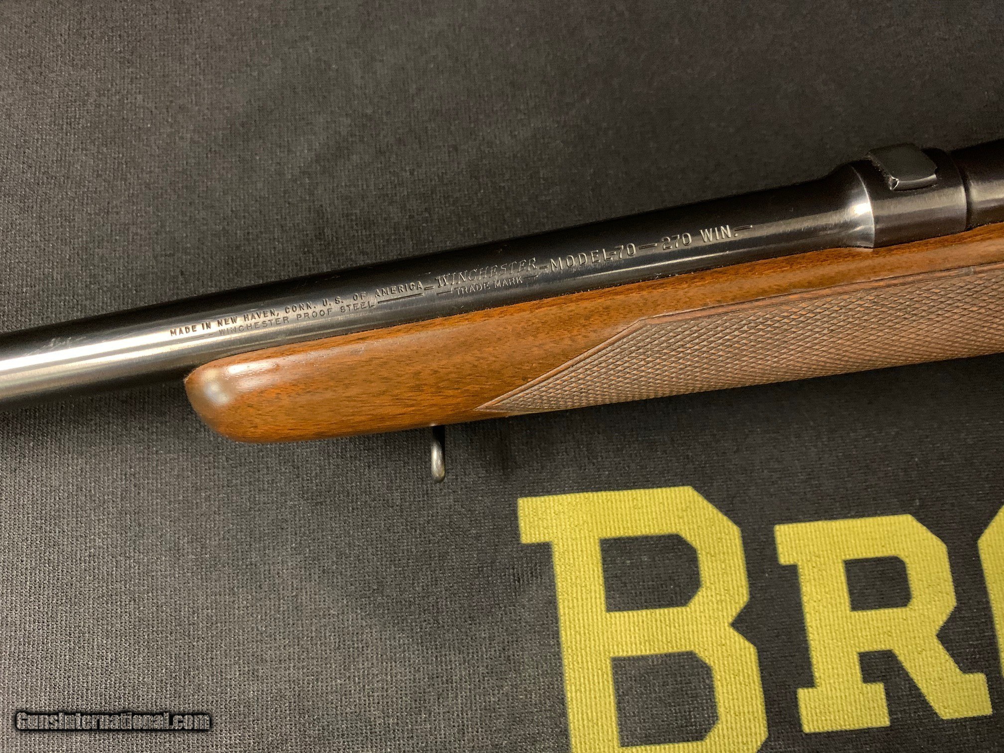Description: Winchester model 70 Pre. 64. This rifle is in very nice condition. Chambered in .270 winchester. The rifle does have one small handling mark on the stock as shown in the pictures. Rear sight has insert to fit a rifle scope. FOR MORE INFORMATION ABOUT THIS RIFLE, PLEASE GIVE US A CALL AT 1(479)-968-4106. PRICE - $1,500 + Shipping REDUCED PRICE - $1,150 + Shipping OBO SOLD Manufacturer: Winchester Model: 70 Serial Number: 241080 Caliber Info: .270 Win Action: BOLT LOP: 13" 1/2 Manufacture Date: 1952 |