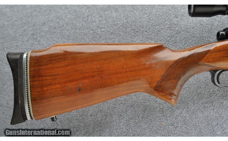 Description: SOLD Manufacturer: 1954 Caliber Info: .30-06 Springfield Metal Condition: Barrel has been reblued but, the trigger guard & floor plate have not and show use wear Wood Condition: The stock has been heavily Varathaned filling the checkered fields. Subsequently, the wood shows some field marks through the finish Bore Condition: The bore is in good condition, bright and sharp Barrels: 24 Stock: Checkered pistol grip Stock Dimensions: 13 1/2" LOP Fore End: Checkered point pattern Butt Pad: Morgan Adjustable pad Weight: 9 lbs 12 oz as pictured Sights: Hooded blade front sight, Flip-up adjustable leaf rear & Simmons 6-18 AO Scope Item Location: Grand Junction, CO |