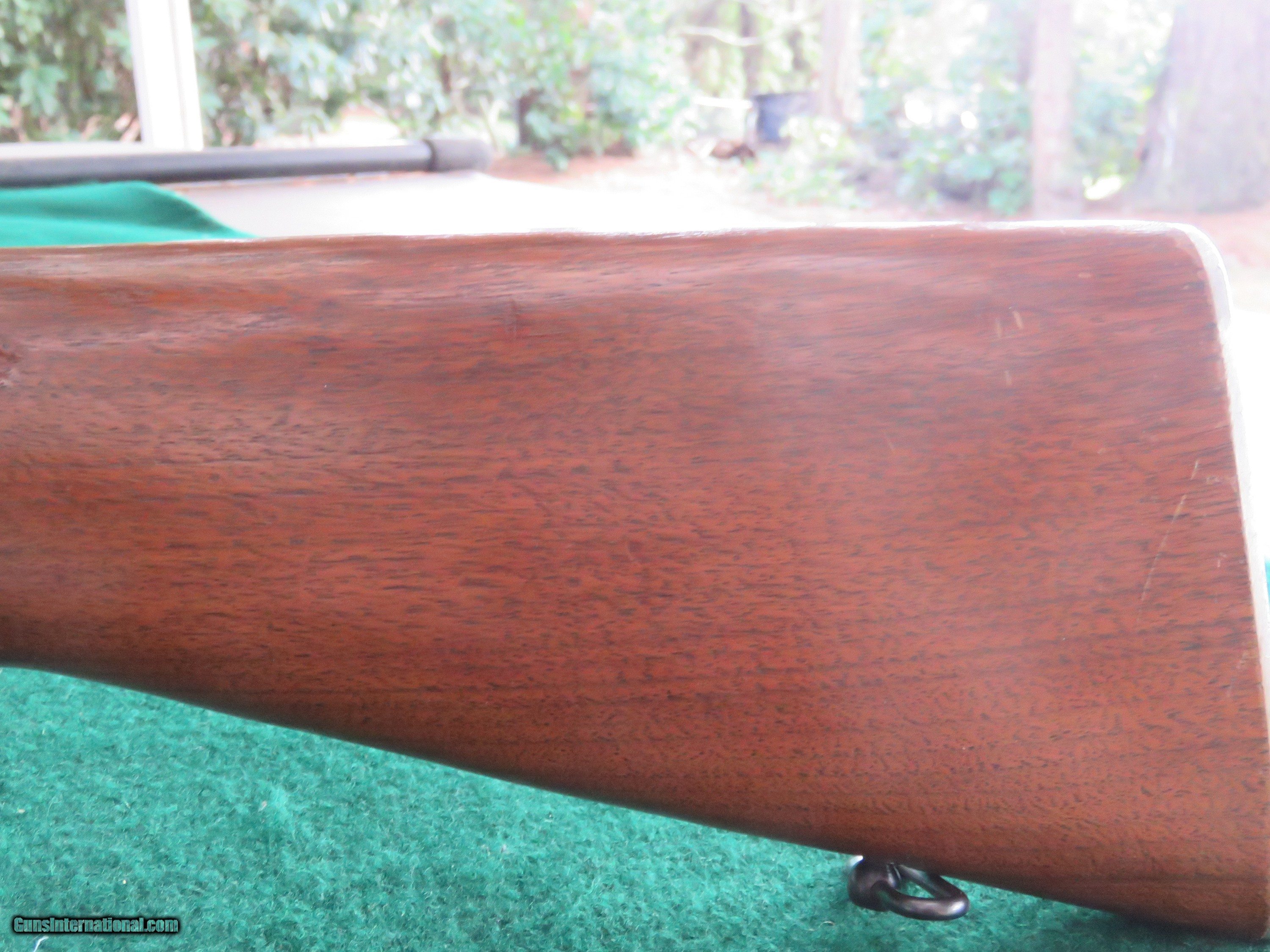 Description: Model 70 Pre-64 30-06 with 22-inch barrel. Serial number 410XXX indicates 1957 manufacture date. Factory sights with hooded front sight and sling mounts. The receiver is a blasted black oxide bluing and a blued barrel. Weaver K4 scope with a Pachmayr tip-off bases. Stock and barrel in excellent condition. No Sales to California and I will only ship to FFL holders who will accept shipment from a private party. A signed FFL along with a UPS or Fed X Mailing label must be emailed to khnagelcomcast. Shipping $50.00. $1,695.00 SOLD Curio/Relic: Yes Rifle Caliber: .30-06 Springfield Manufacturer: Winchester Model: 70 Barrel Length: 22 Condition: Excellent Metal Condition: Excellent Wood Condition: Excellent Bore Condition: Excellent Action: Bolt Stock: Walnut LOP: 13.5 Manufacture Date: 1957 |