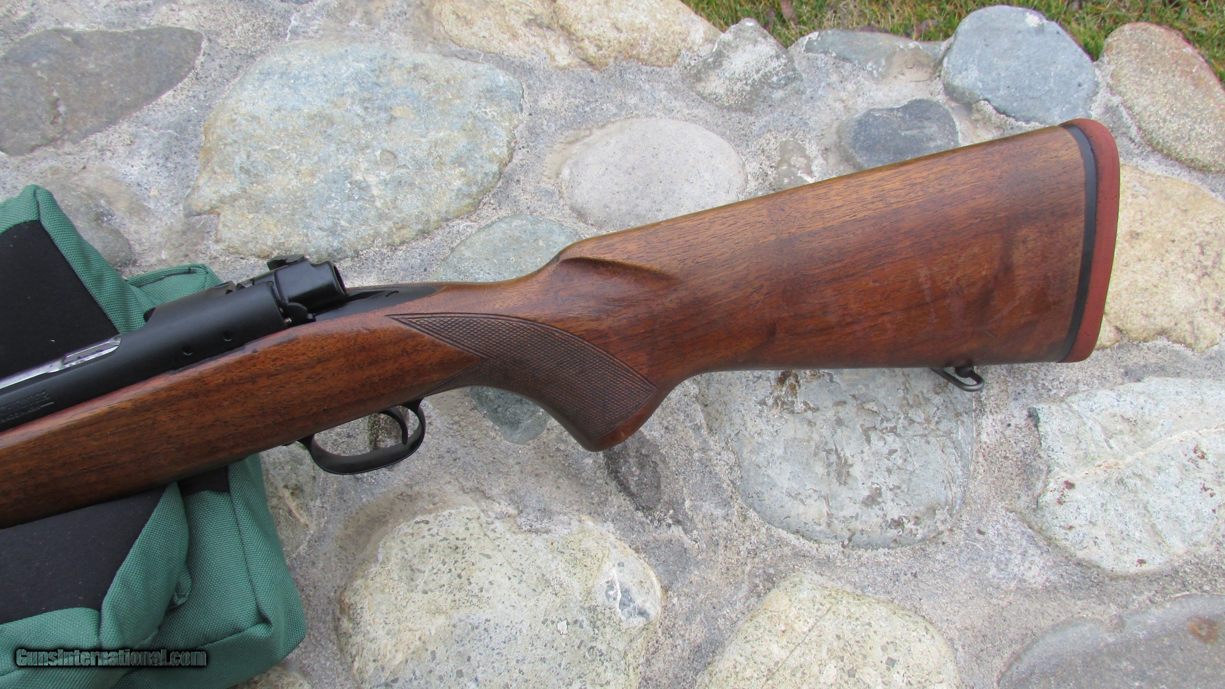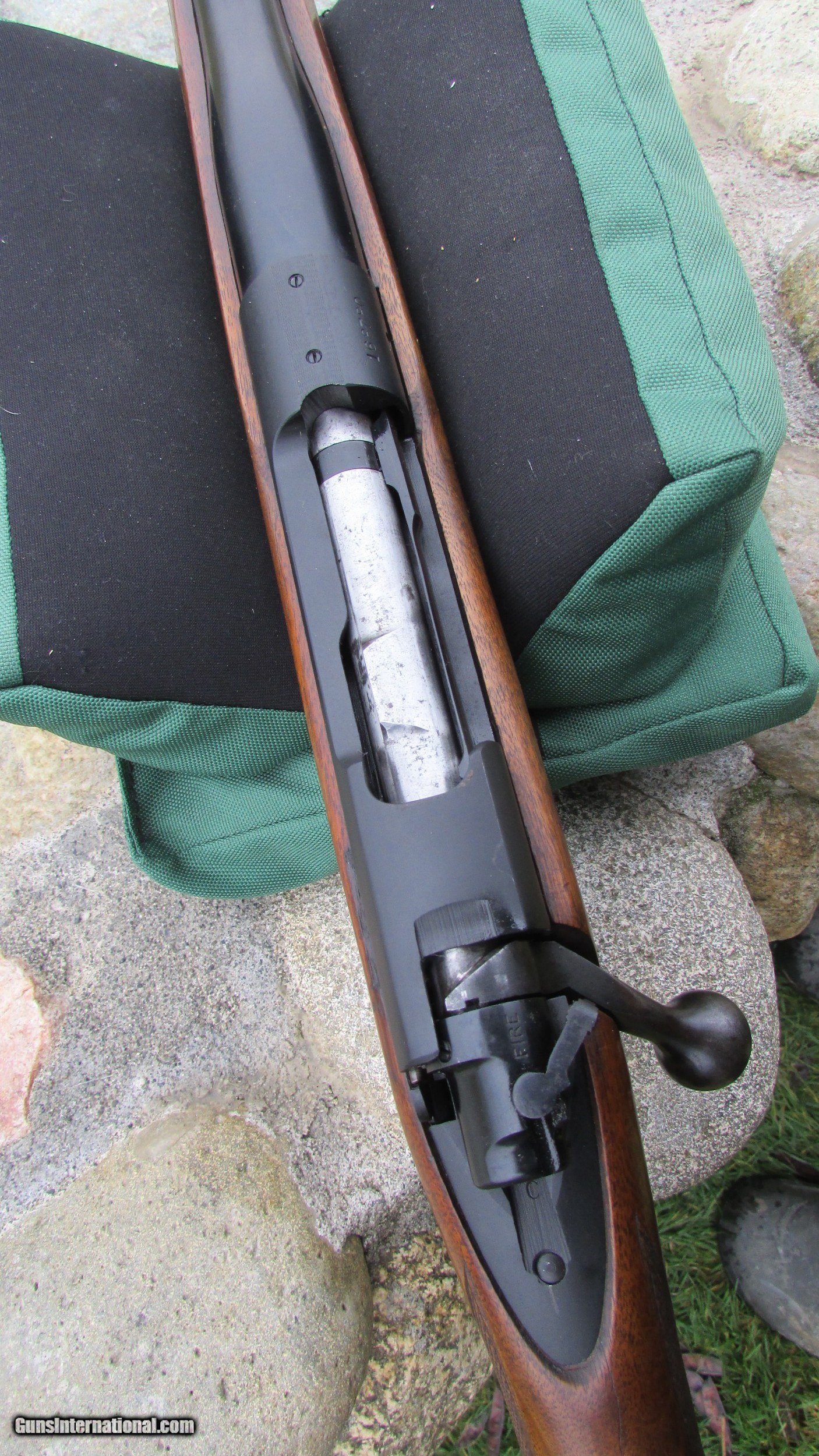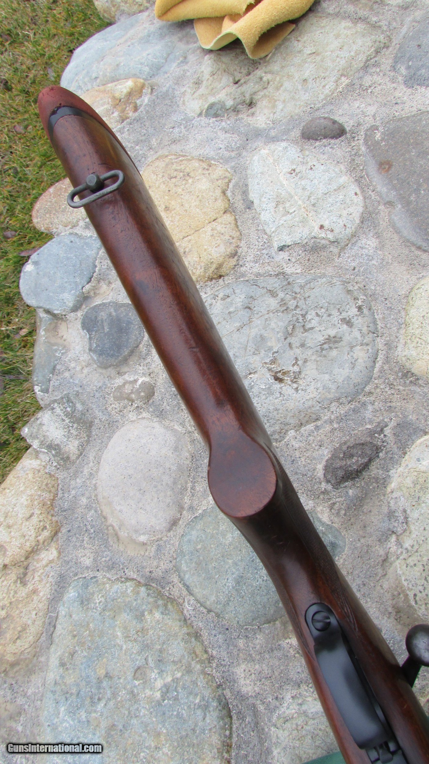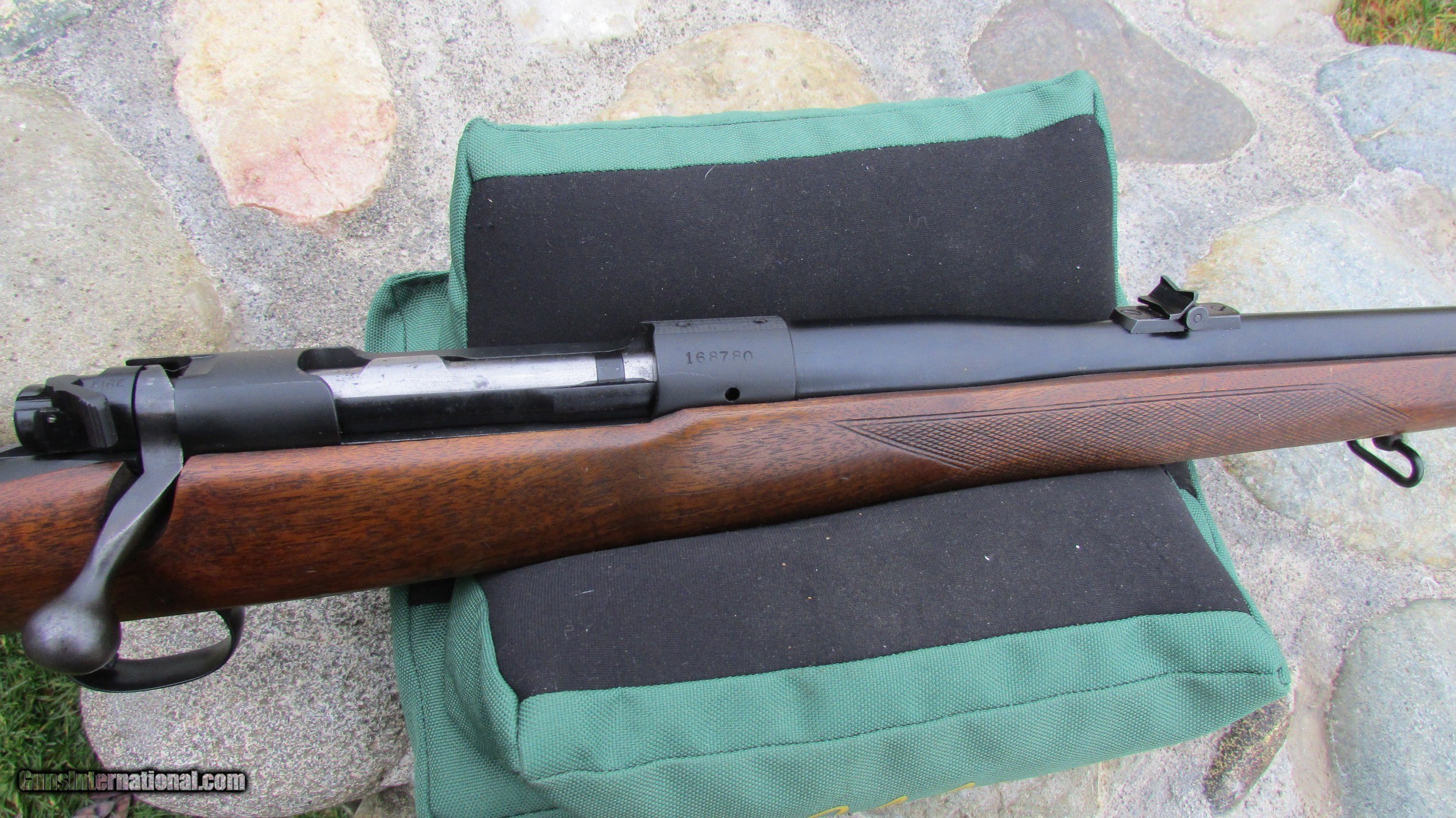 Description: Nice Winchester model 70 pre-64 375 Magnum, made in 1949. Rear bridge has not been tapped. Normal wear from use and age. Metal is nice, has been re-blued. Stock shows finish loss, smooth checkering, recoil pad is still flexable and soft with some wear. Stock has some nicks and dings from use and age. Minor hair line cracked back by tang. Stock shows sign of peep sight install. Still a good solid piece of Winchester Walnut. Winchester Logo and Trade Mark are easily read. Winchester roll stamping is clear and easily read. Bore is strong with well defined lands and grooves. Has not been crowned. Make a great shooter on your next Afican adventure. . $100.00 shipping to lower 48. Will be shipped in plastic case. SOLD Curio/Relic: Yes Manufacturer: Winchester Model: 70 pre-64 Serial Number: 168780 Caliber Info: 375 Magnum Bore: strong with well defined lands and grooves Condition: good Metal Condition: very good minor bluing loss Wood Condition: Good with minor nicks, dings, compression marks from use and age Bore Condition: strong lands and grooves Barrels: 25 Barrel Type: steel Action: bolt Triggers: standard Stock: walnut Stock Dimensions: 32 1/4" with Winchester recoil pad Stock Comb: straight Stock Heel: rubber Butt Pad: rubber LOP: 14 Finish: factory Weight: 9 Sights: Winchester 70 B Roll Over Manufacture Date: 1949 Item Location: Oregon |