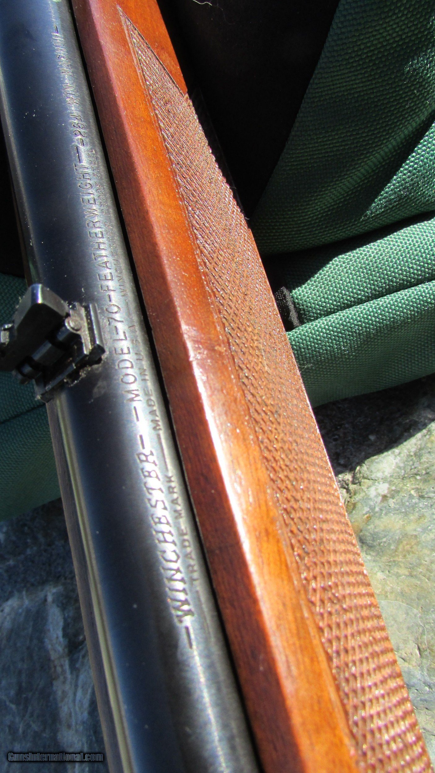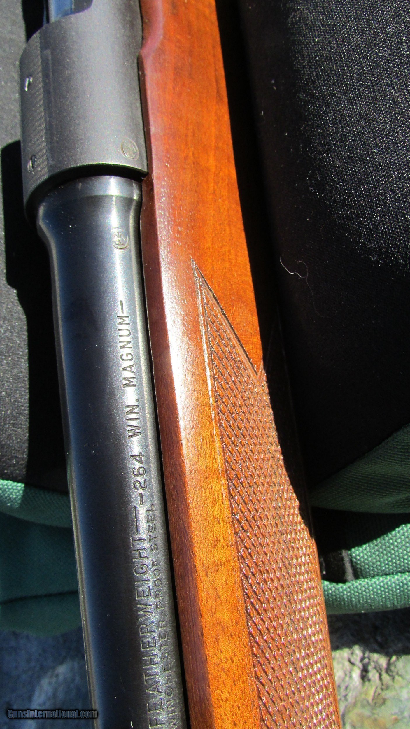 Description: Original Winchester model 70 pre-64 featherweight 264 magnum. Rare rifle at only .5% were made between 1962-63. Second rarest featherweight compaired to the 358. Bluing is original with very few handling marks. Bore is strong with well defined rifling's and lands. Bolt numbers matches receiver.This rifle has not been shot much. Few handling marks, no cracks or chips, comes with Winchester original red ribbed recoil pad. Make a great hunting rifle or add it to your collection. Shipping is $45.00 to lower 48 and $80 to AK and HI. Insurance is $1.00 per hundred extra by purchaser request. SOLD Curio/Relic: Yes Manufacturer: Winchester Model: Pre-64 Model 70 Serial Number: 550221 Caliber Info: 264 Win Mag Bore: strong Condition: very good Metal Condition: very good, no rust Wood Condition: very good with a few handling marks Bore Condition: has not been shot much Barrels: steel Barrel Type: Winchester steel Action: smooth locks up tight Triggers: standard Stock: walnut Stock Dimensions: 32.25" factory length LOP: 14 Finish: varnish Weight: 7 Sights: flip up rear, 103c front Manufacture Date: 1962-63 Item Location: Medford, Or |