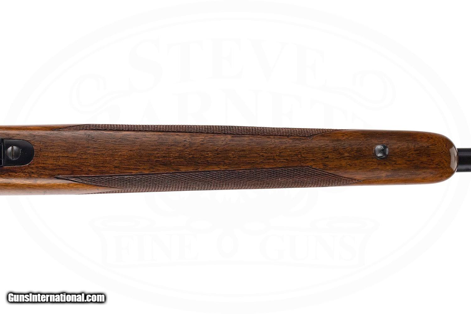 Description: SN# 278XXX MADE 1953 22" BARREL WITH FLIP UP REAR AND HOOD FRONT SIGHTS ALUMINUM FLOOR PLATE ALUMINUM BUTT EXCELLENT ORIGINAL CONDITION WITH VERY LIGHT HANDLING TO WOOD AND METAL 6LBS 14 OZ 13 3/4" LOP SOLD |