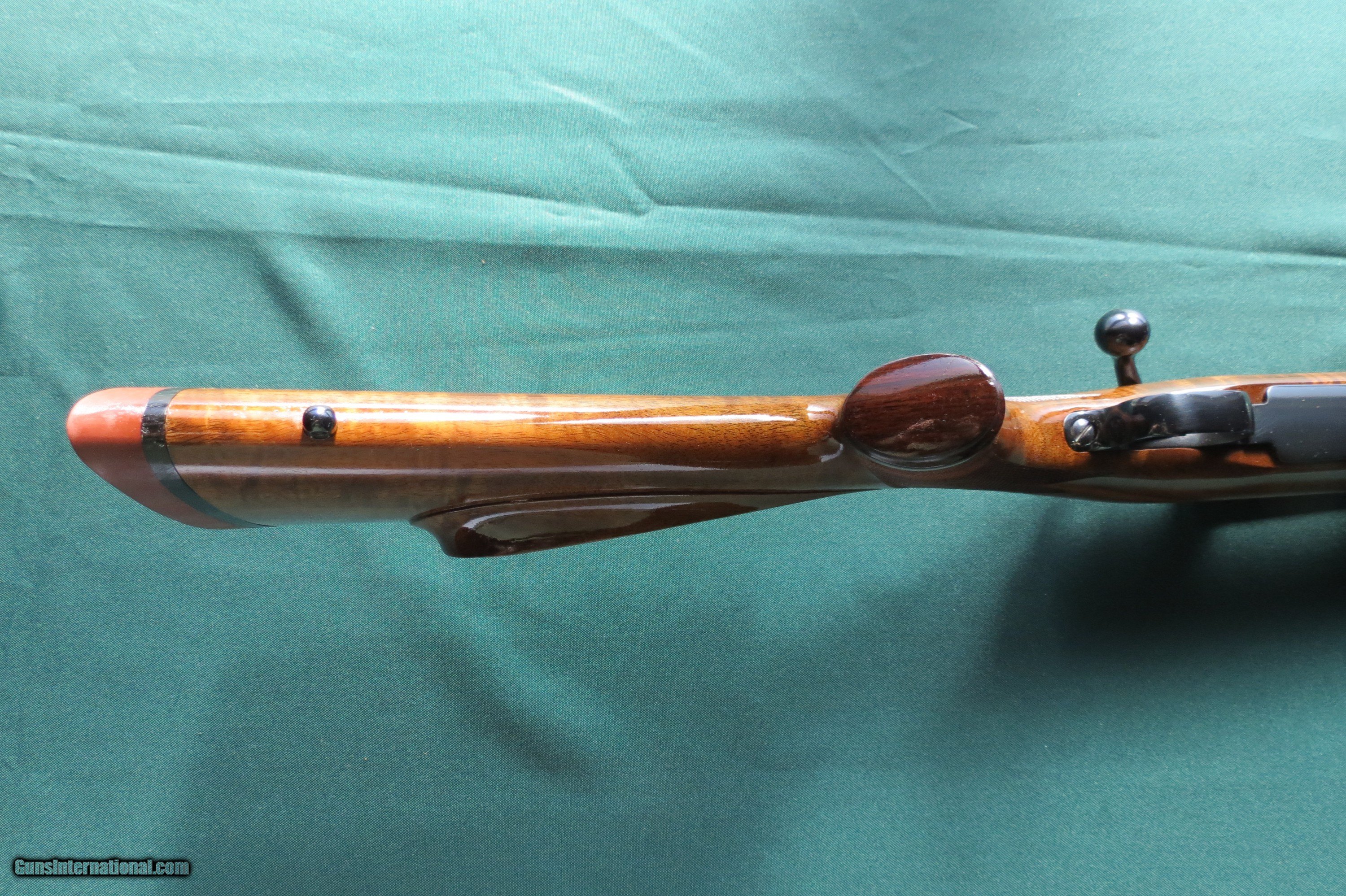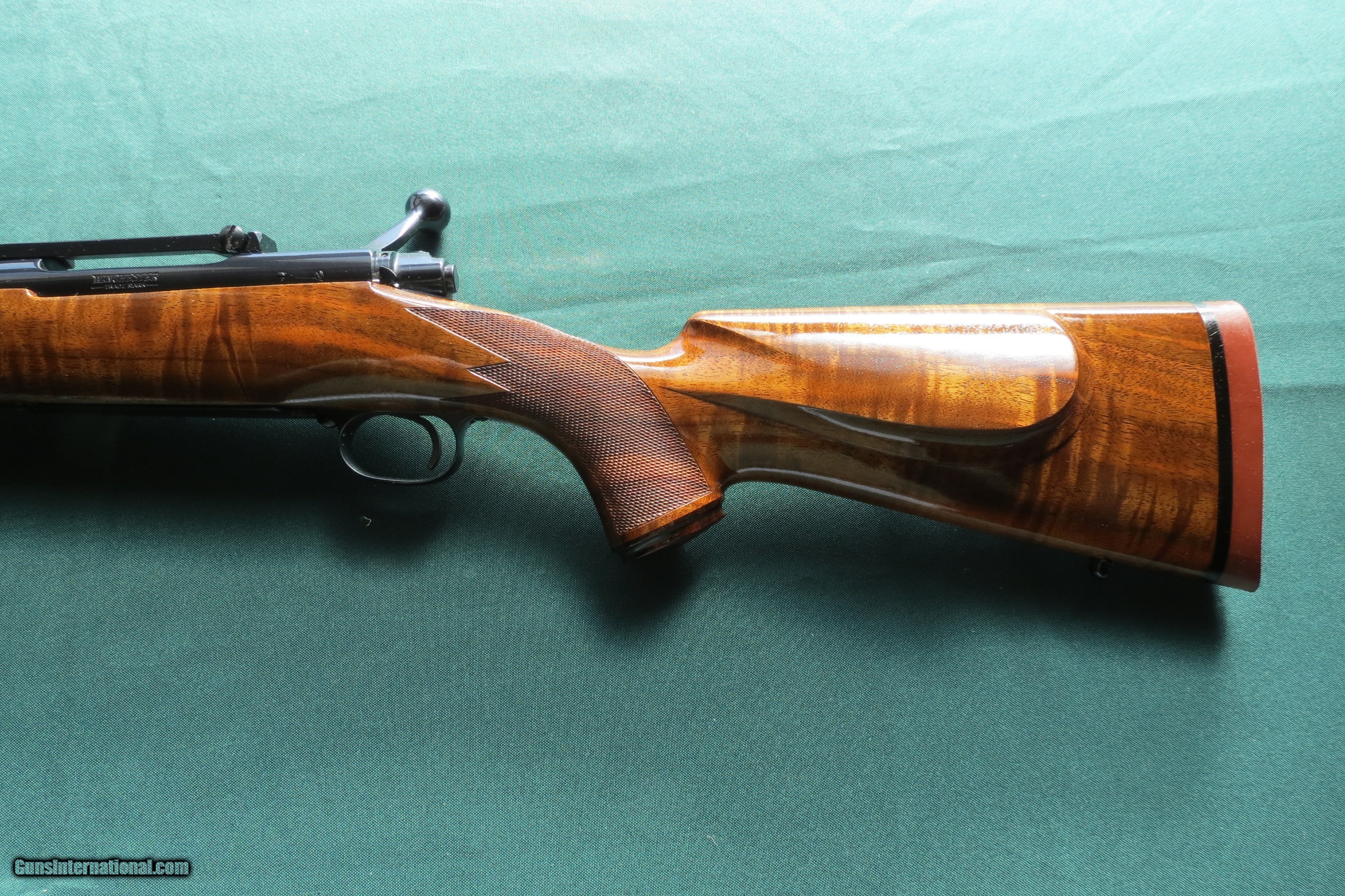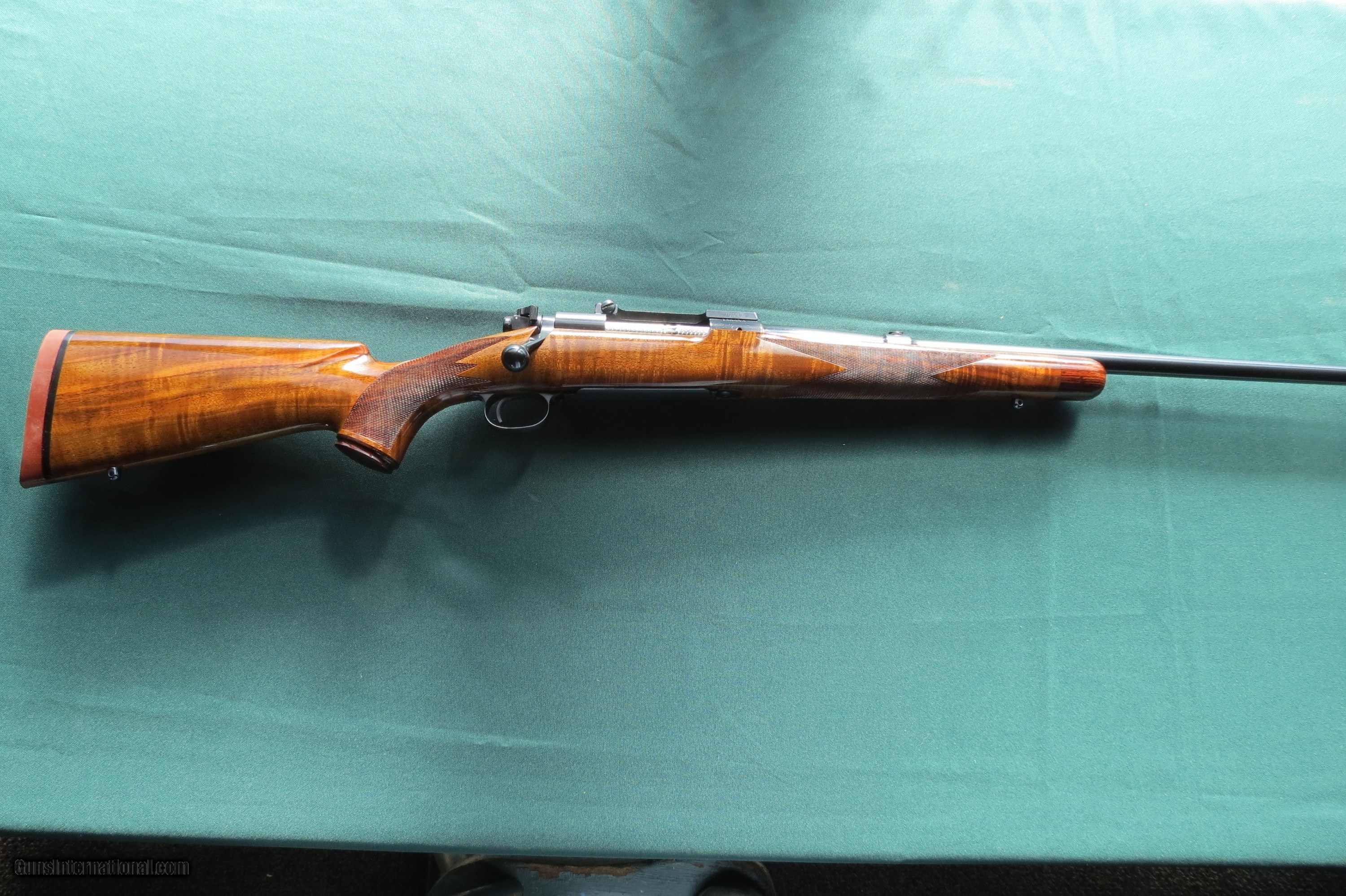 Description: Winchester Model 70 Pre-64 in 257 Roberts, High gloss bluing, Manfactured in 1950, 24" barrel, Rear sight plugged, Hooded front sight, Rosewood butt cap and forend, Jewelled bolt, Hinged Floorplate, Leupold Base, High grade wood. Rifle shows excellent condition, Ships in hard case, Shipping/insurance $80. SOLD Rifle Caliber: .257 Roberts Manufacturer: Winchester Model: Model 70 Pre-64 Barrel Length: 24 Condition: Excellent |