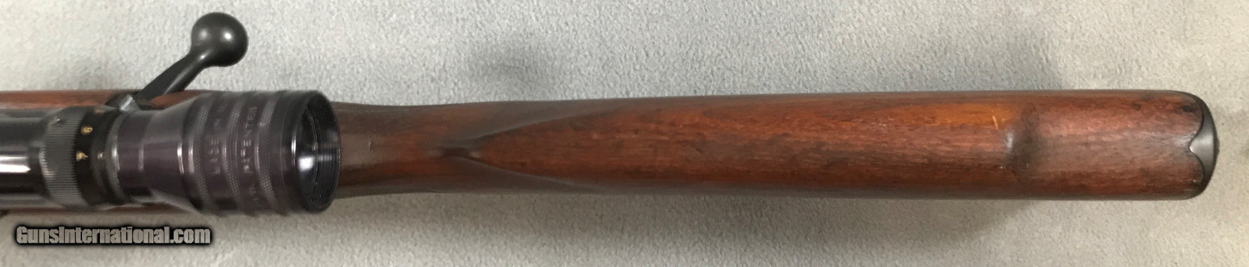 Description: Winchester Model 70 Pre-64 Standardweight .30-06 Sprg. 24" Barrel 8lbs 15oz scoped Mfg.1950 Redfield 3x7 with fine reticle. Barrel has a ring at the muzzle (see pic 23). This would be a great donor action for a custom rifle, or it could be cut and re-crowned, re-barreled or a recessed crown done to correct the issue. Metal is in good condition as refinished, with minor scratches, rubs and handling marks. Wood is good as refinished, it has scratches, dents and dings. The toe is a little rounded and there is some water staining at the butt. It is solid with no cracks. Scope is fair to good. It is reasonably clear and appears to be functional. There is a black line internally in the ocular lens that is visible on all powers. $65.00 S&H SOLD Curio/Relic: Yes Rifle Caliber: .30-06 Springfield Manufacturer: WINCHESTER Model: 70 STANDARDWEIGHT Serial Number: 257519 Barrel Length: 24 Condition: GOOD Metal Condition: GOOD Wood Condition: GOOD Bore Condition: GOOD Stock: WALNUT LOP: 13 1/2 Weight: 8lbs 15oz scoped Sights: IRON Manufacture Date: 1953 |
