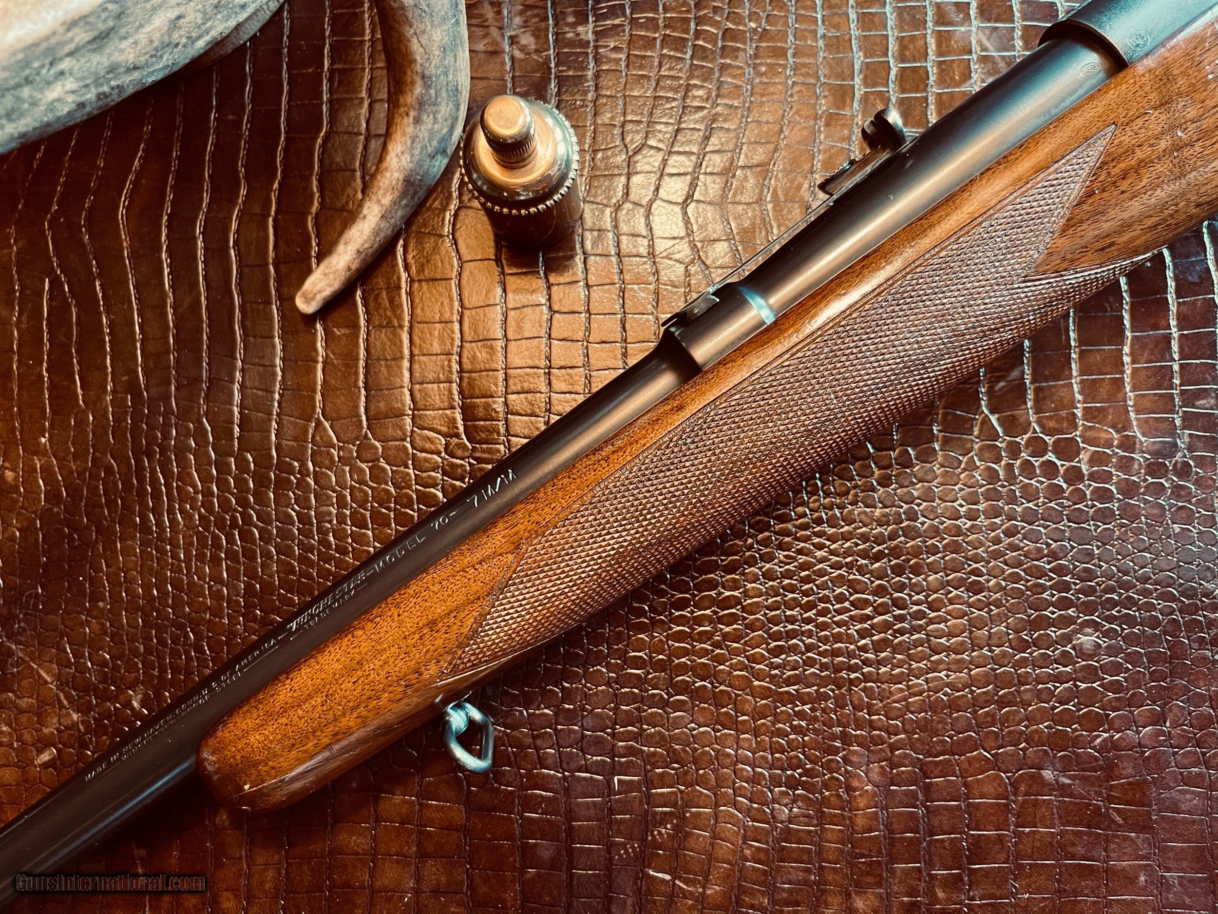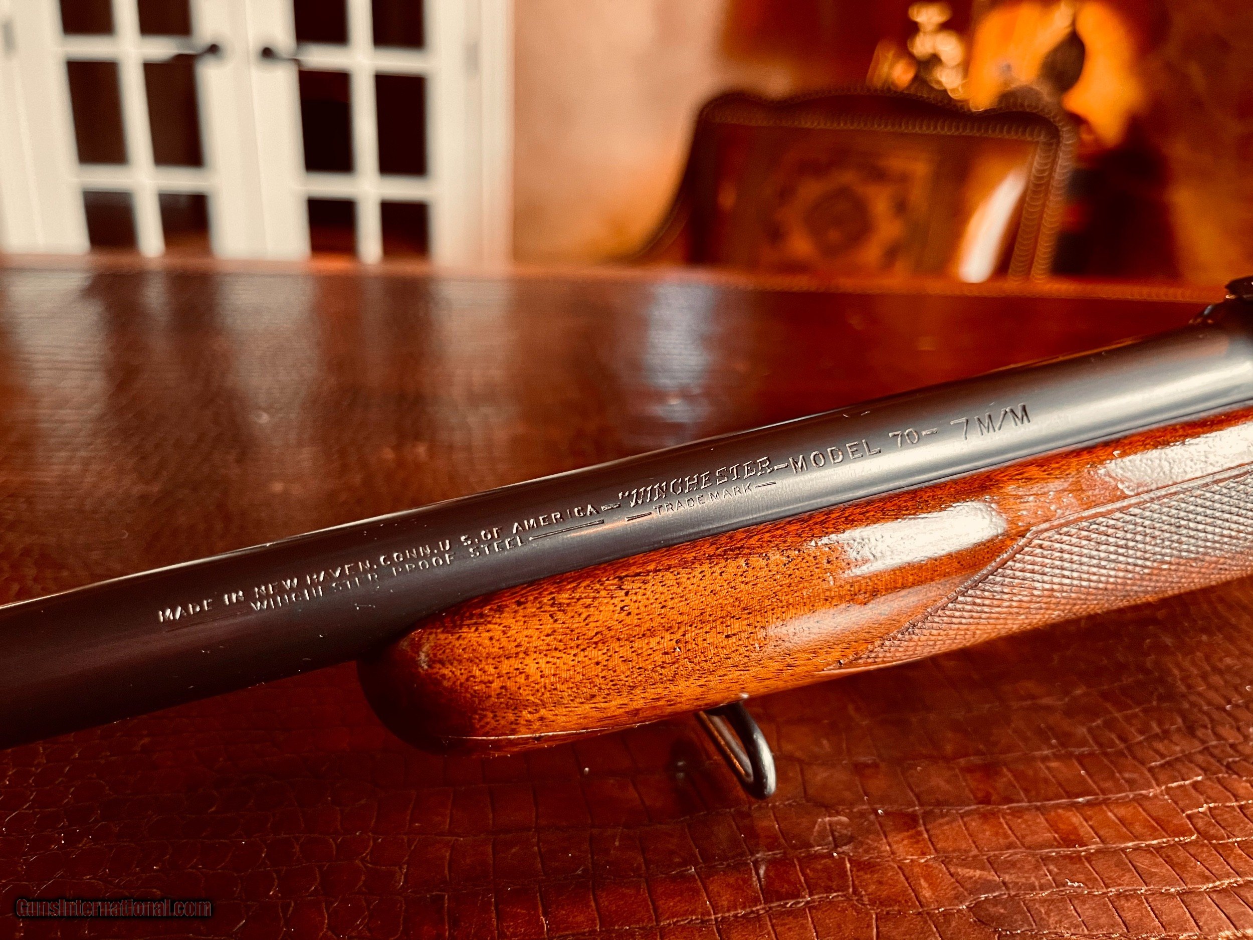 Description: Winchester Model 70 Pre-64 Transition Carbine - 7MM - ca. 1948 - 20” Barrel - Steel Butt Plate - RARE Rifle! - Extremely Rare and All Original "Transition Period" Type III Carbine in excellent overall condition The Quillen-Worfe Private Gun Collection - Guns International page – please read prior to making a purchase: